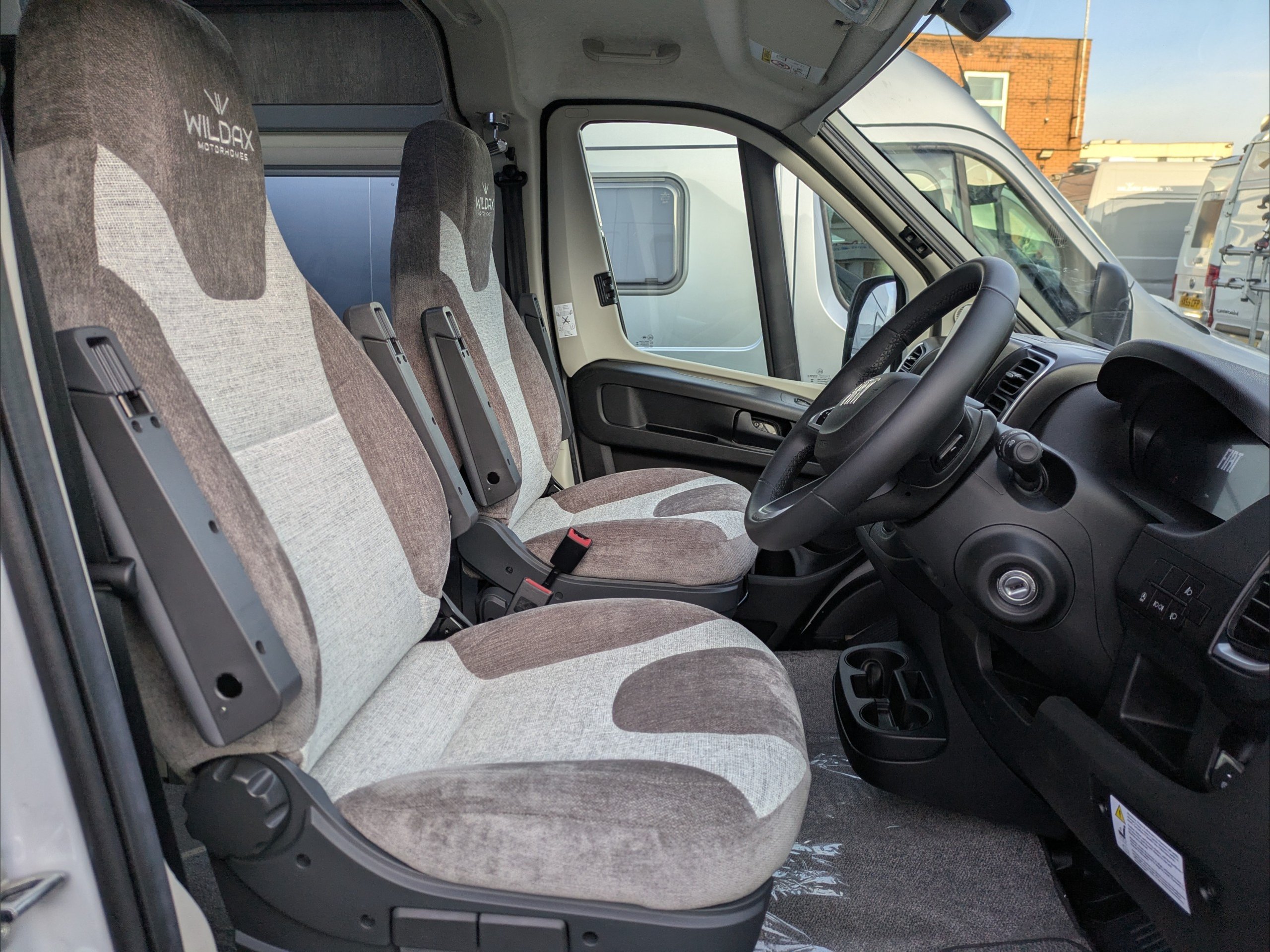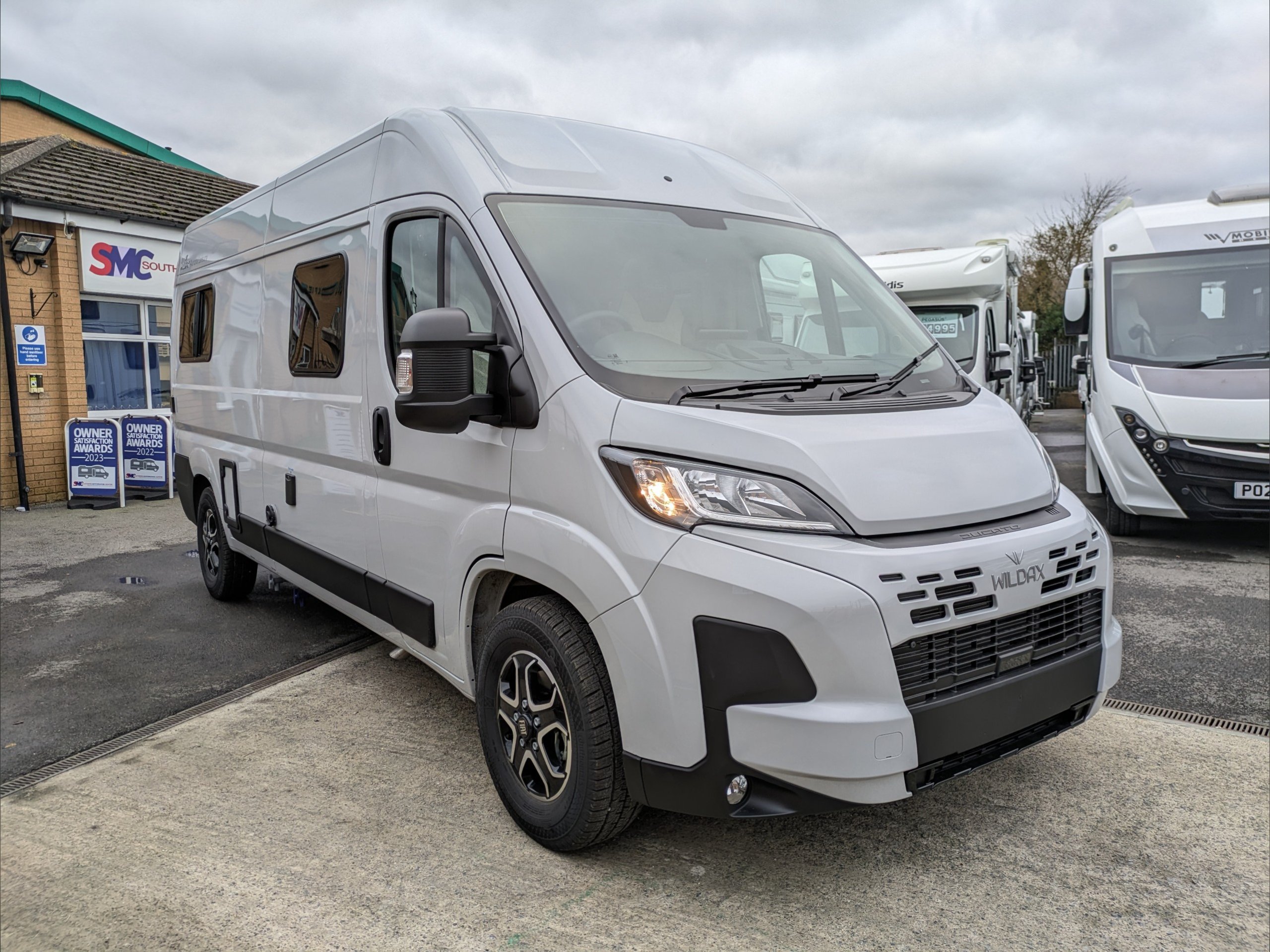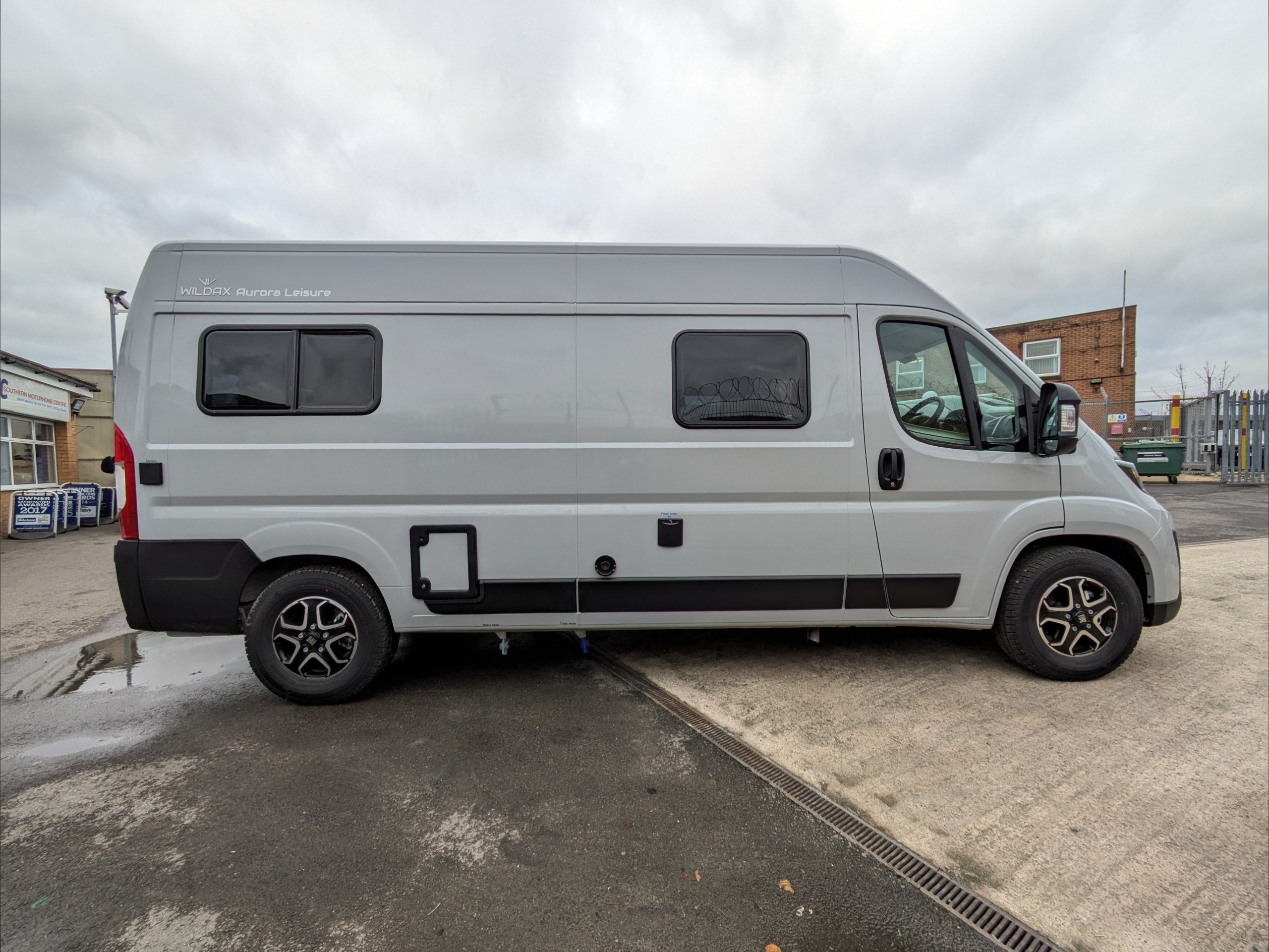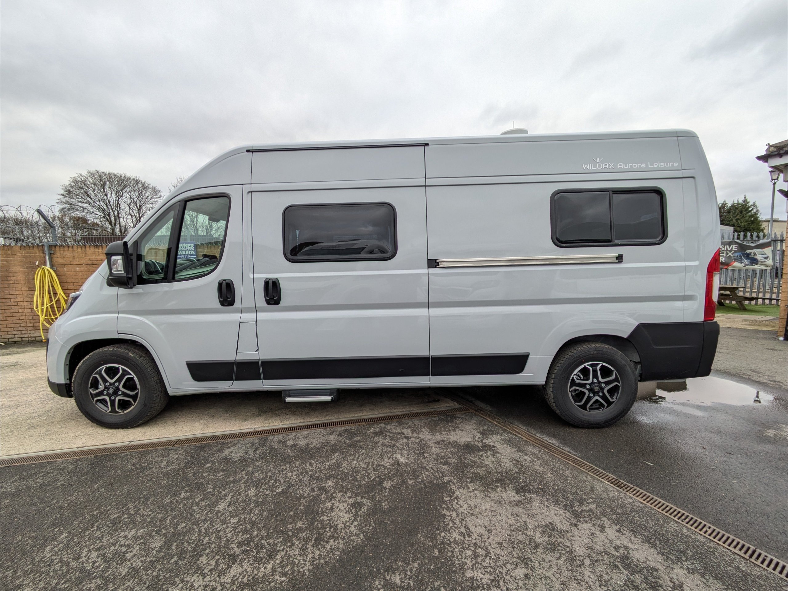 2026 Brand New Brand New WildAx Aurora Leisure. Can also be ordered with a fixed bed at the rear. Colour; Expedition Grey or Artense Grey. 3 Berth, 3 Seatbelts. Standard Driving License Applicable. ULEZ Compliant. Situated at the front is dinette conversion lounge that can seat 3 people with the cab seats swiveled. Situated at the rear, the lounge comprises dual bench seats, which convert to a double bed. The kitchen comes with intergrill, fridge, hob, and extending counter top. The washroom comes with shower, wash basin, and cassette toilet. Available to order now at the Southern Motorhome Centre.
