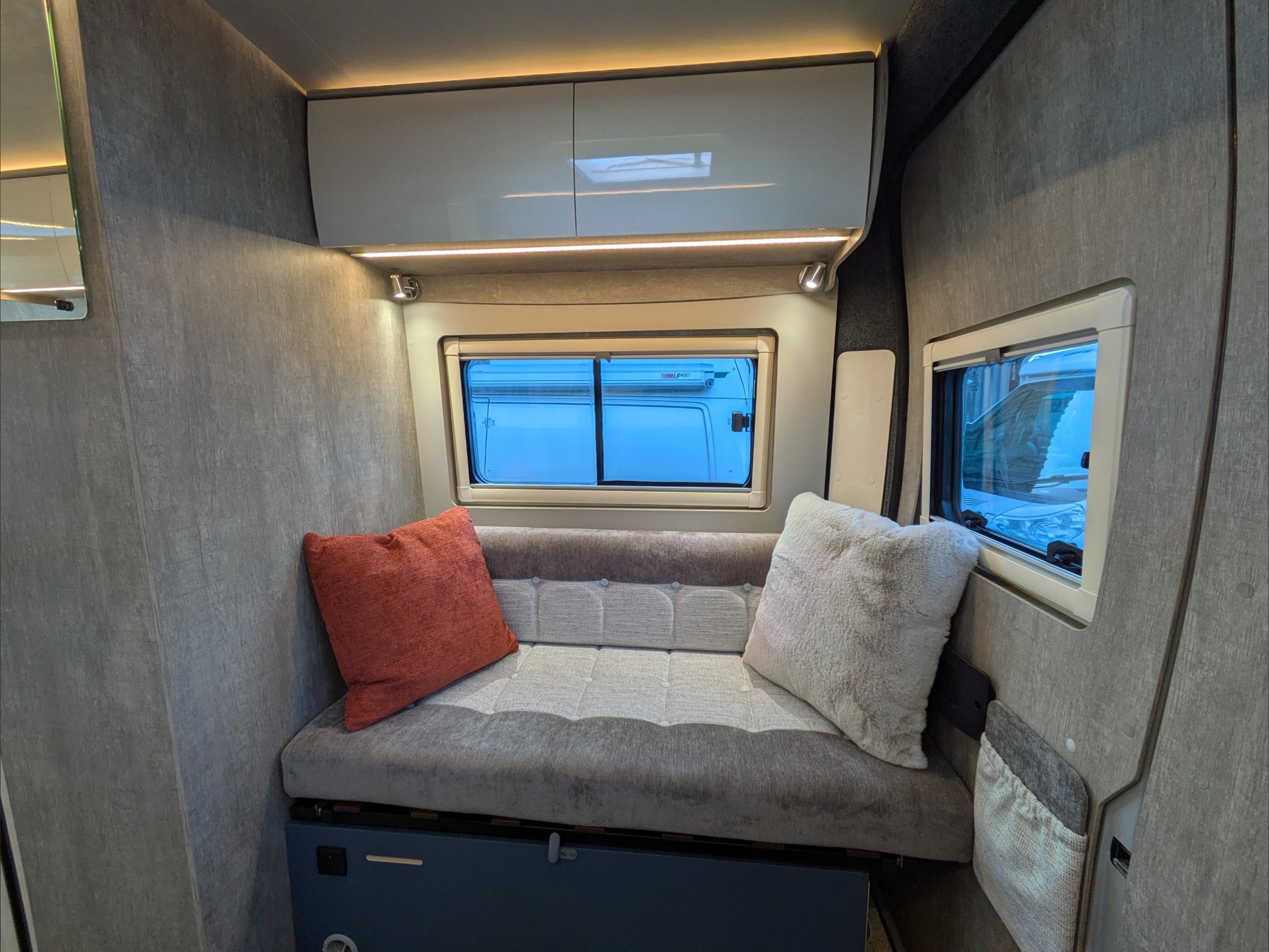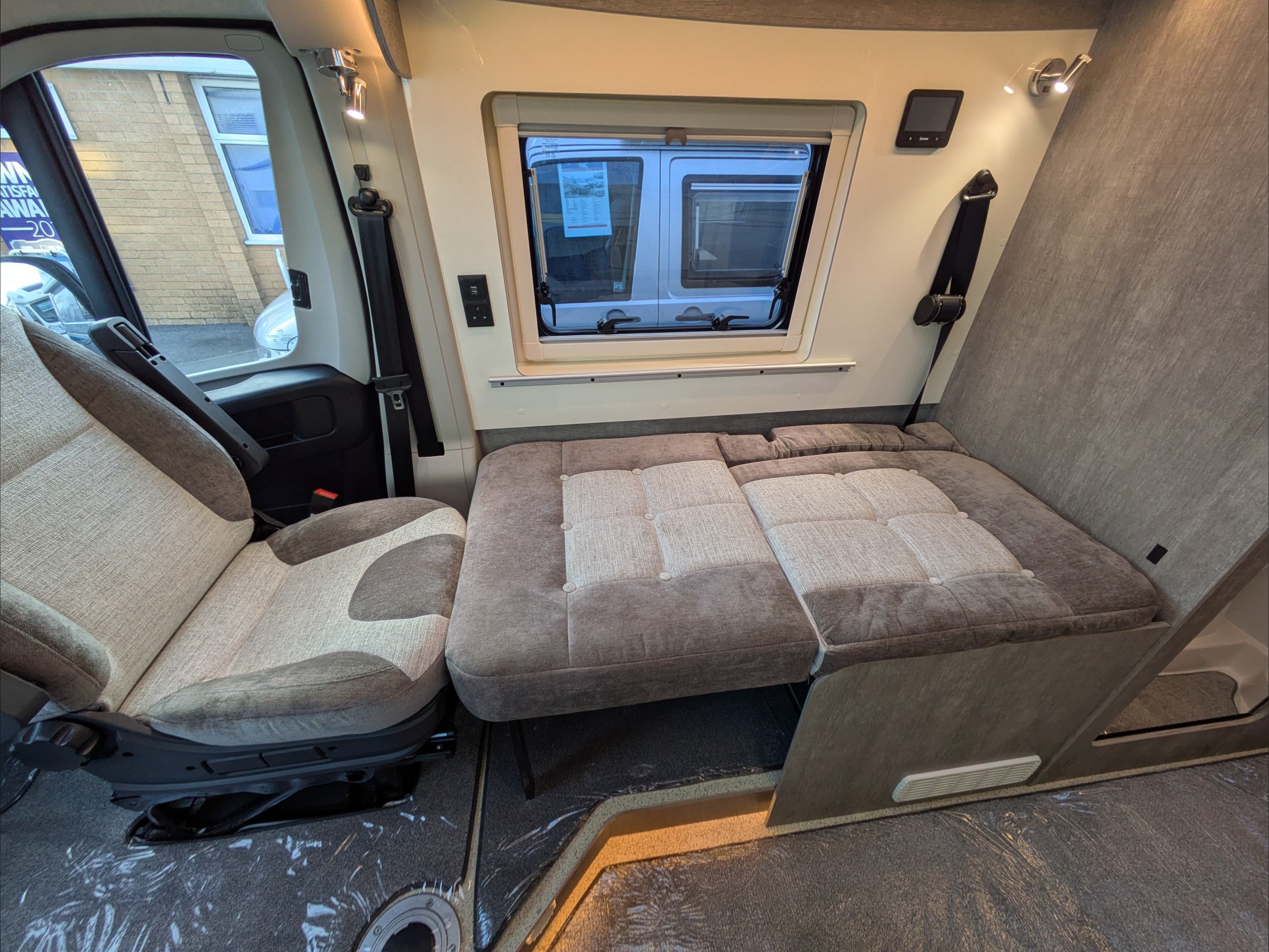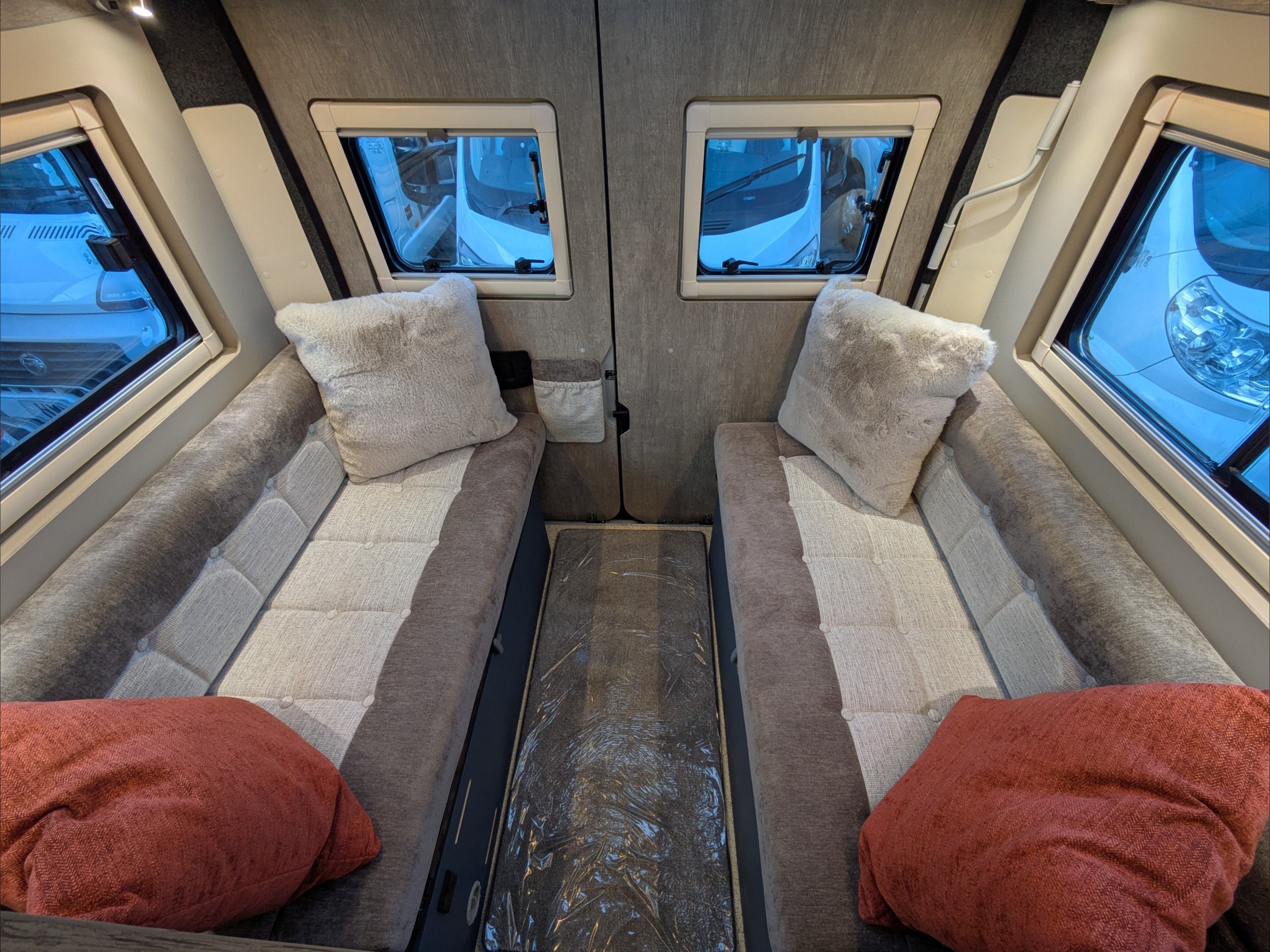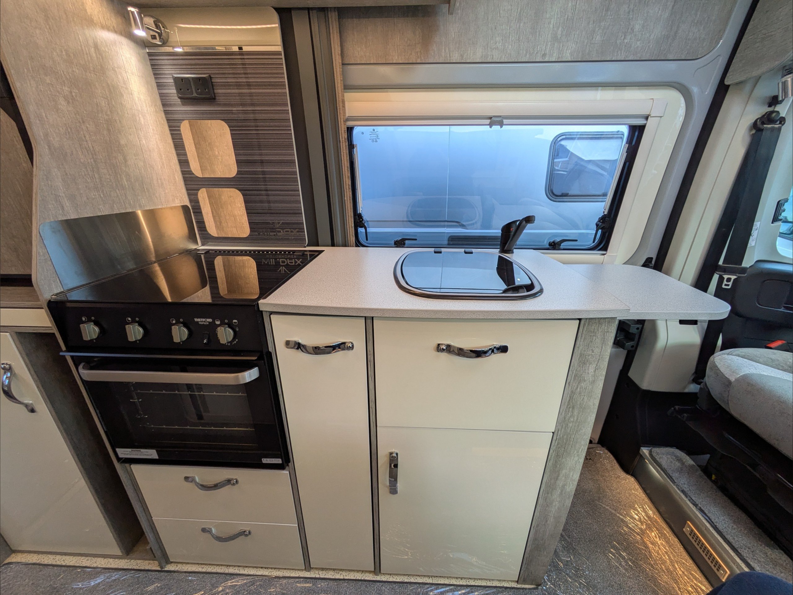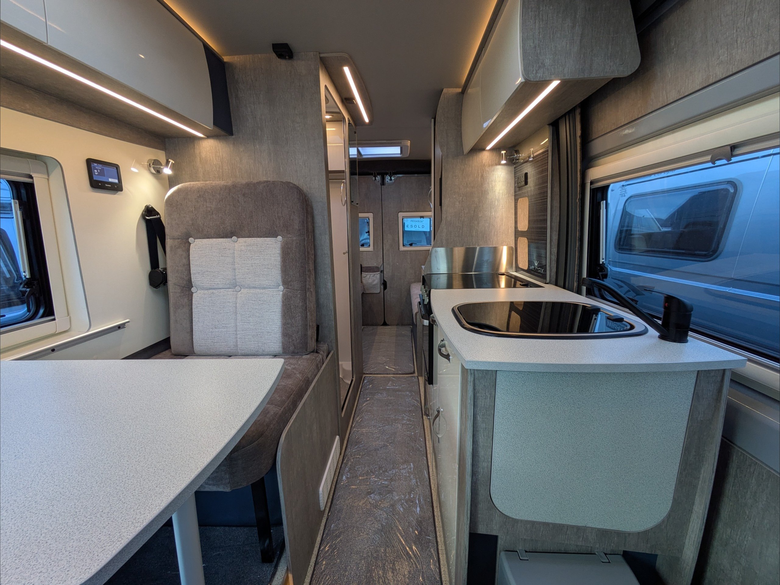 2026 Brand New Brand New WildAx Aurora Leisure. Can also be ordered with a fixed bed at the rear. Colour; Expedition Grey or Artense Grey. 3 Berth, 3 Seatbelts. Standard Driving License Applicable. ULEZ Compliant. Situated at the front is dinette conversion lounge that can seat 3 people with the cab seats swiveled. Situated at the rear, the lounge comprises dual bench seats, which convert to a double bed. The kitchen comes with intergrill, fridge, hob, and extending counter top. The washroom comes with shower, wash basin, and cassette toilet. Available to order now at the Southern Motorhome Centre.