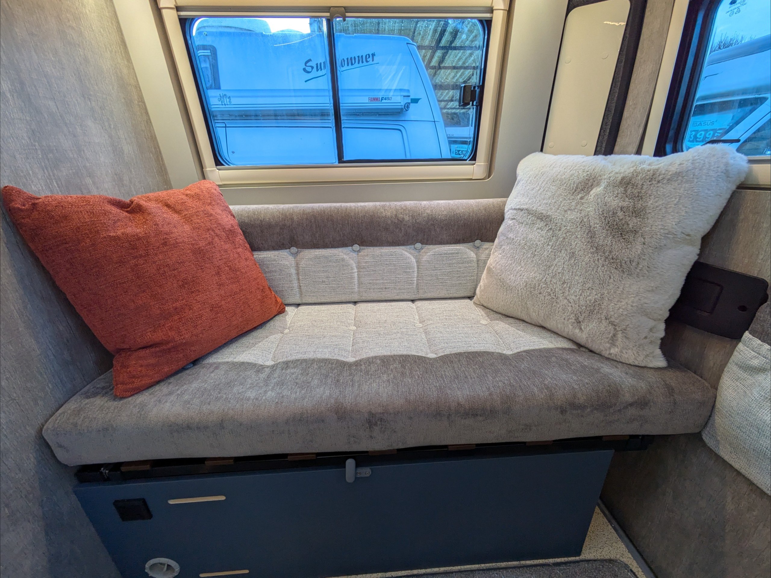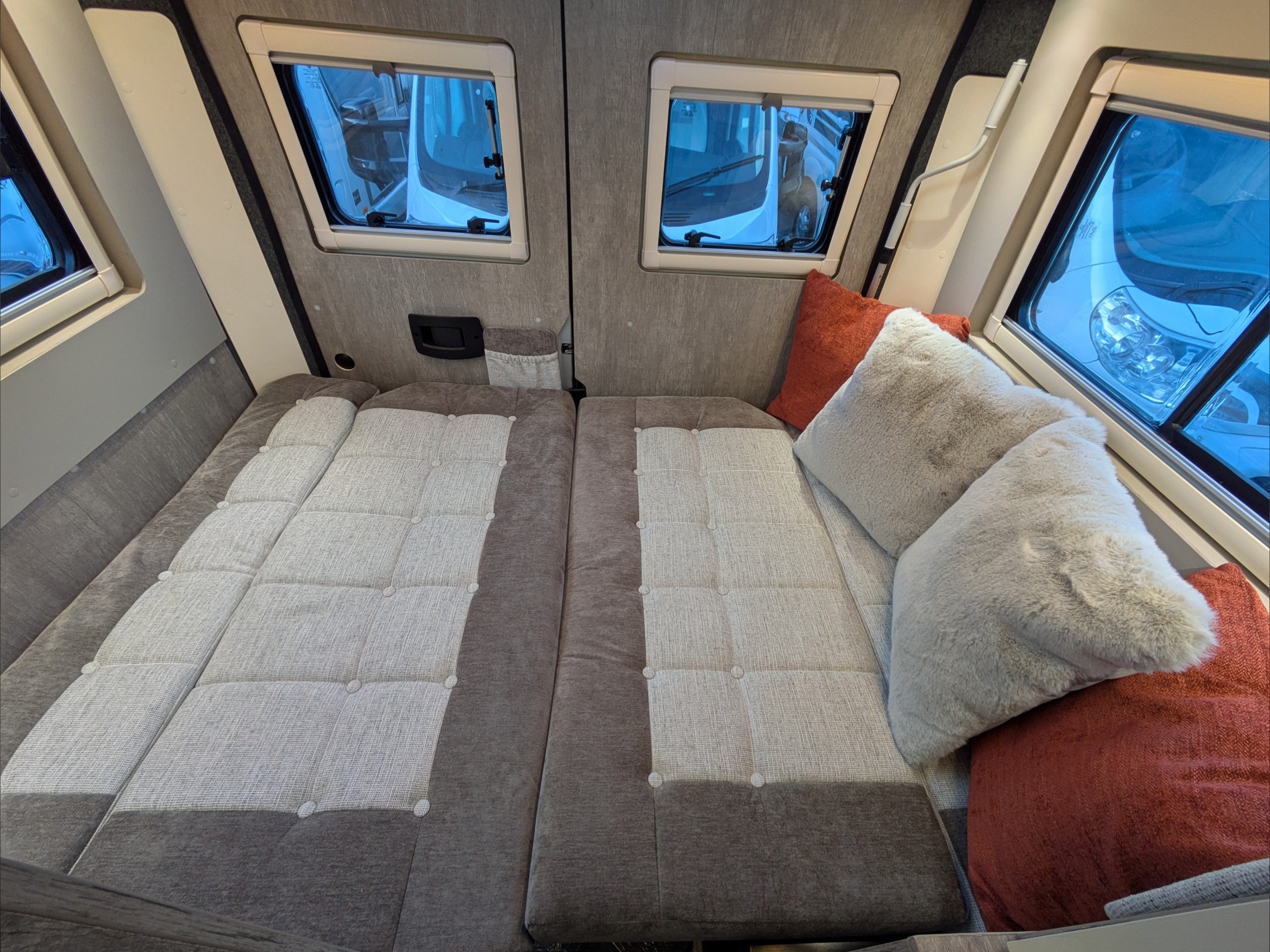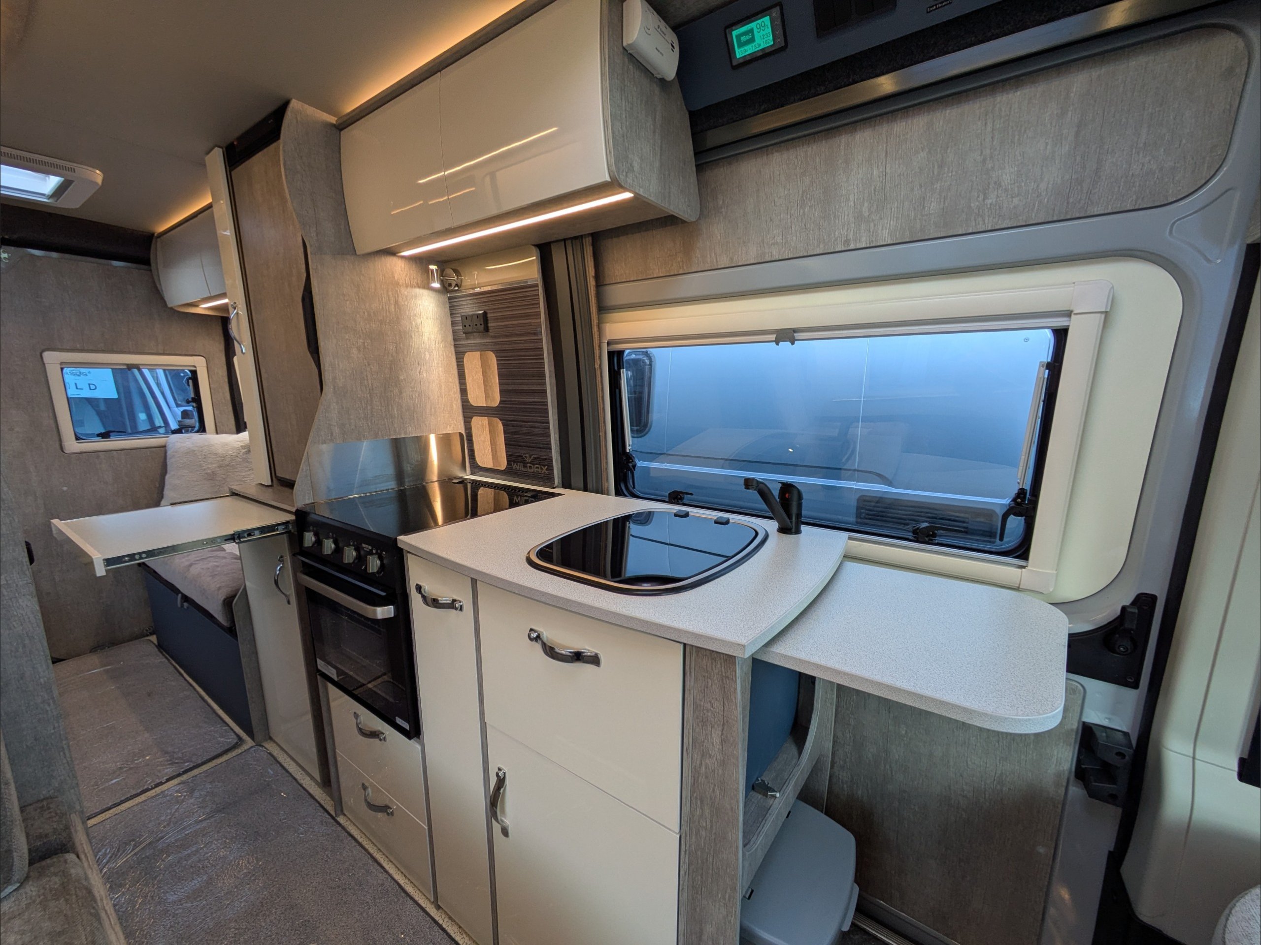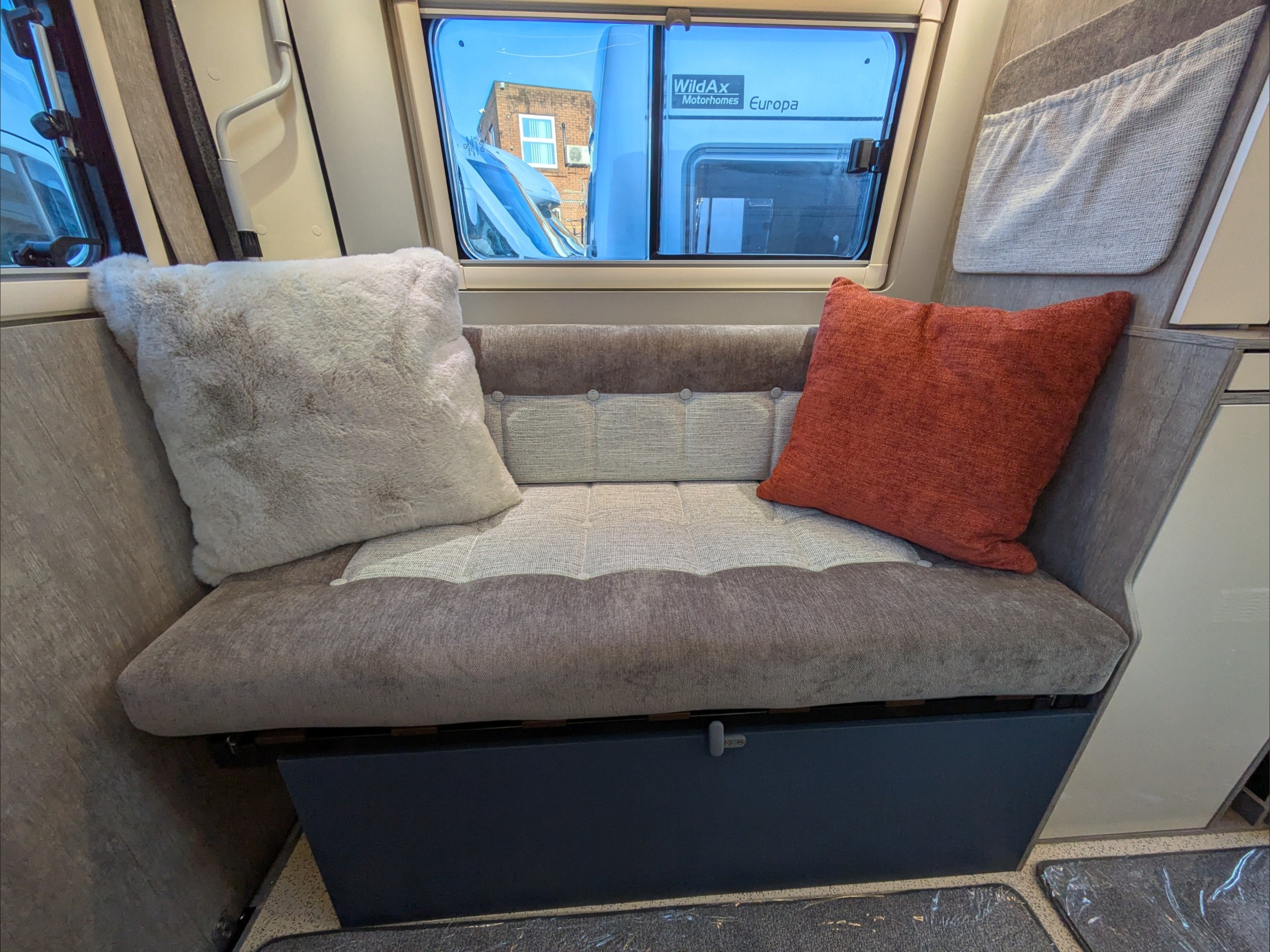 2026 Brand New Brand New WildAx Aurora Leisure. Can also be ordered with a fixed bed at the rear. Colour; Expedition Grey or Artense Grey. 3 Berth, 3 Seatbelts. Standard Driving License Applicable. ULEZ Compliant. Situated at the front is dinette conversion lounge that can seat 3 people with the cab seats swiveled. Situated at the rear, the lounge comprises dual bench seats, which convert to a double bed. The kitchen comes with intergrill, fridge, hob, and extending counter top. The washroom comes with shower, wash basin, and cassette toilet. Available to order now at the Southern Motorhome Centre.