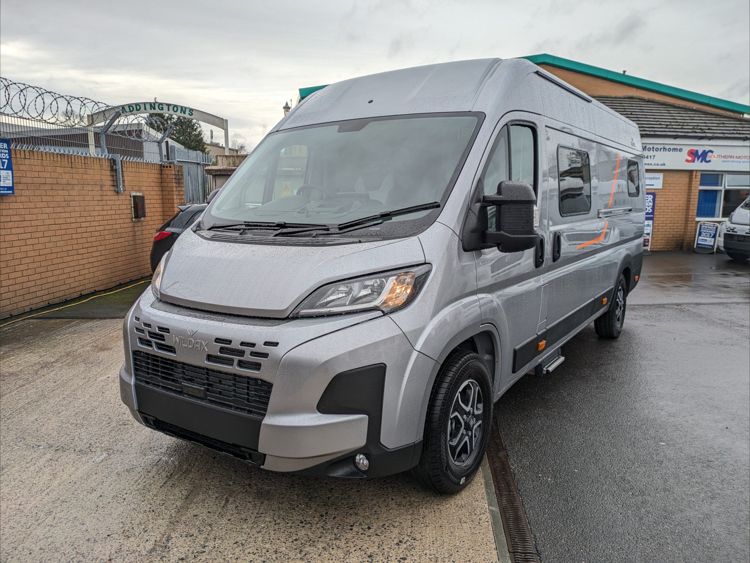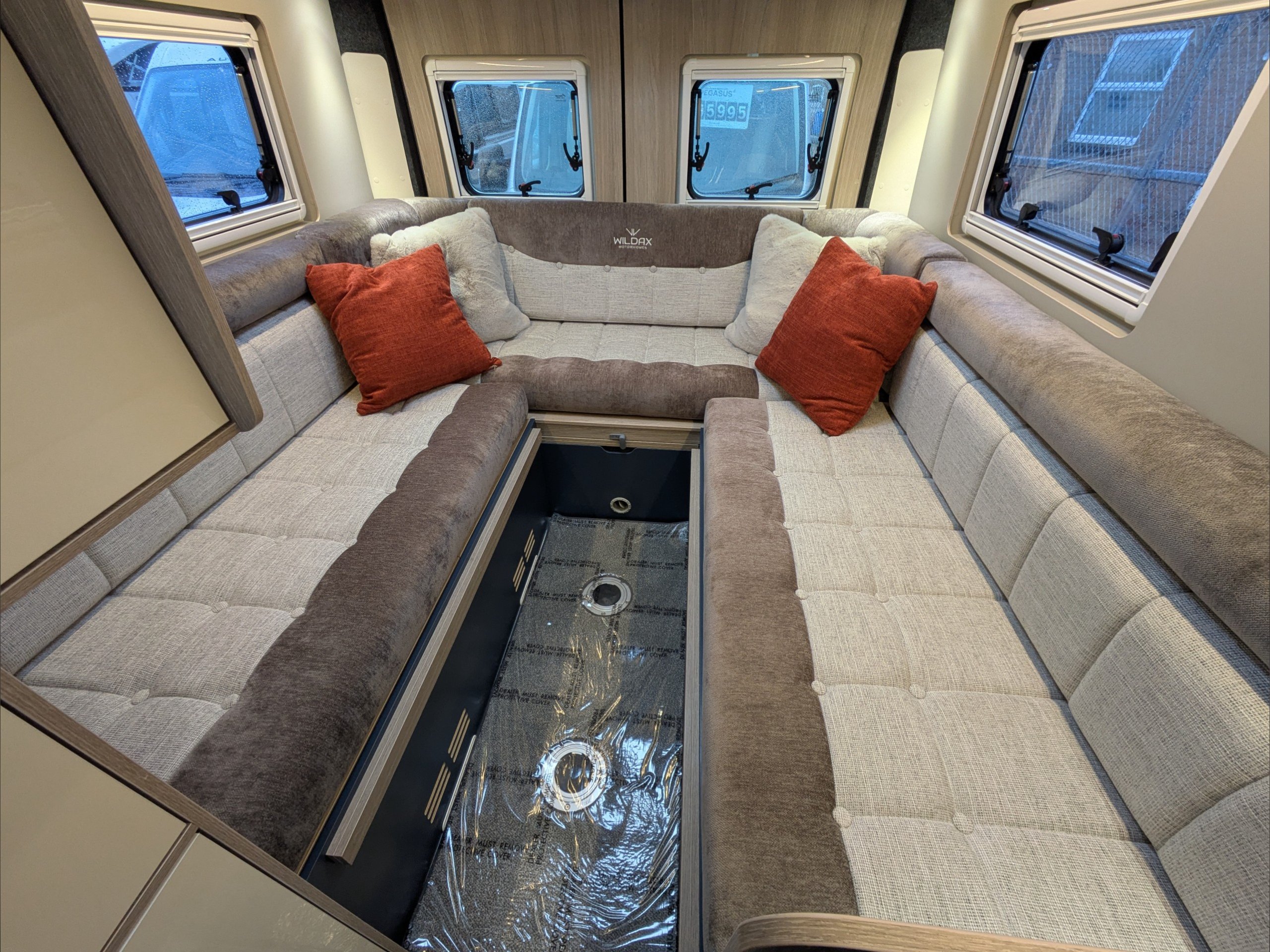 2026 Brand New WildAx Europa XL. Can also be ordered as a 6 Metre van. Colour; Expedition Grey. 2 Berth, 2 Seatbelt. Standard Driving License Applicable. ULEZ Compliant. The U Shaped lounge at the rear can comfortably seat 5 people, has loads of storage underneath, and converts into either a large double bed or two singles. The kitchen comes with a 12v fridge, intergrill, microwave, sink, extending counter top, and hob. The washroom comes with cassette toilet, wash basin, and shower. Available to order now at the Southern Motorhome Centre.