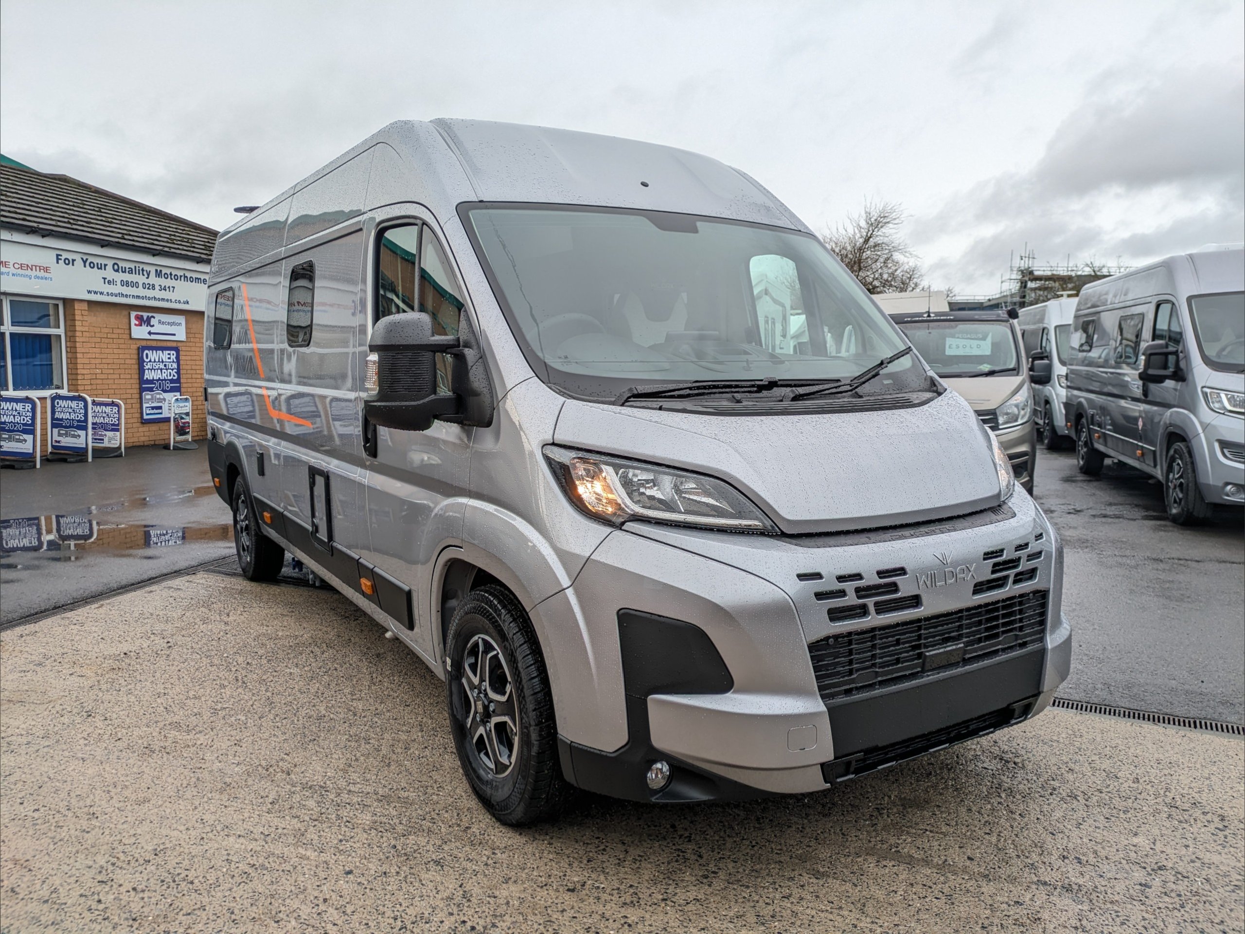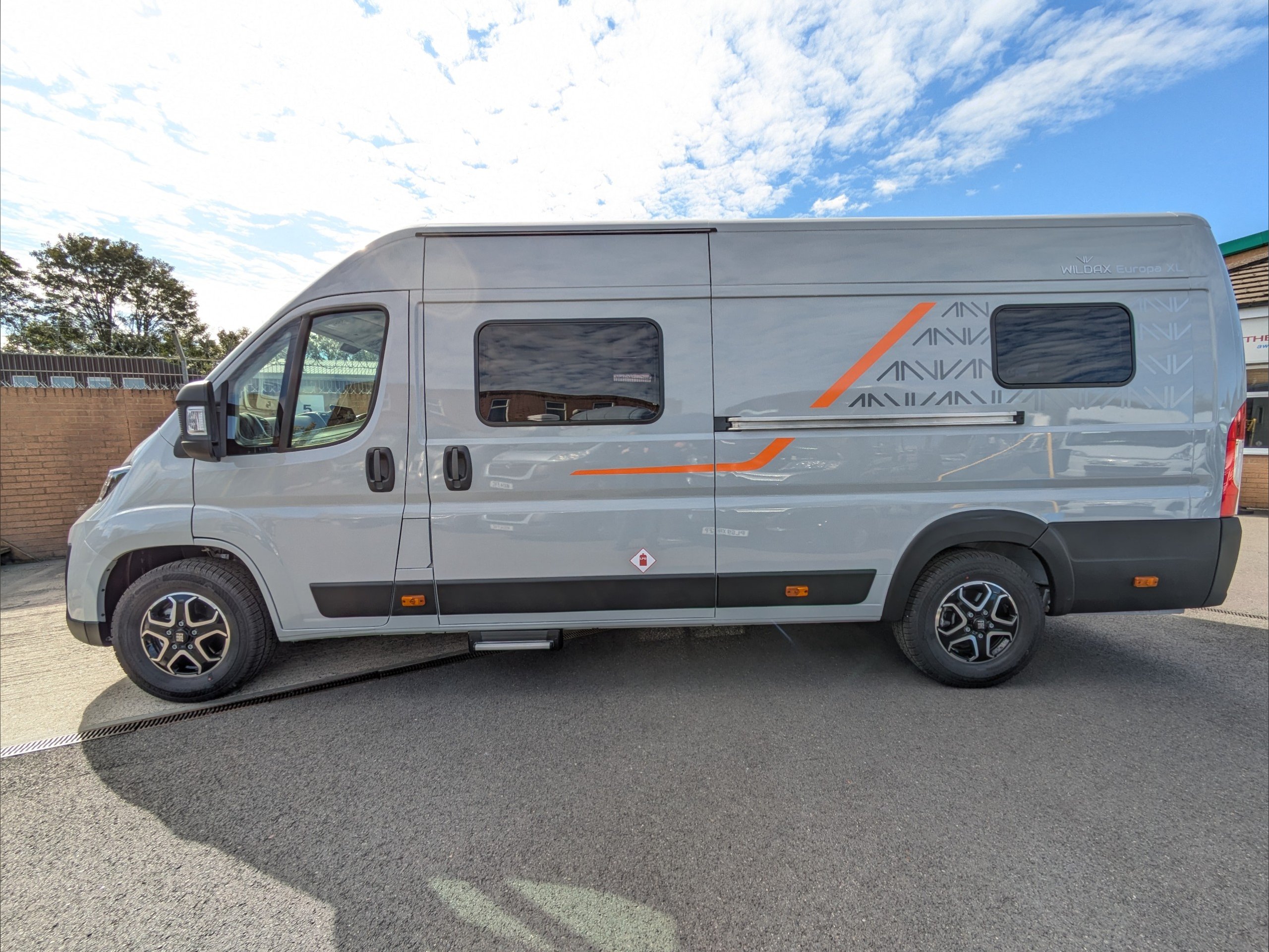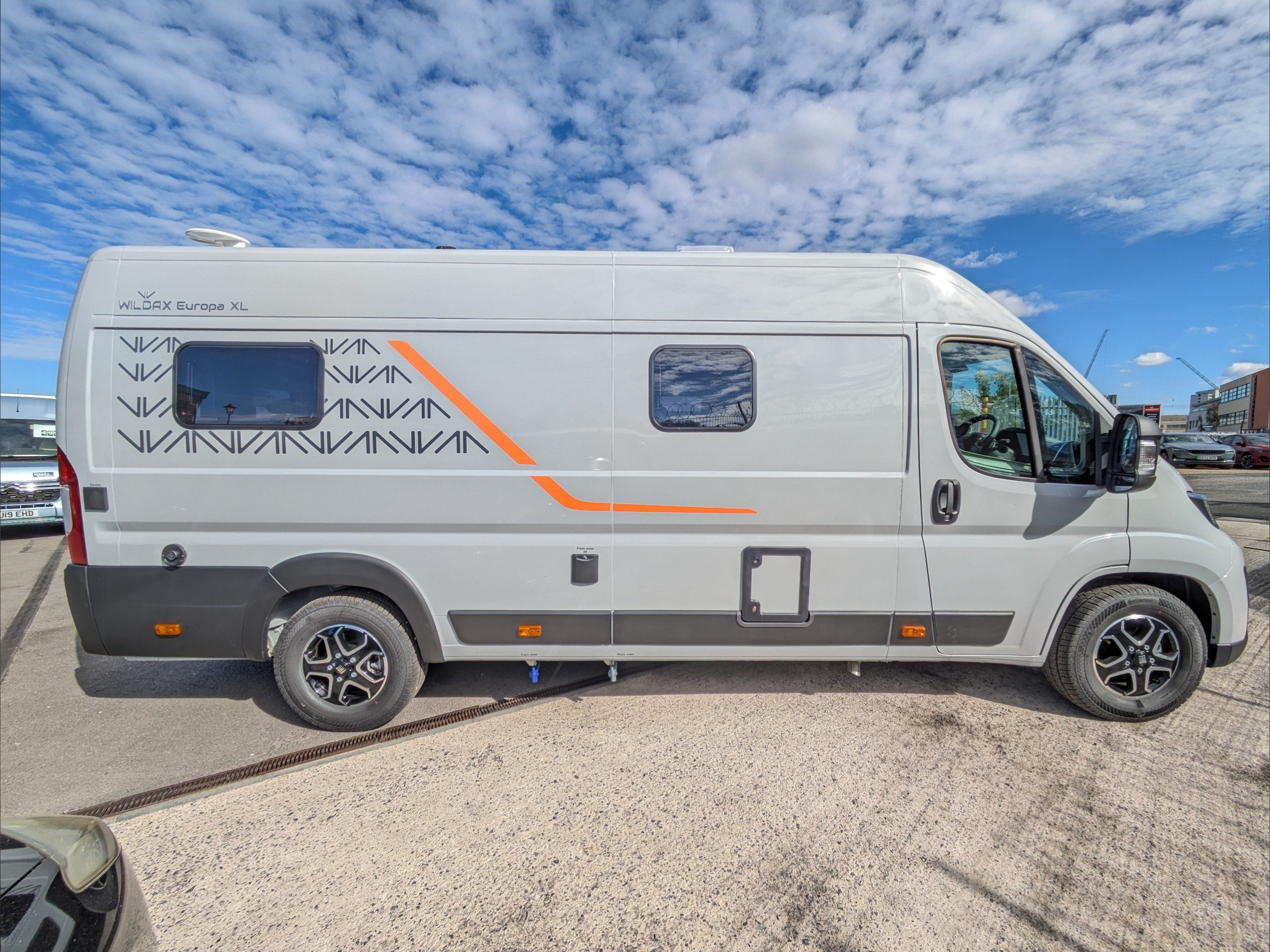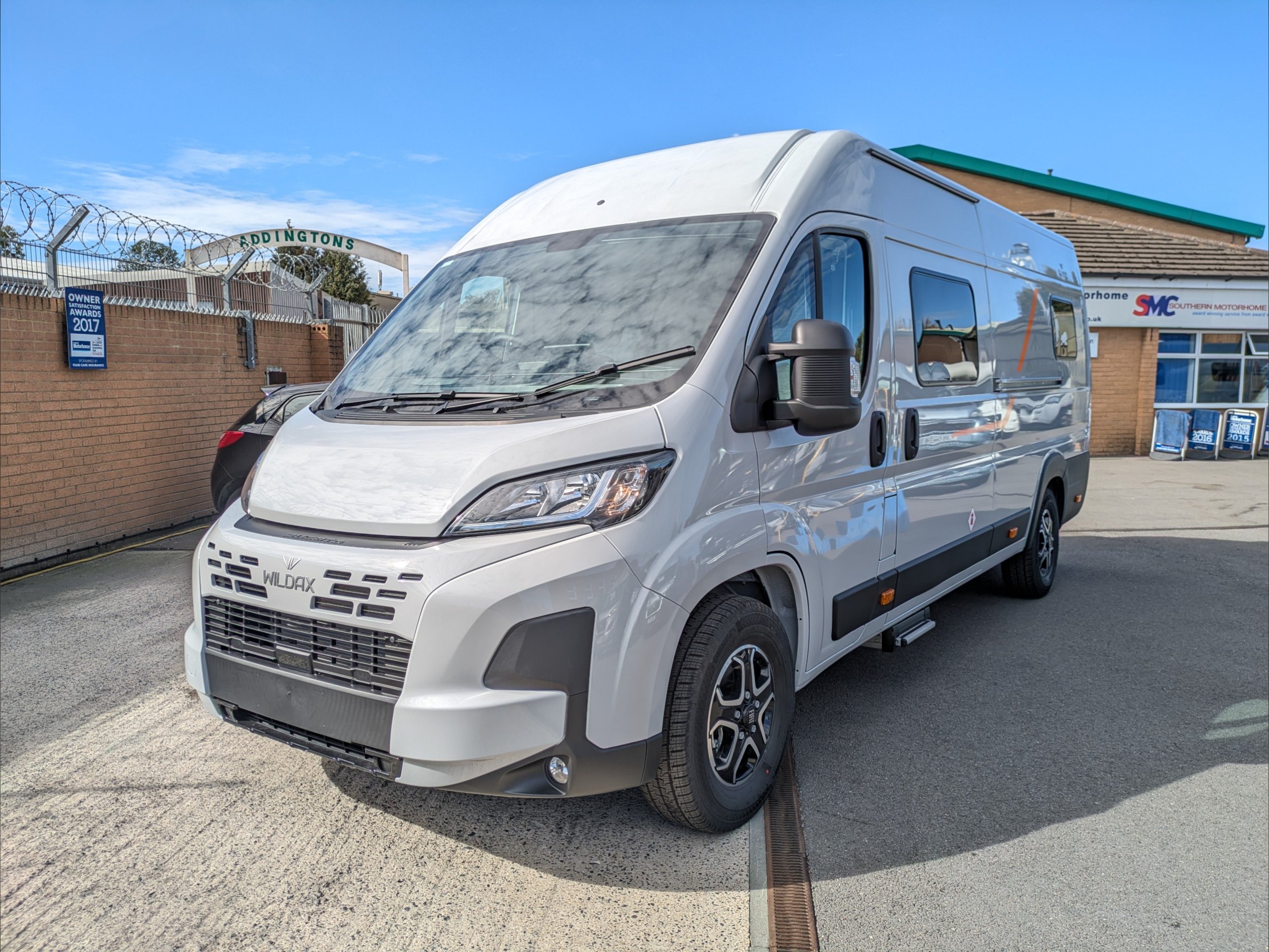 2026 Brand New WildAx Europa XL. Can also be ordered as a 6 Metre van. Colour; Expedition Grey. 2 Berth, 2 Seatbelt. Standard Driving License Applicable. ULEZ Compliant. The U Shaped lounge at the rear can comfortably seat 5 people, has loads of storage underneath, and converts into either a large double bed or two singles. The kitchen comes with a 12v fridge, intergrill, microwave, sink, extending counter top, and hob. The washroom comes with cassette toilet, wash basin, and shower. Available to order now at the Southern Motorhome Centre.