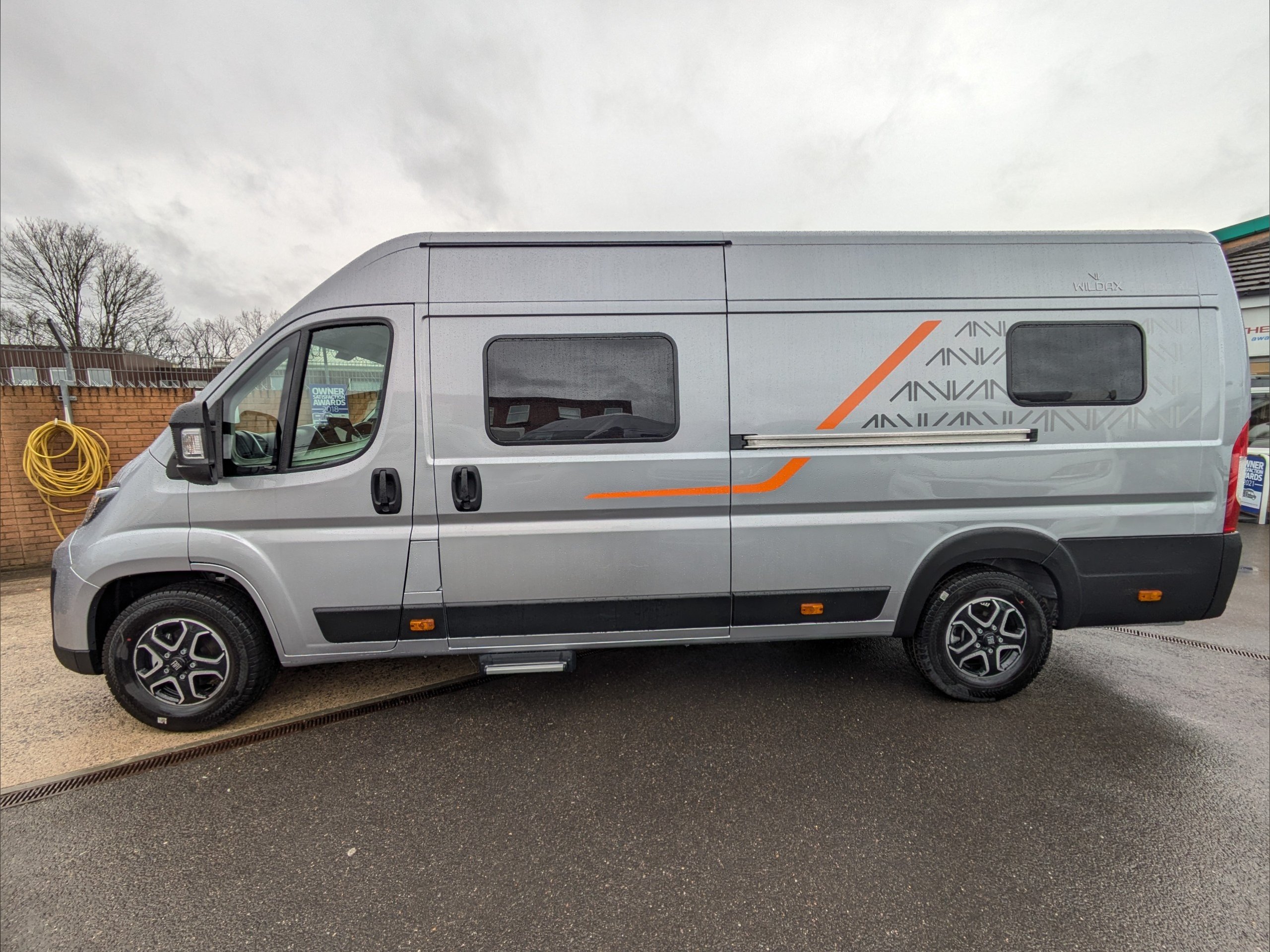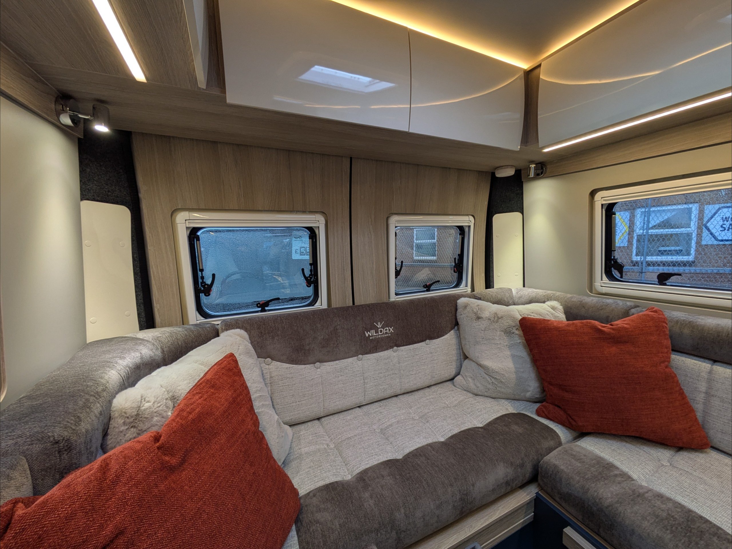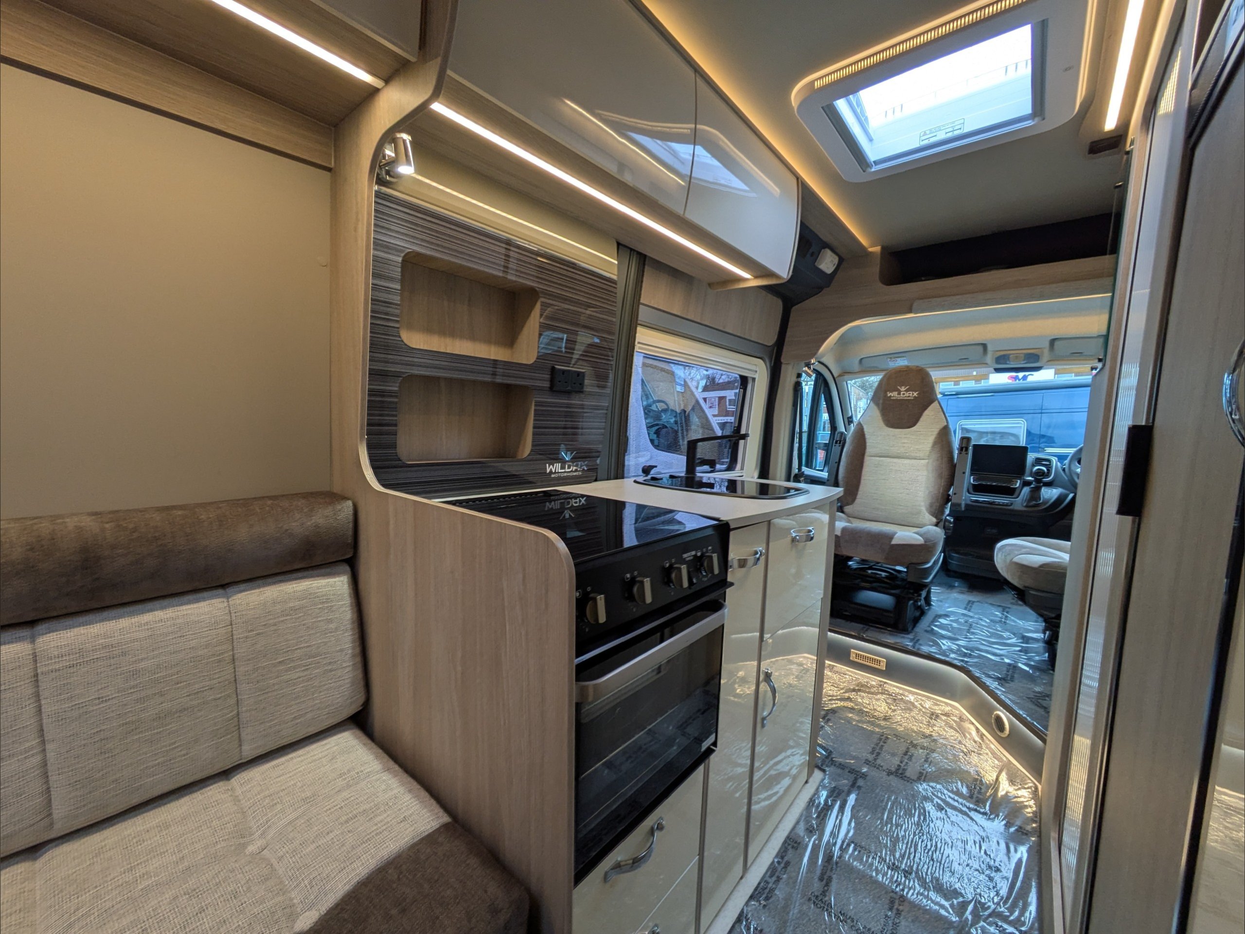 2026 Brand New WildAx Europa XL. Can also be ordered as a 6 Metre van. Colour; Expedition Grey. 2 Berth, 2 Seatbelt. Standard Driving License Applicable. ULEZ Compliant. The U Shaped lounge at the rear can comfortably seat 5 people, has loads of storage underneath, and converts into either a large double bed or two singles. The kitchen comes with a 12v fridge, intergrill, microwave, sink, extending counter top, and hob. The washroom comes with cassette toilet, wash basin, and shower. Available to order now at the Southern Motorhome Centre.