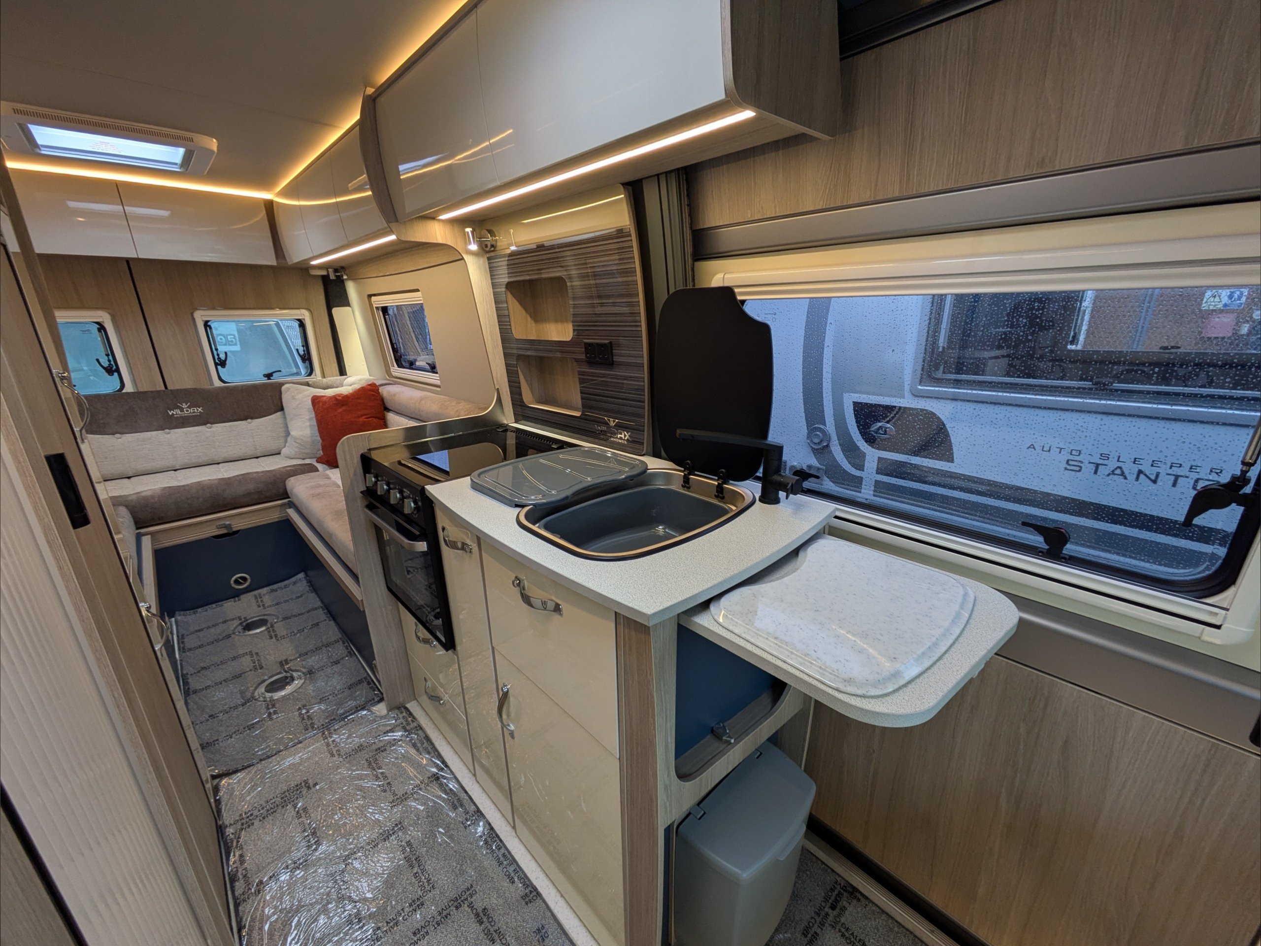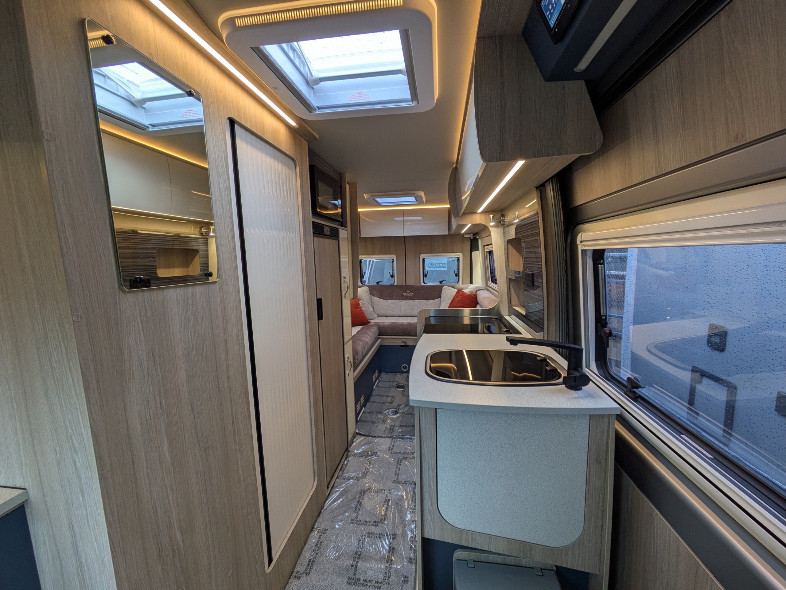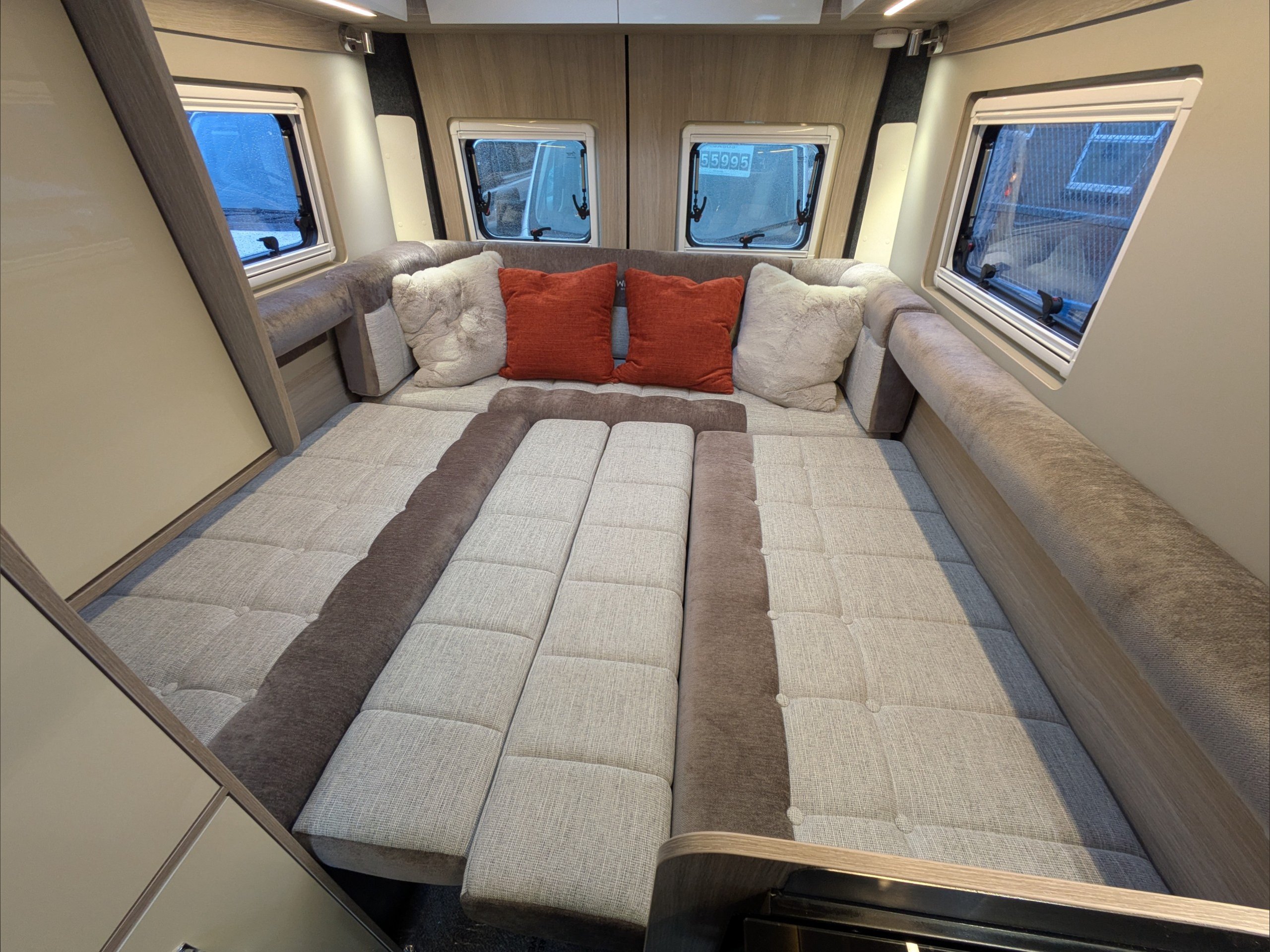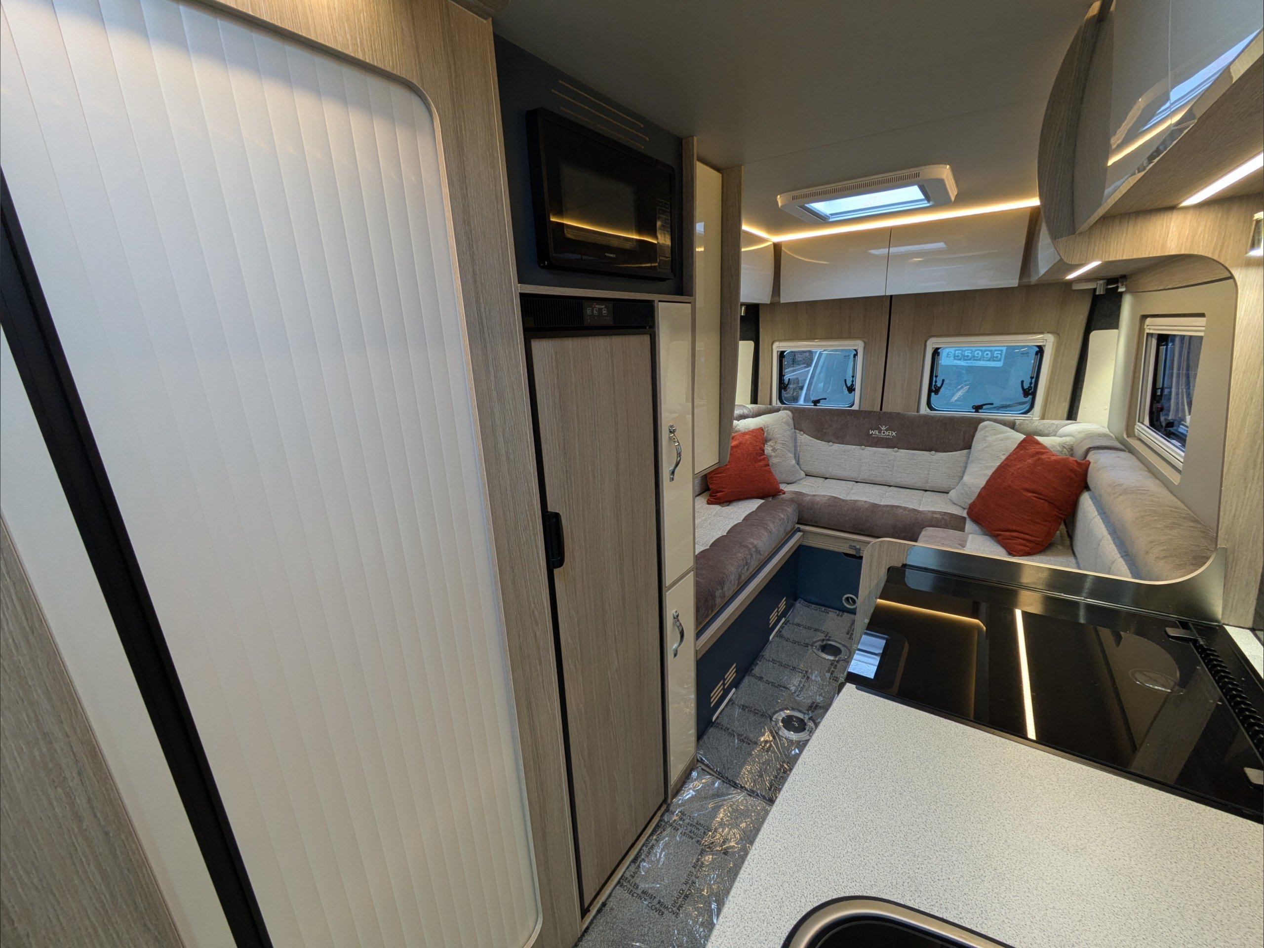 2026 Brand New WildAx Europa XL. Can also be ordered as a 6 Metre van. Colour; Expedition Grey. 2 Berth, 2 Seatbelt. Standard Driving License Applicable. ULEZ Compliant. The U Shaped lounge at the rear can comfortably seat 5 people, has loads of storage underneath, and converts into either a large double bed or two singles. The kitchen comes with a 12v fridge, intergrill, microwave, sink, extending counter top, and hob. The washroom comes with cassette toilet, wash basin, and shower. Available to order now at the Southern Motorhome Centre.