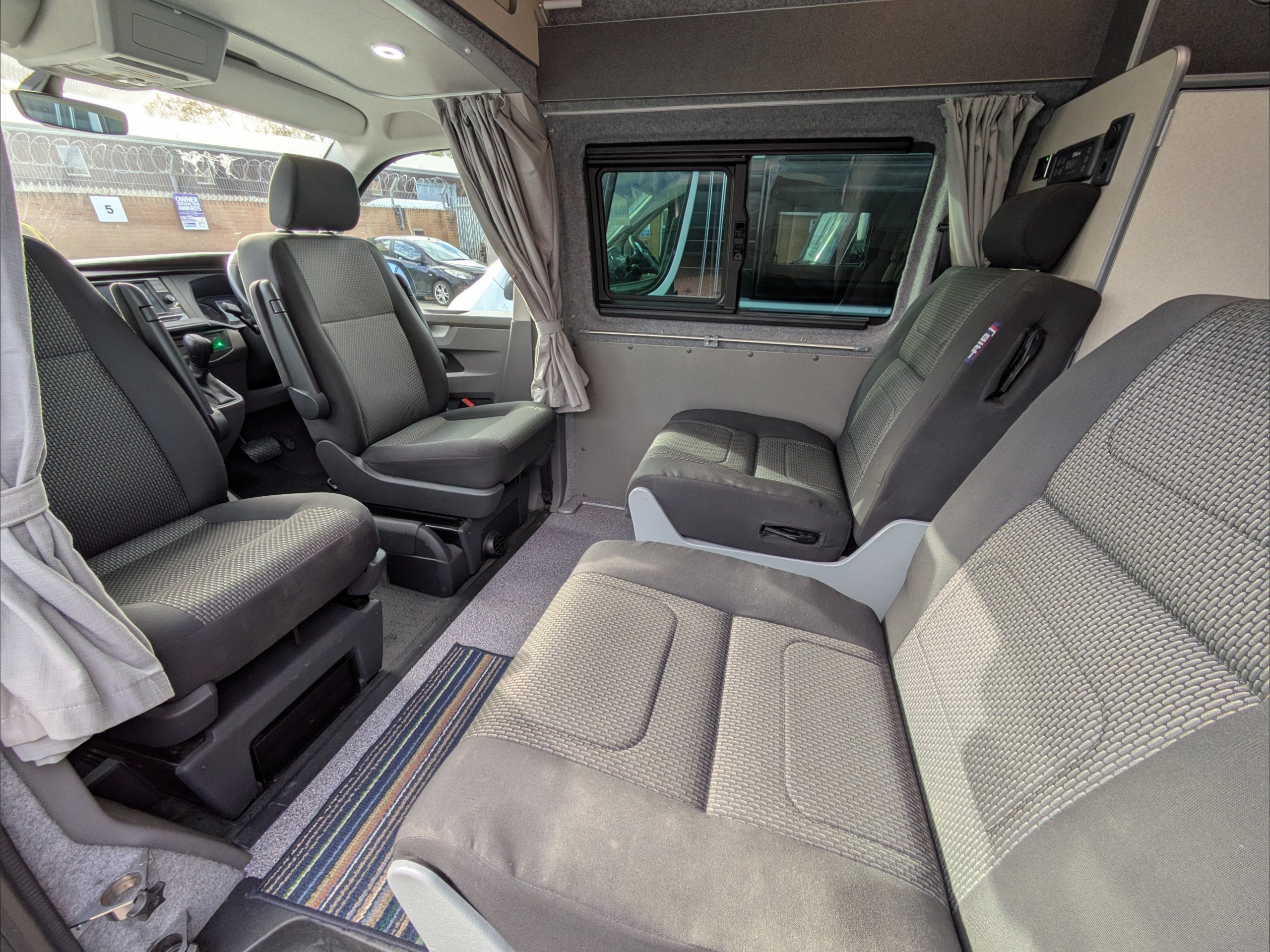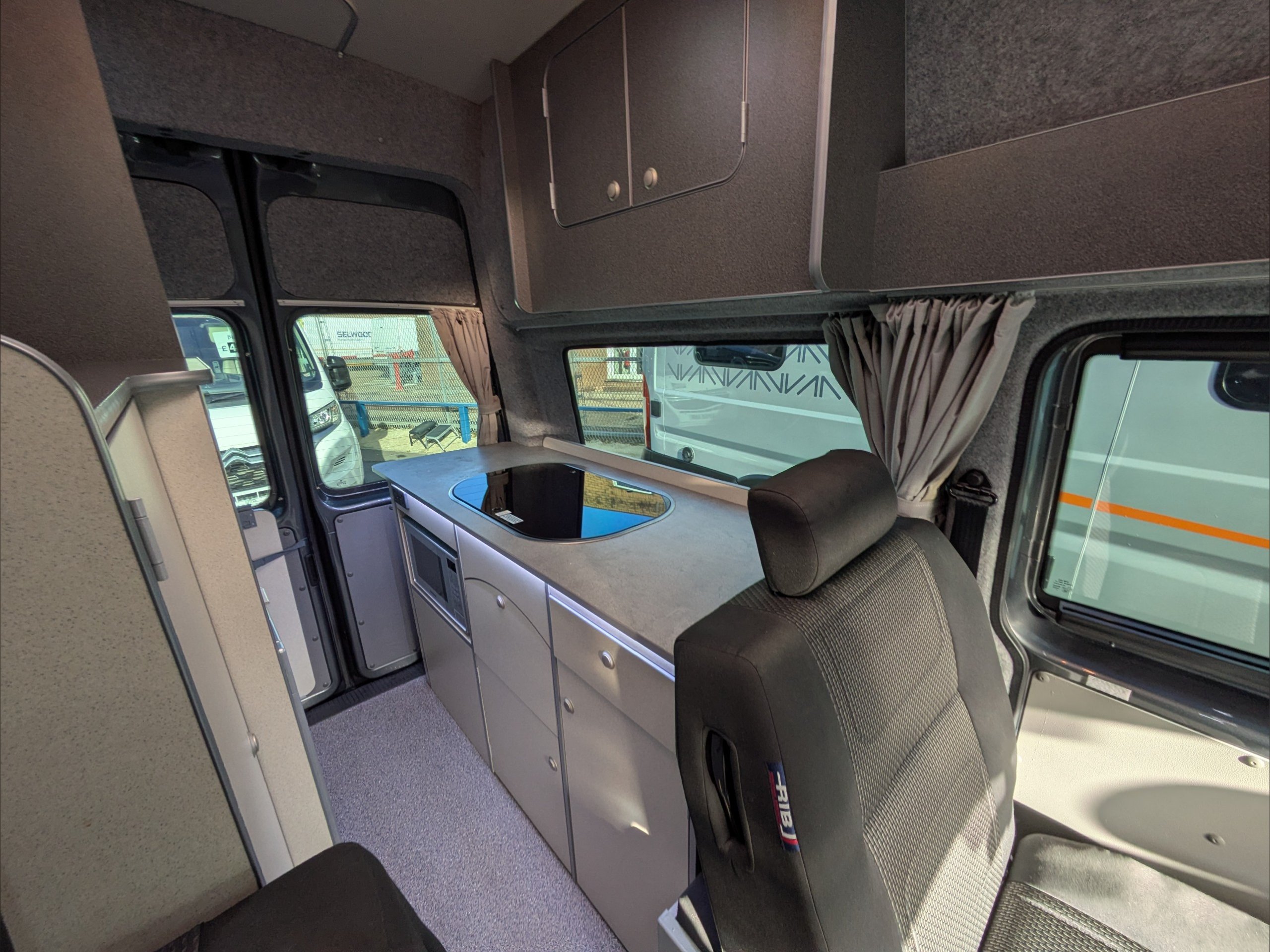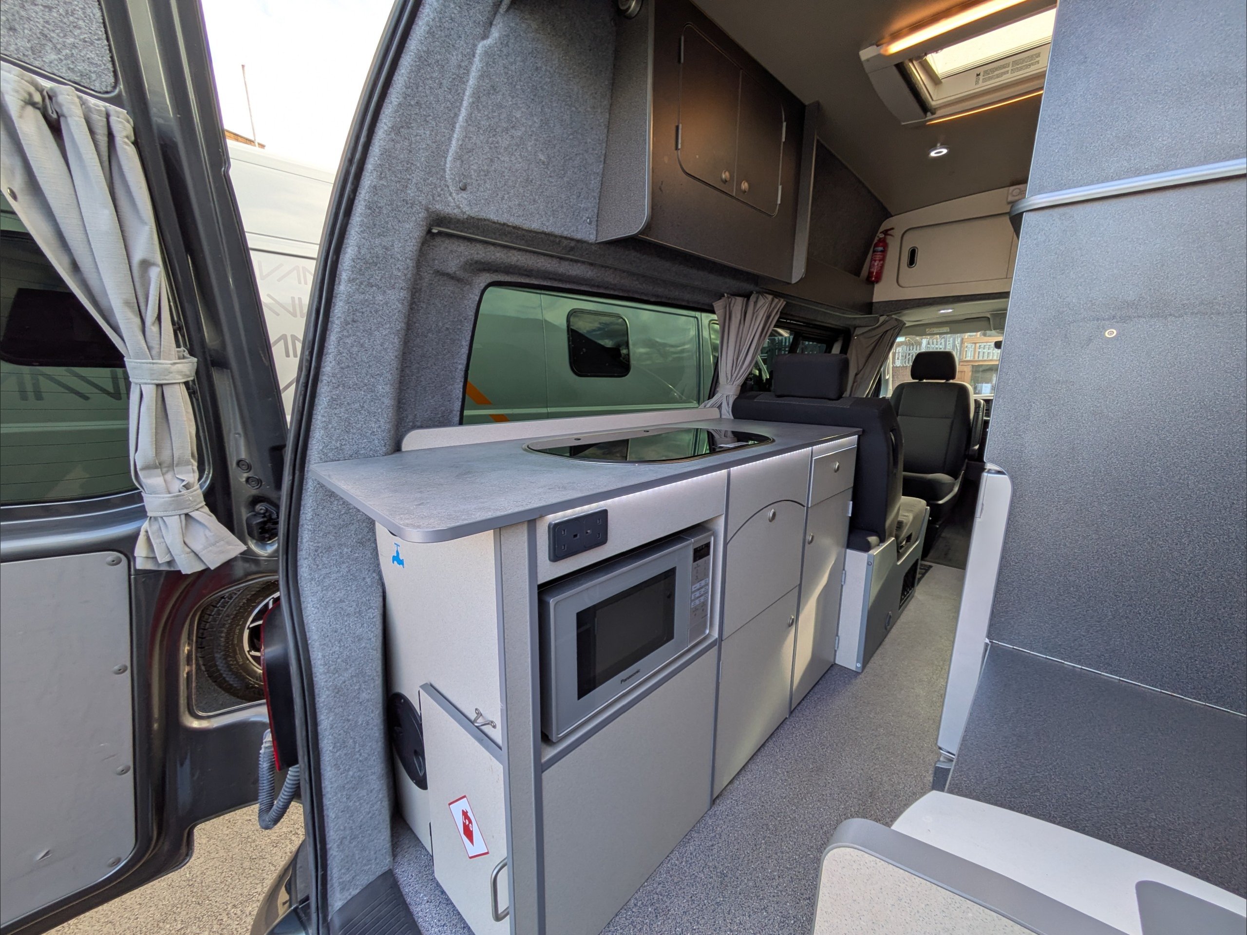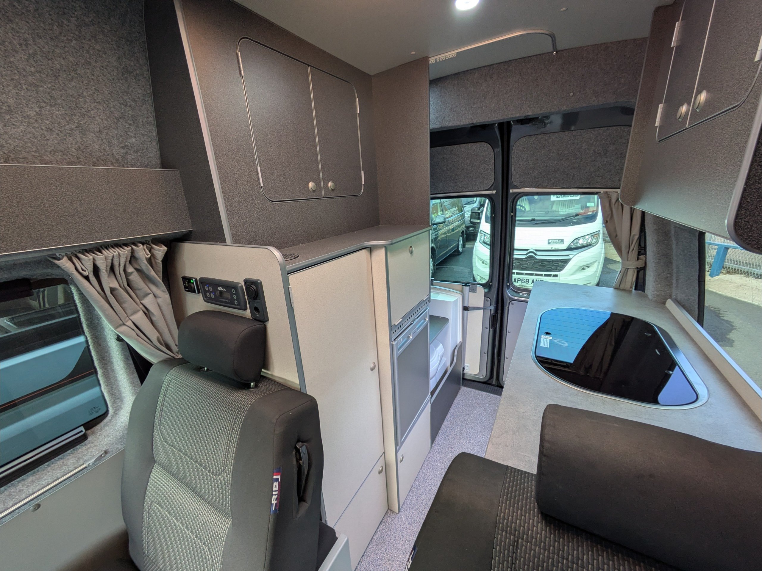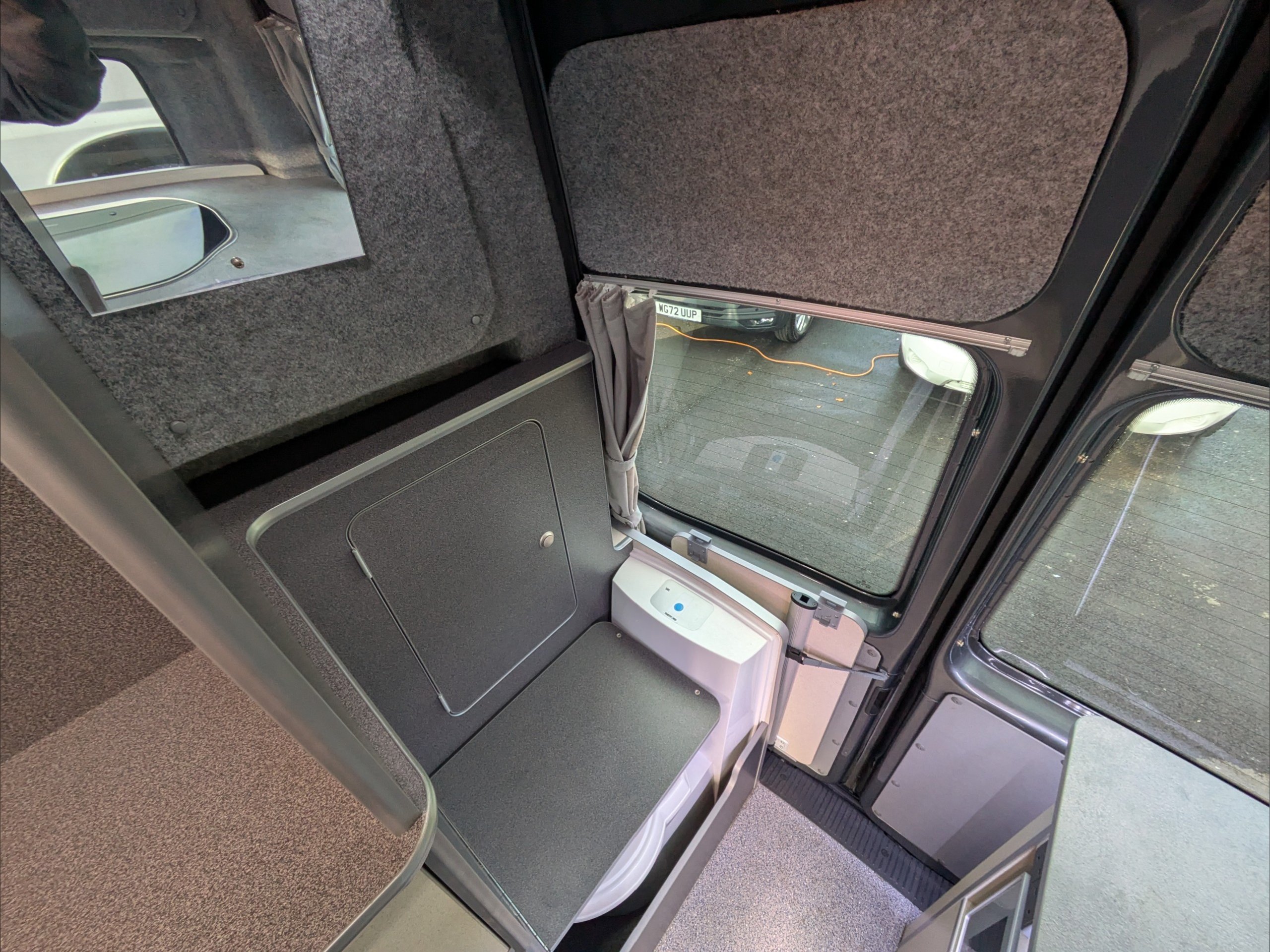 VW Bilbos Nexa Plus. Only 2 made! 4WD, 200BHP. 2 Berth, 4 Seatbelt. Standard Driving License Applicable. ULEZ Compliant. Situated at the front, the lounge can seat 4 people and converts to twin single beds. At the rear is the kitchen which comes with 12 volt fridge, hob, sink, and microwave. This layout also comes with a fitted cassette toilet. Available at the Southern Motorhome Centre now.