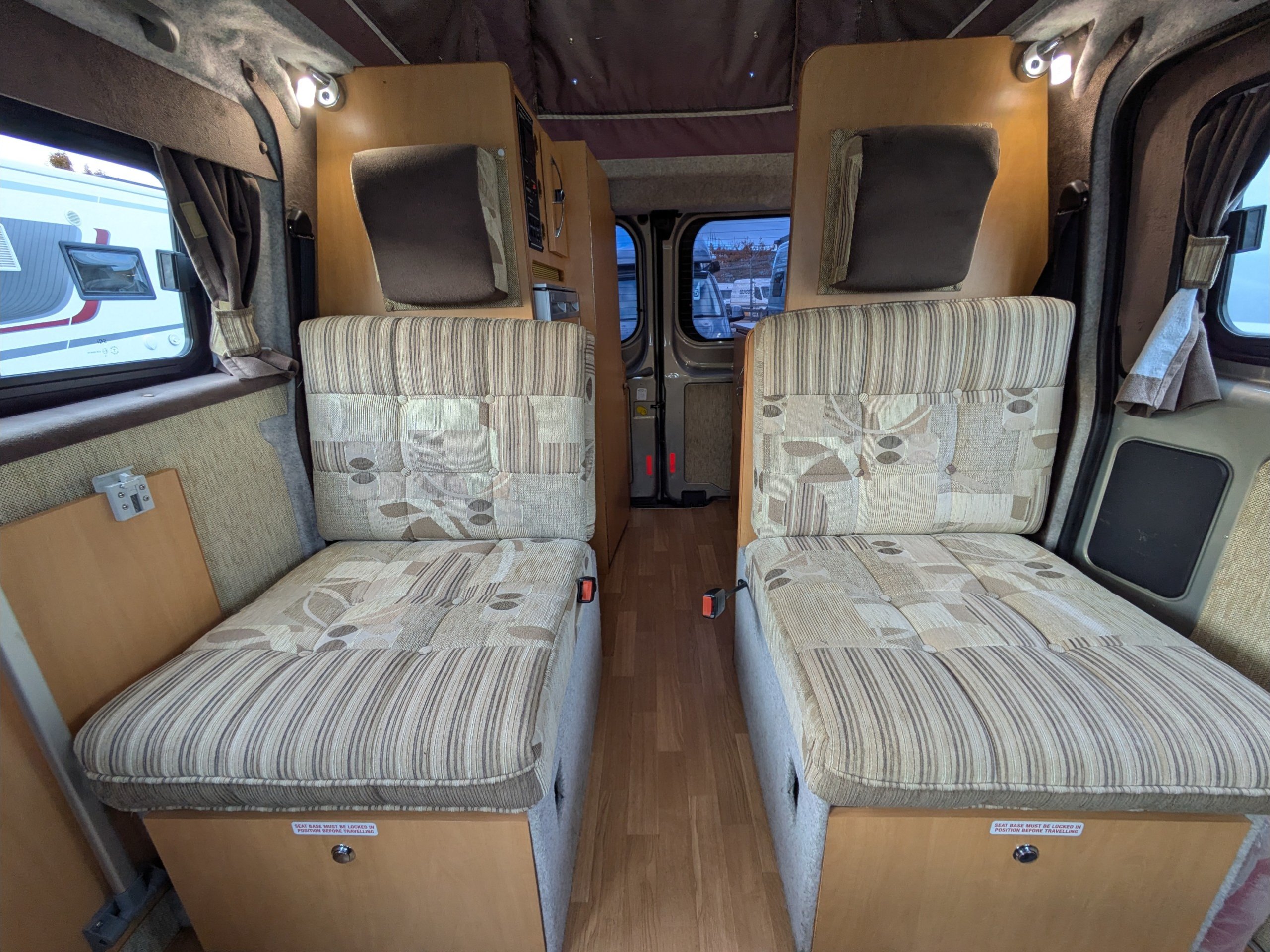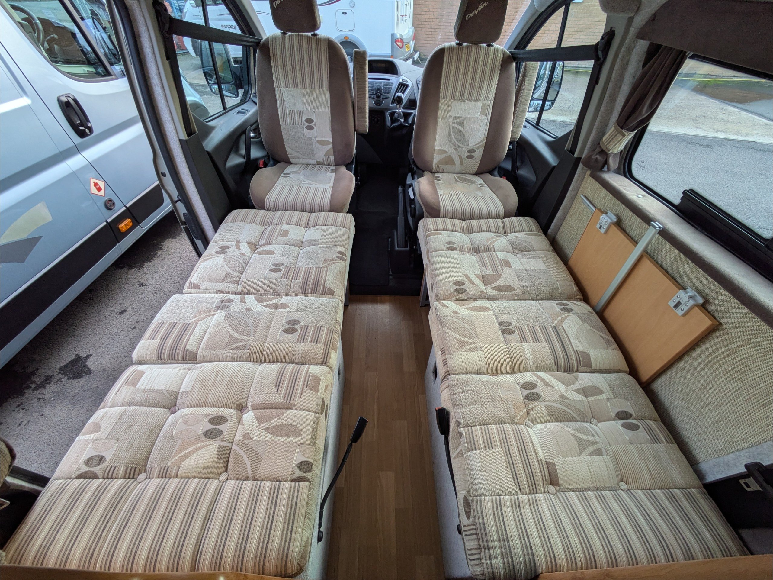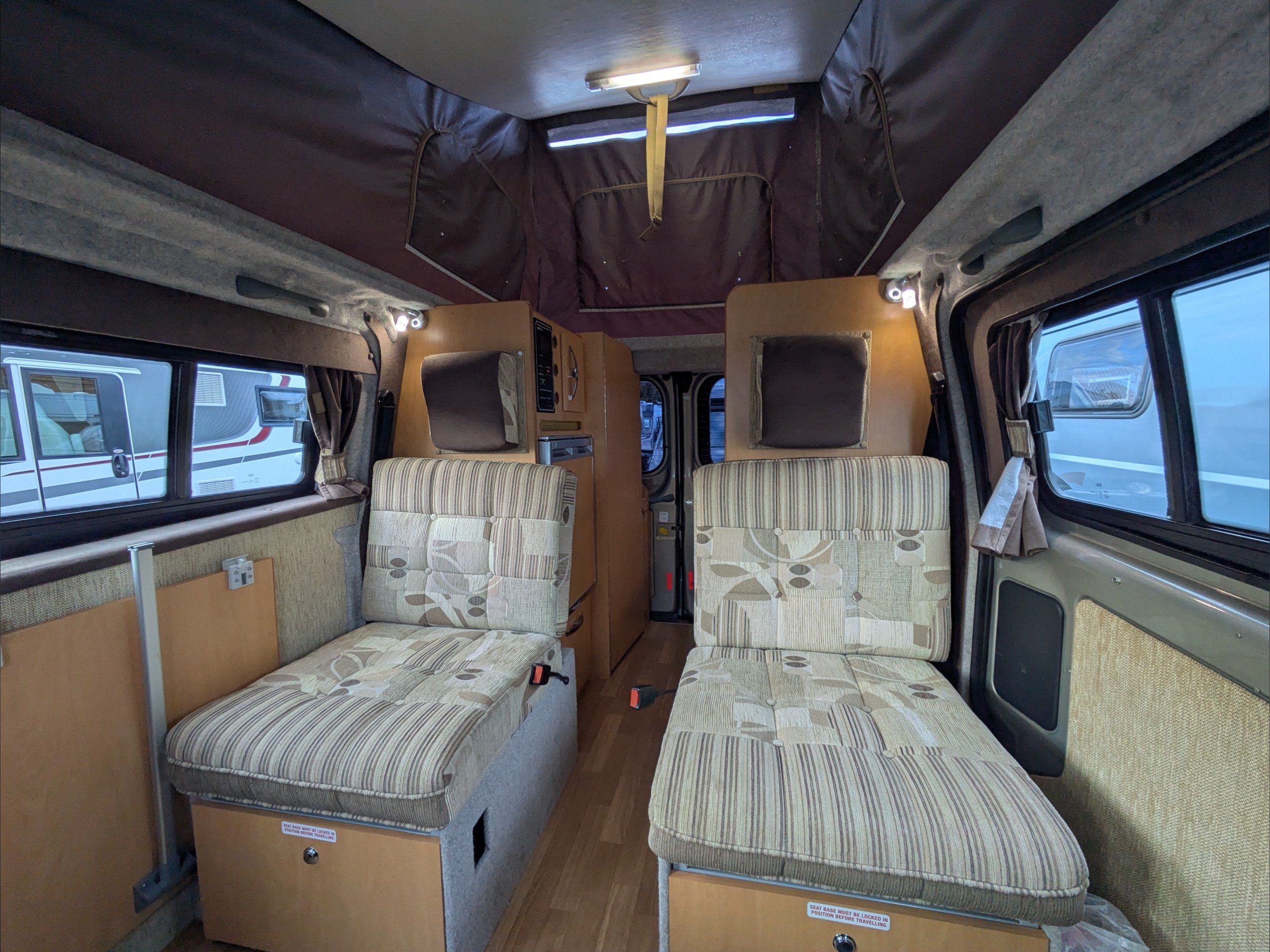 Devon Firefly. 2 Berth, 4 Seatbelts. Standard Driving License Applicable. Vehicle layout: The lounge is the main area of the van which can seat 4 people and the rear seats convert to twin single beds. The kitchen comes with hob, 12 volt fridge, and sink. There is also a fitted cassette toilet at the rear. Available at the Southern Motorhome Centre now.