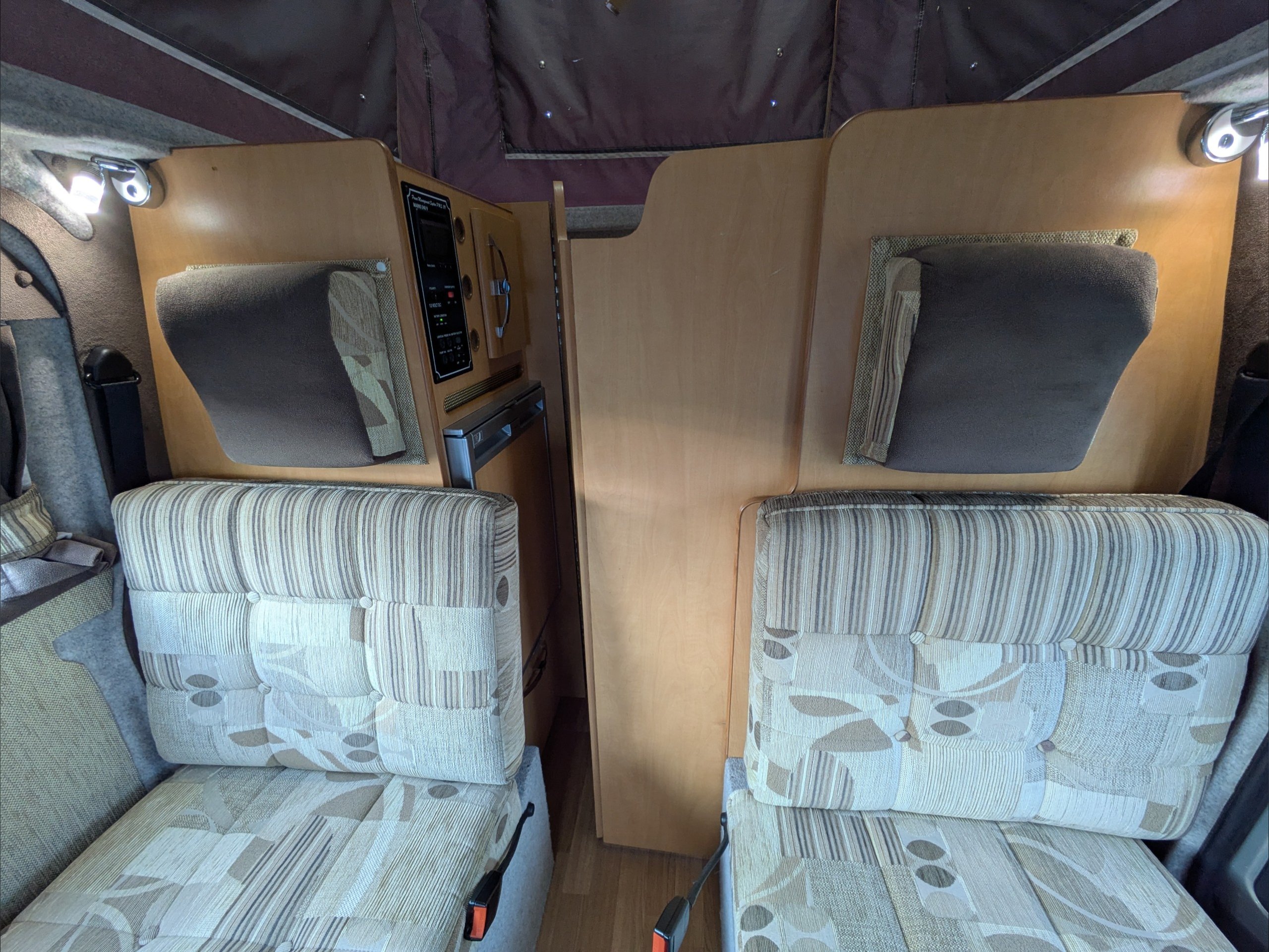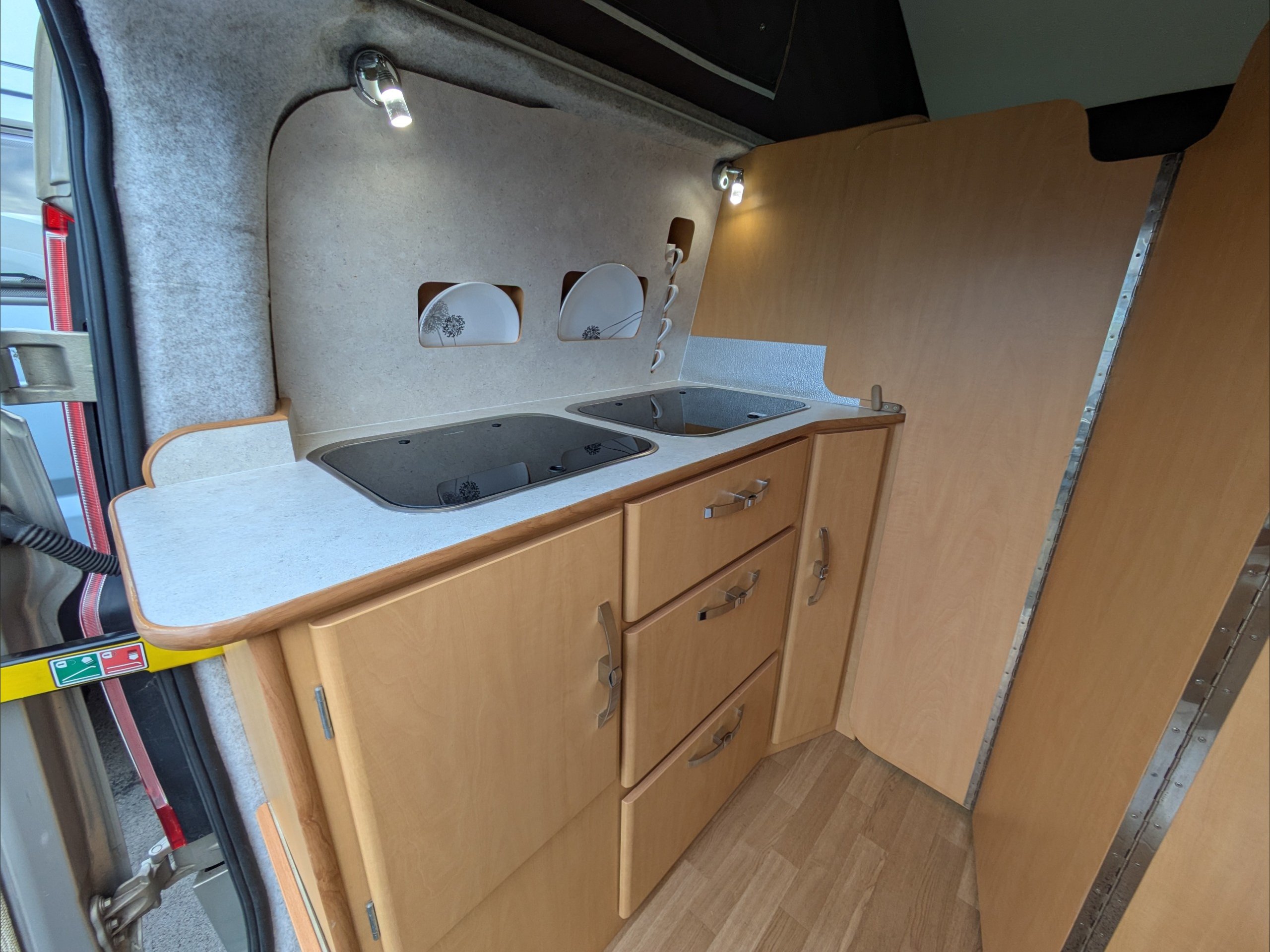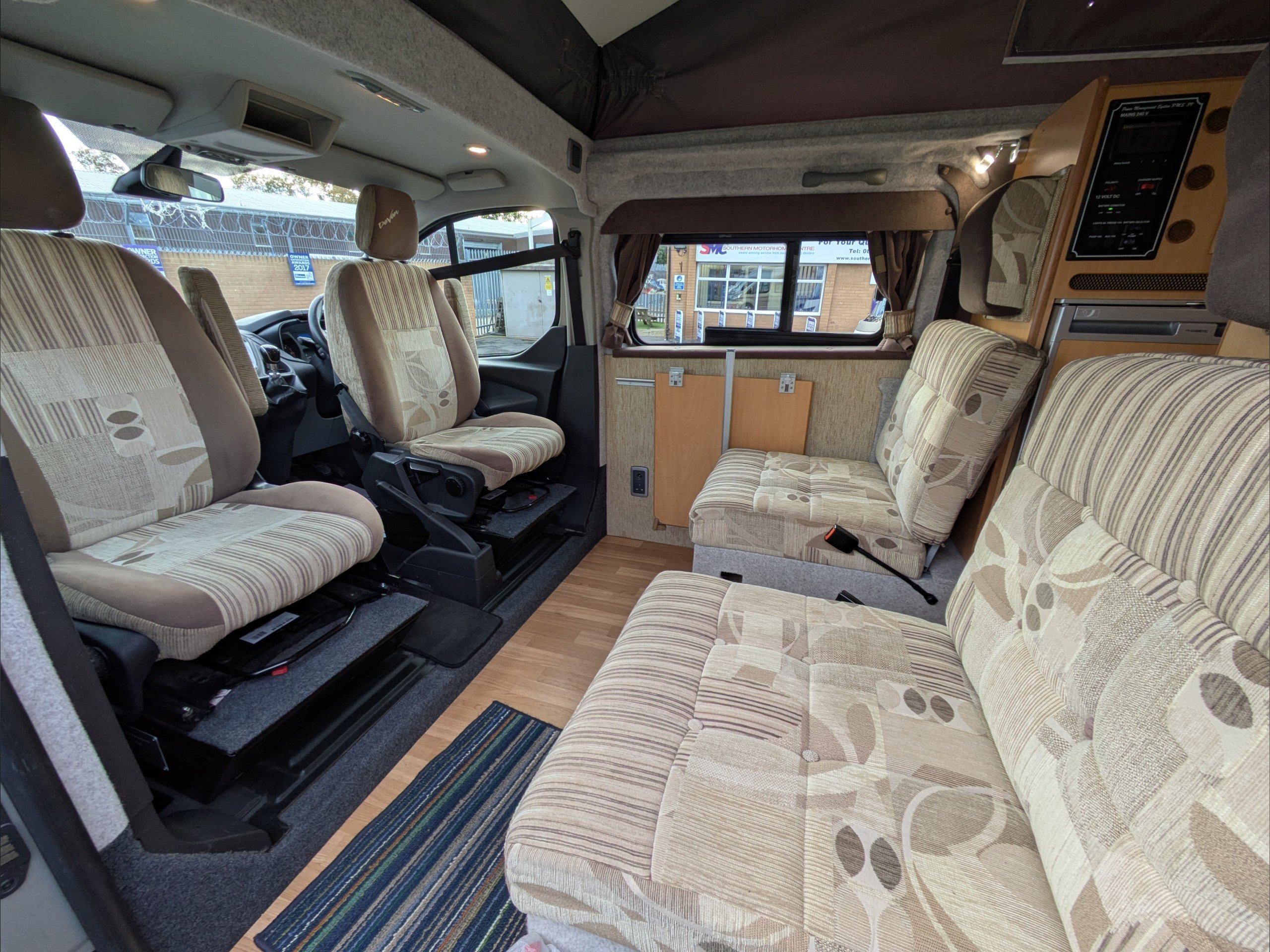 Devon Firefly. 2 Berth, 4 Seatbelts. Standard Driving License Applicable. Vehicle layout: The lounge is the main area of the van which can seat 4 people and the rear seats convert to twin single beds. The kitchen comes with hob, 12 volt fridge, and sink. There is also a fitted cassette toilet at the rear. Available at the Southern Motorhome Centre now.