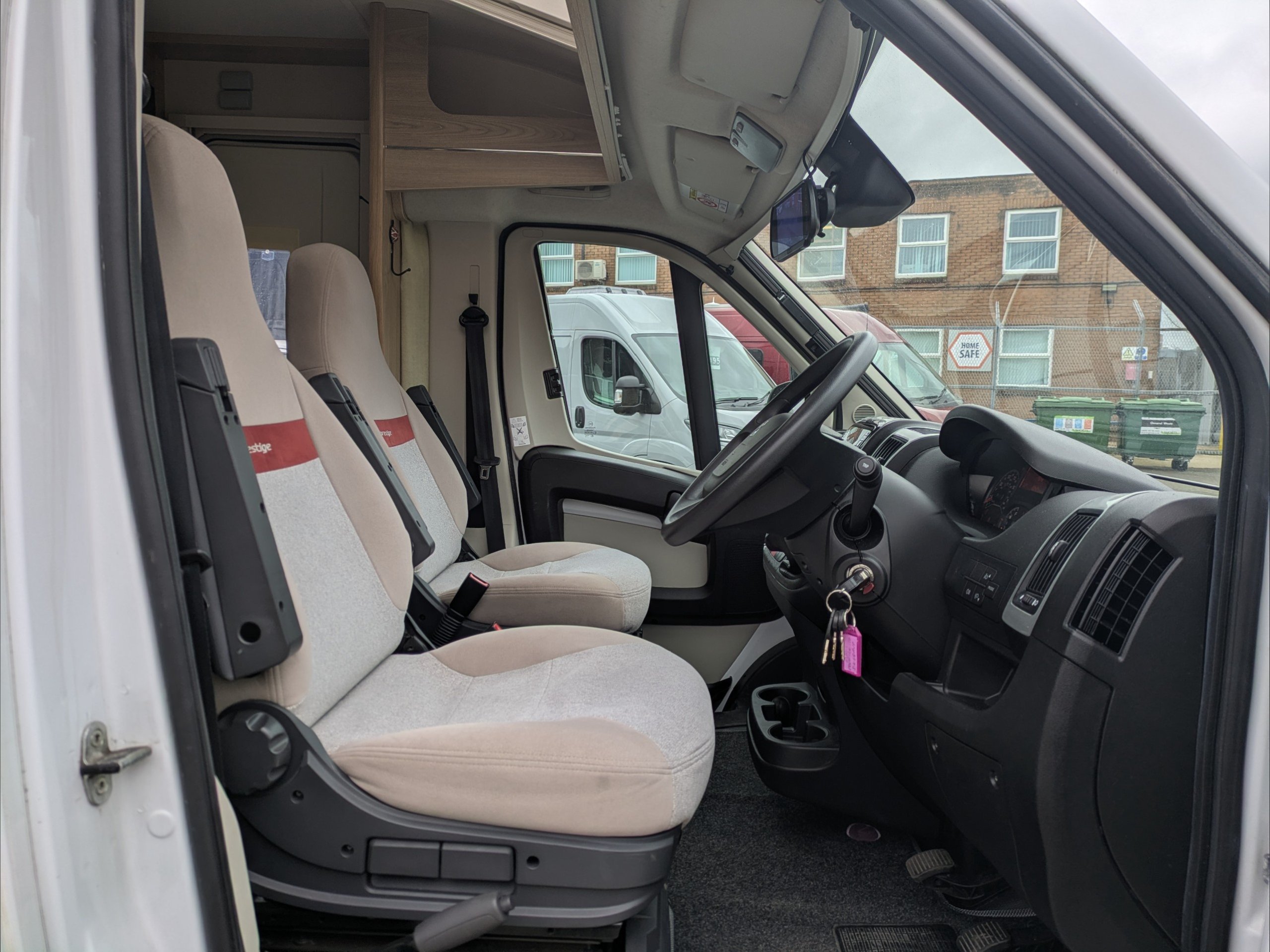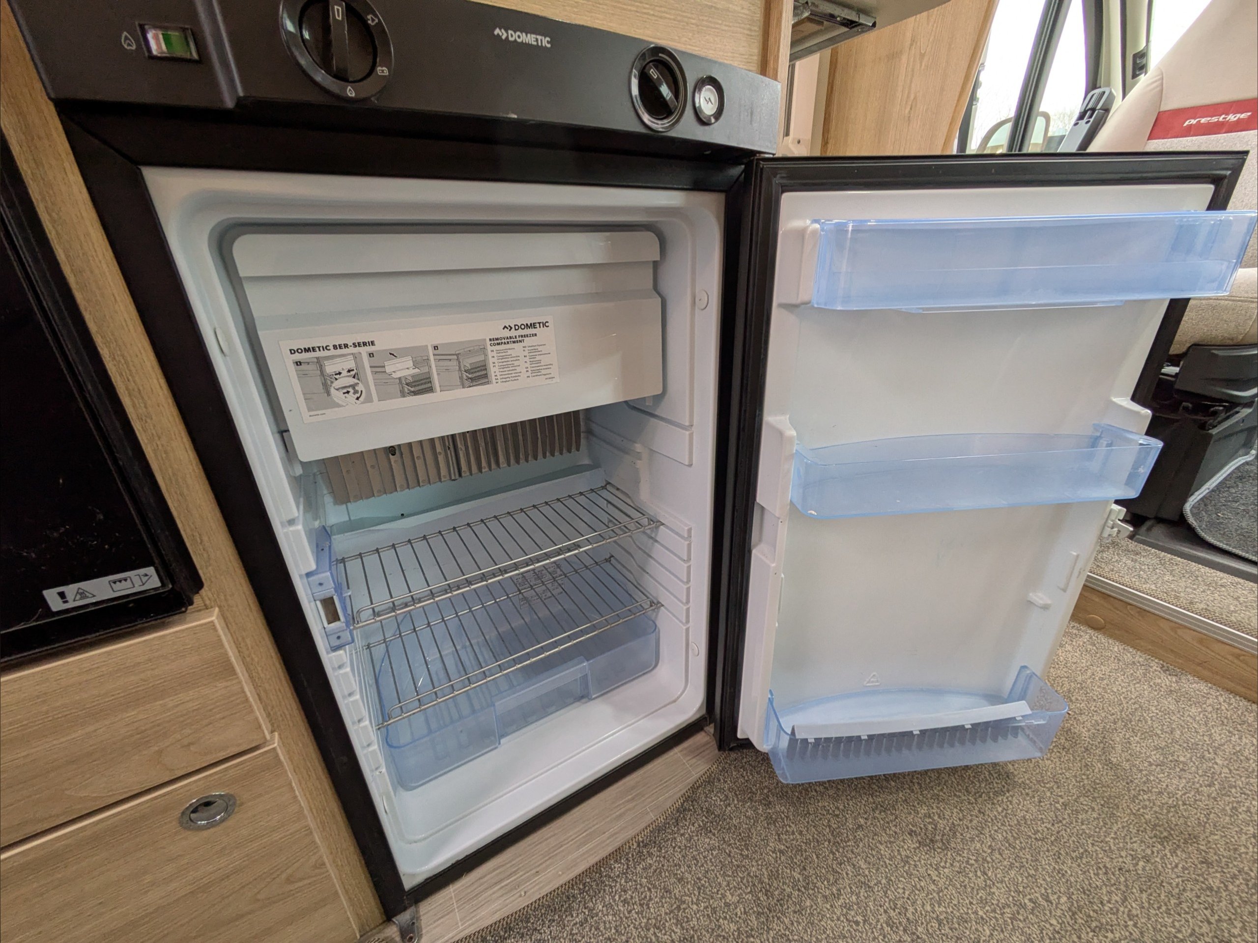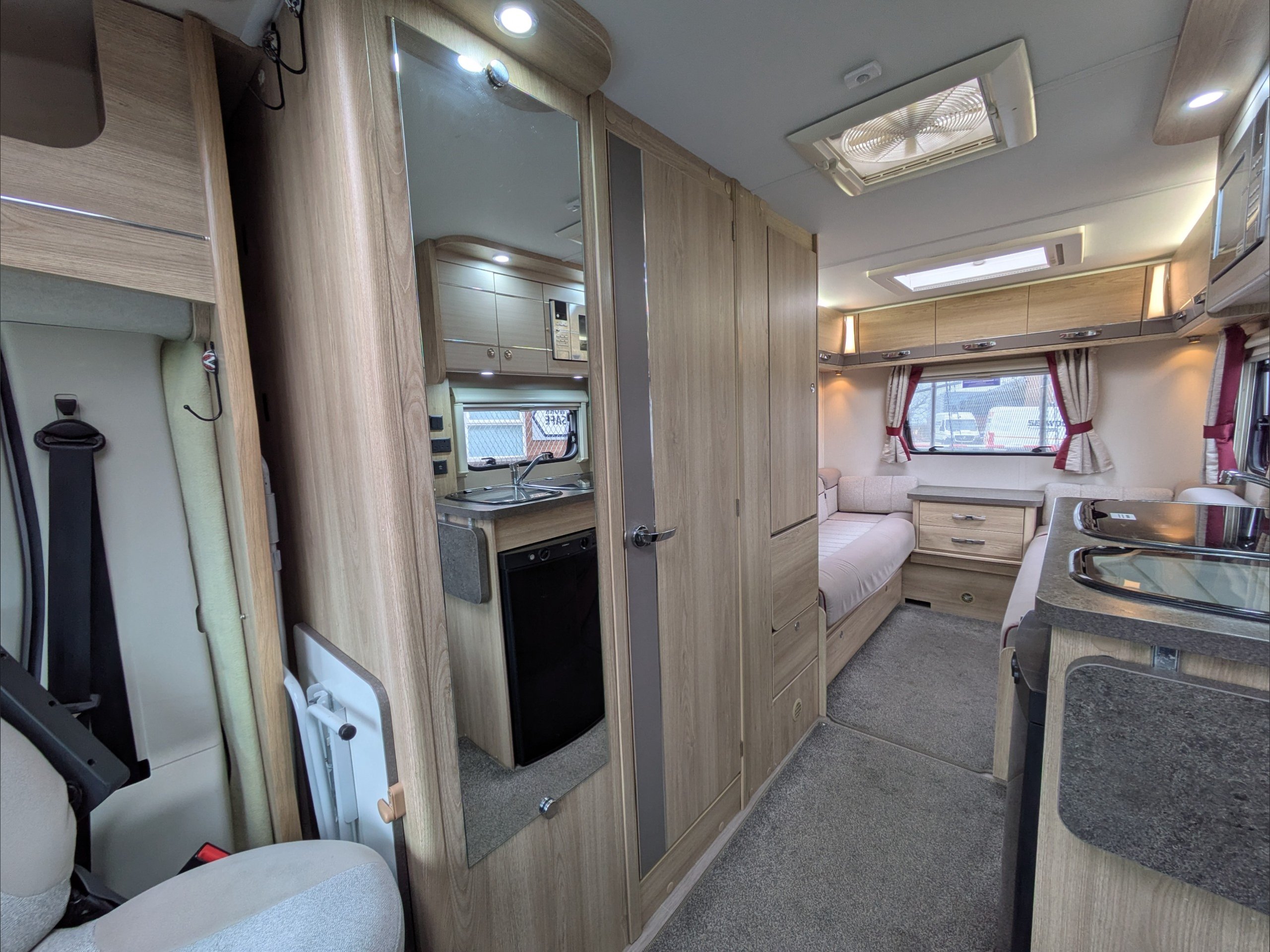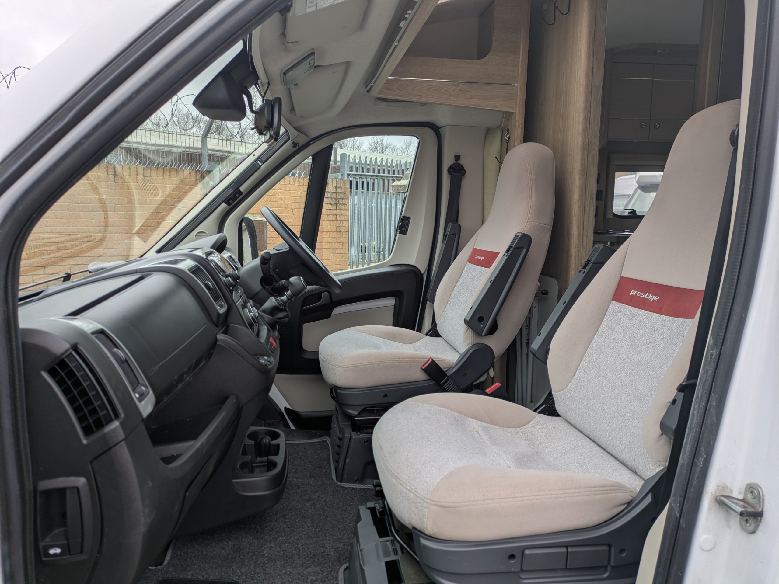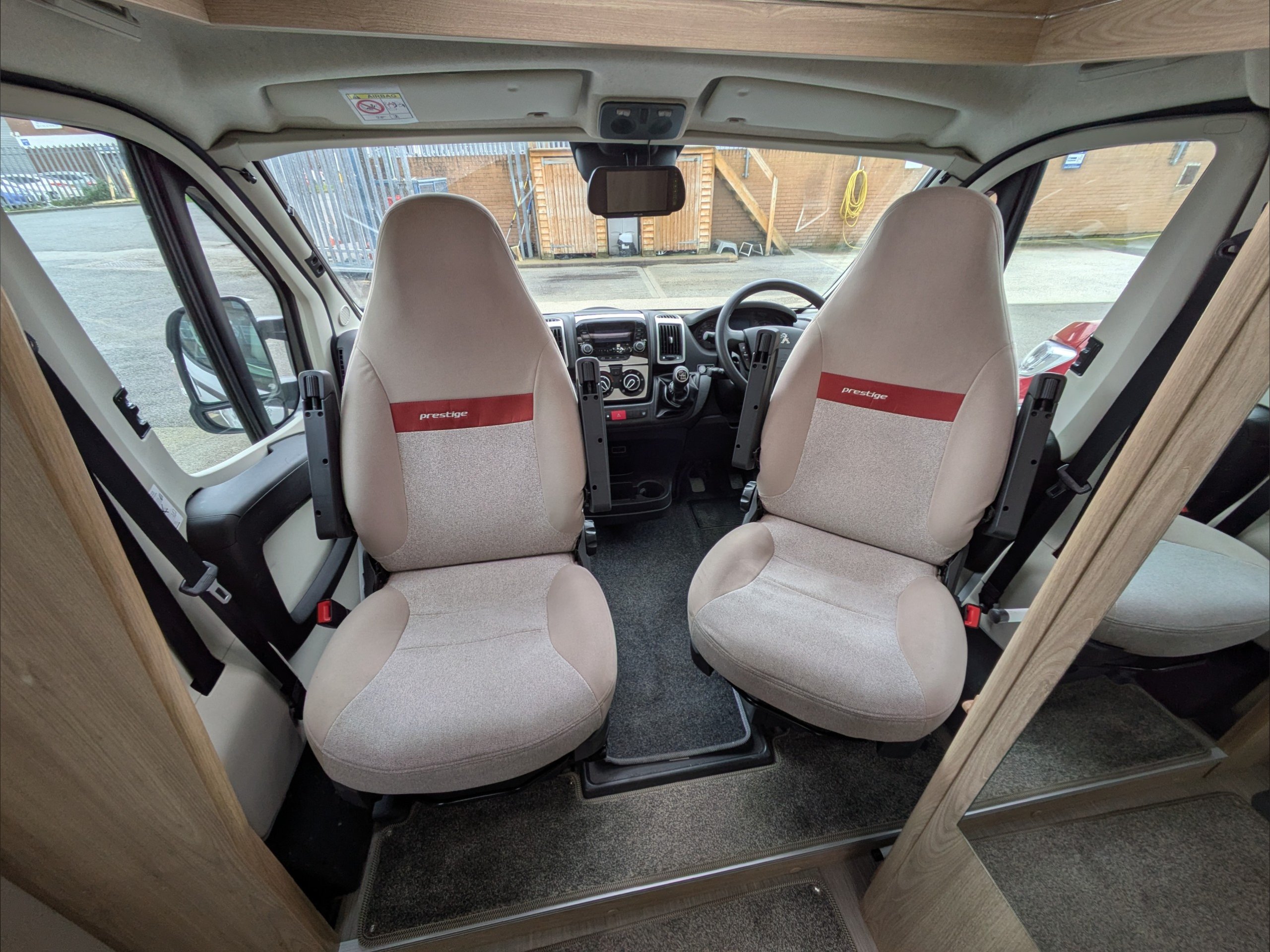 Elddis Prestige 120. 2 Berth, 2 Seatbelts. Standard Driving License Applicable. ULEZ Compliant. Situated at the rear, the versatile lounge can convert benches to U shaped, and converts to either twin single beds or a large double. The kitchen comes with extending counter tops, hob, sink, 3 way fridge, intergrill, and microwave. The washroom comes with shower, wash basin, and cassette toilet. Available at the Southern Motorhome Centre now.