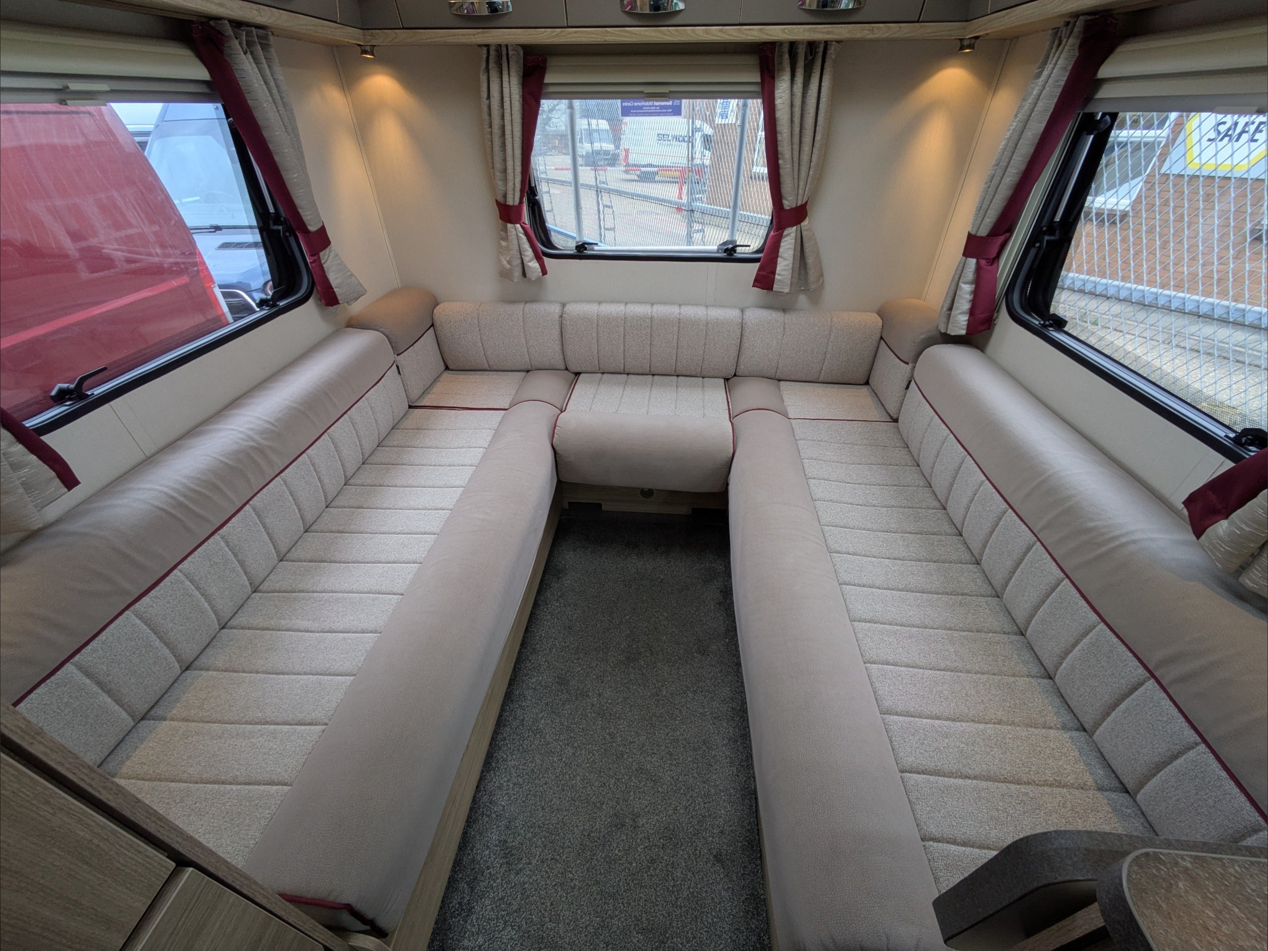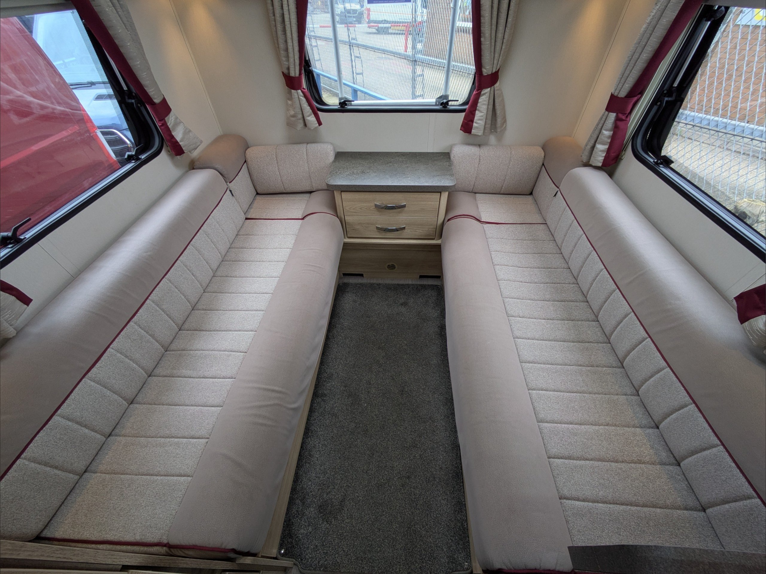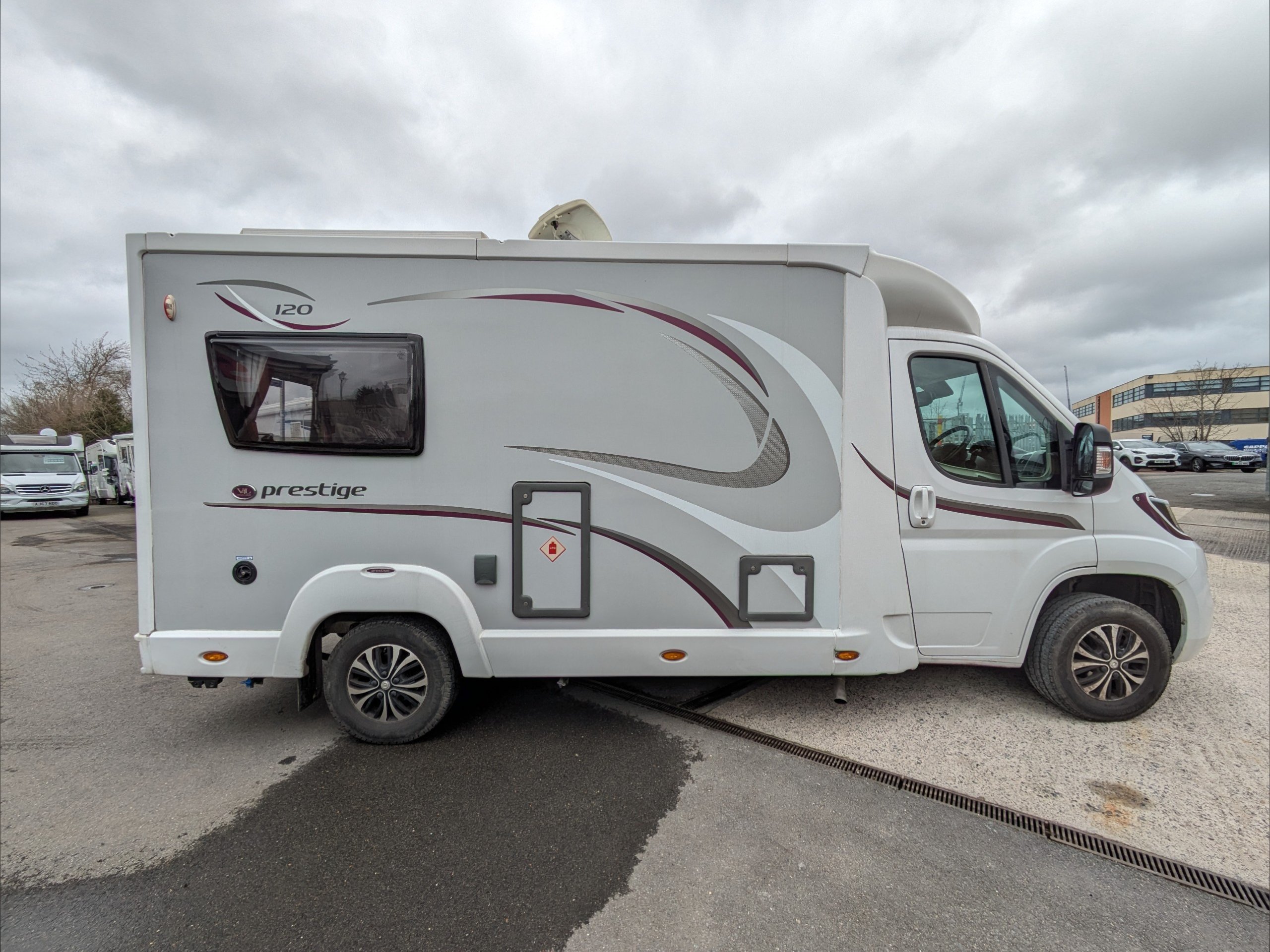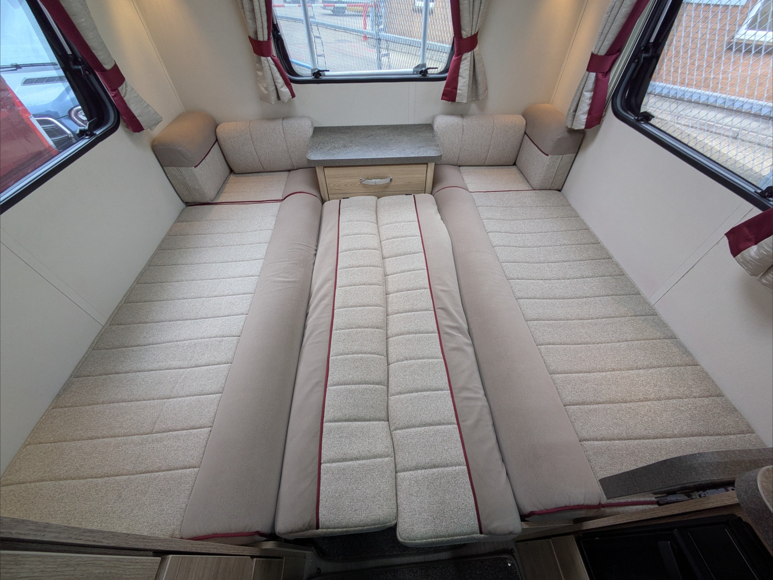Elddis Prestige 120. 2 Berth, 2 Seatbelts. Standard Driving License Applicable. ULEZ Compliant. Situated at the rear, the versatile lounge can convert benches to U shaped, and converts to either twin single beds or a large double. The kitchen comes with extending counter tops, hob, sink, 3 way fridge, intergrill, and microwave. The washroom comes with shower, wash basin, and cassette toilet. Available at the Southern Motorhome Centre now.