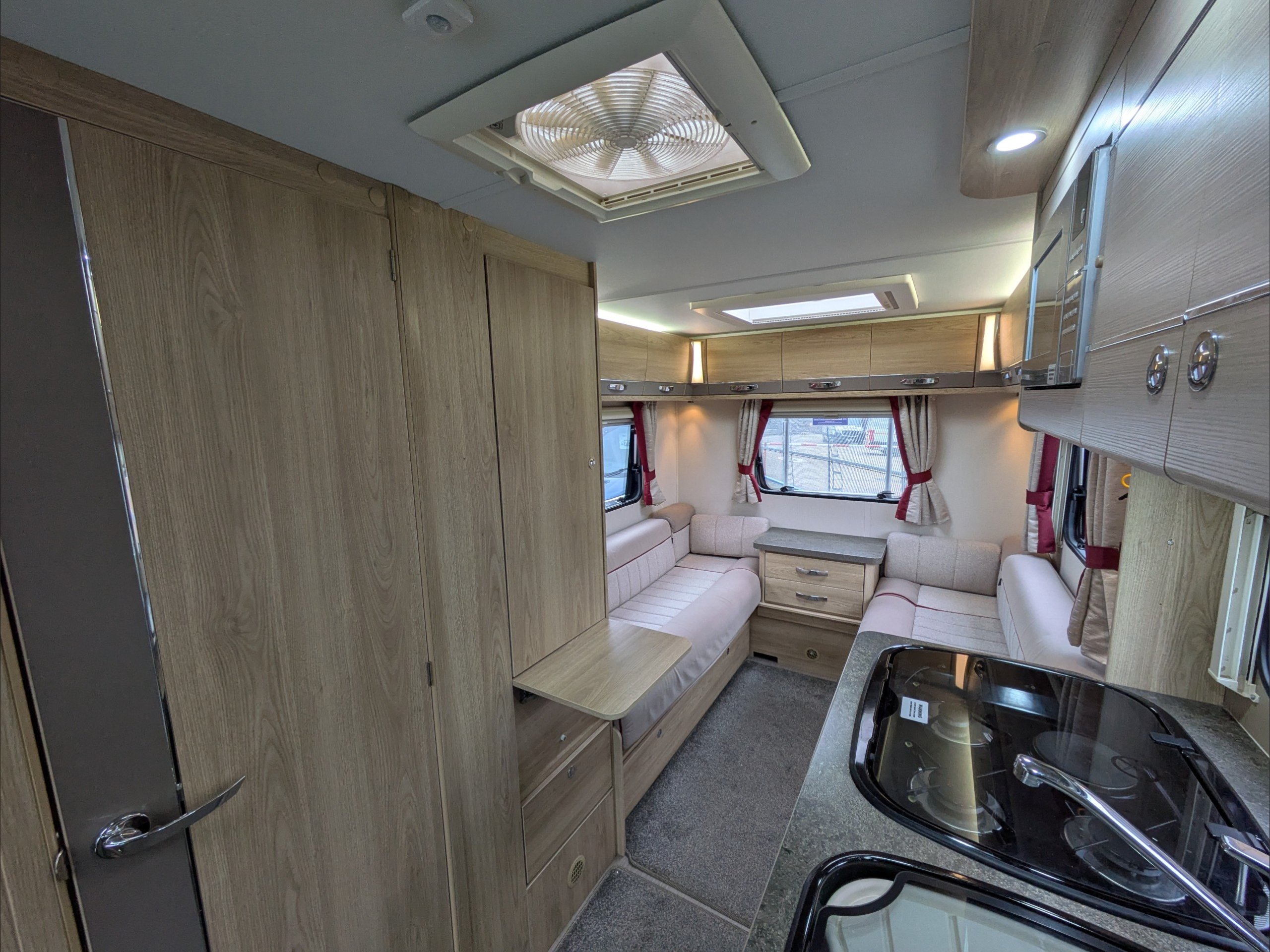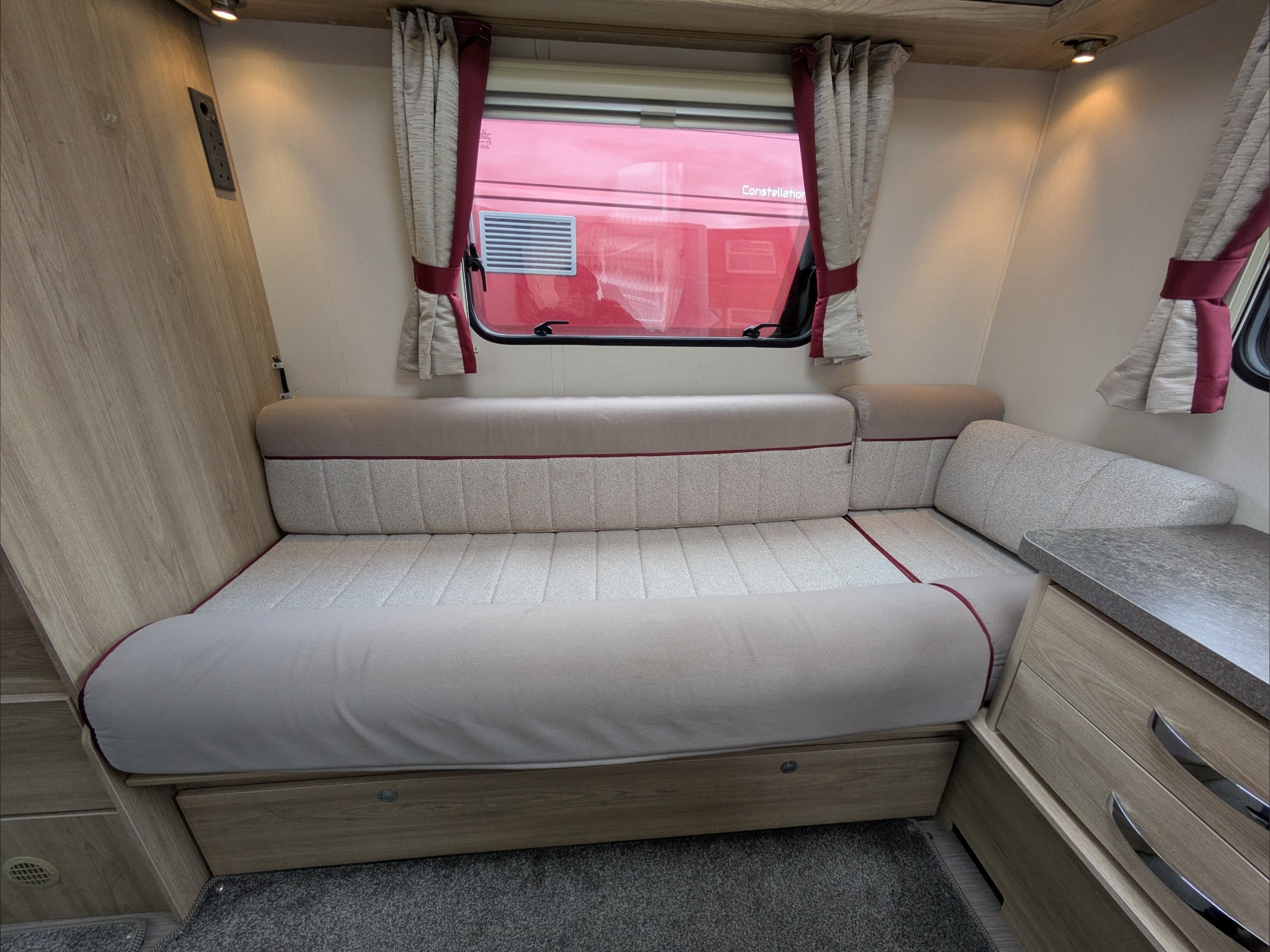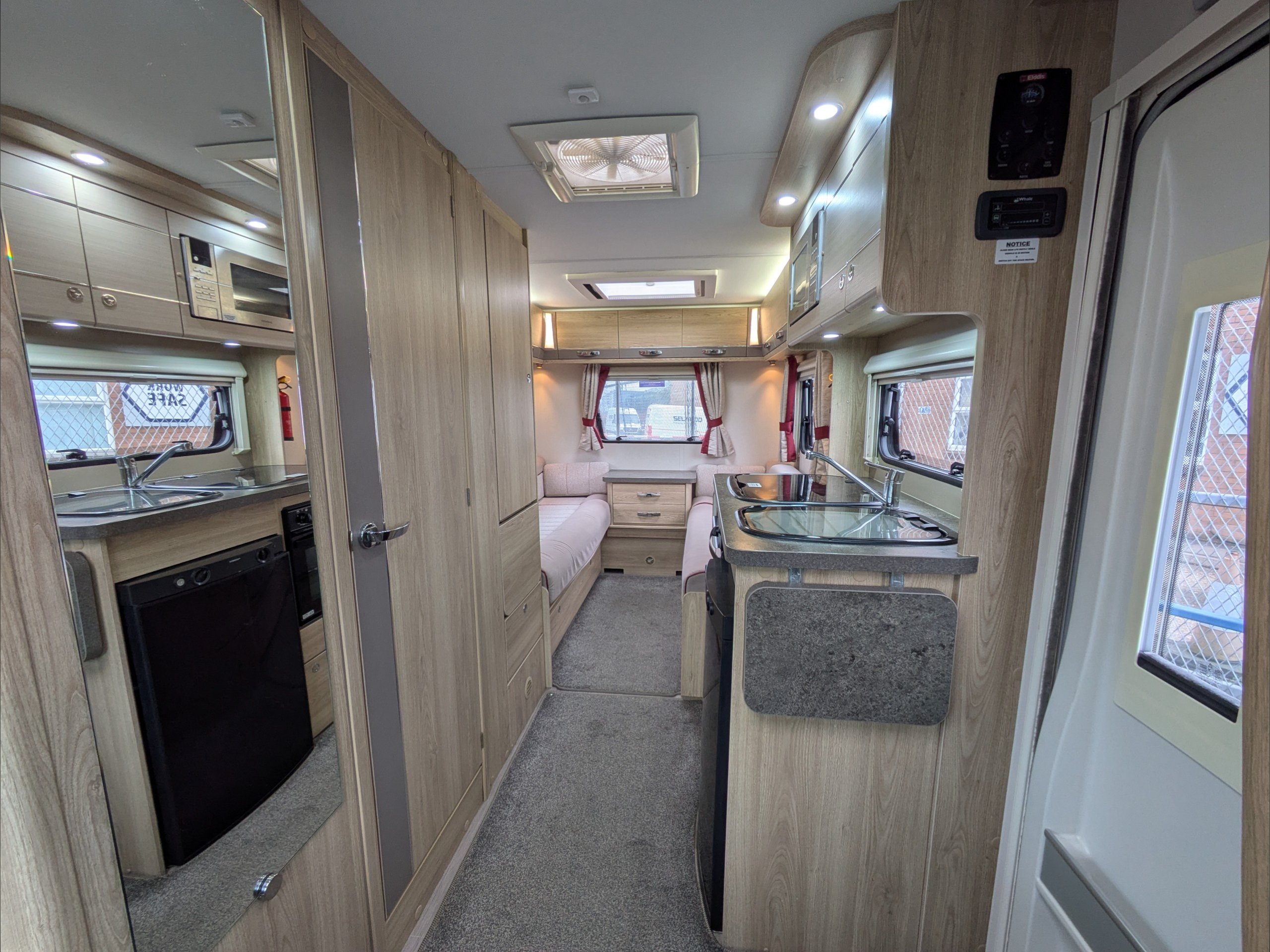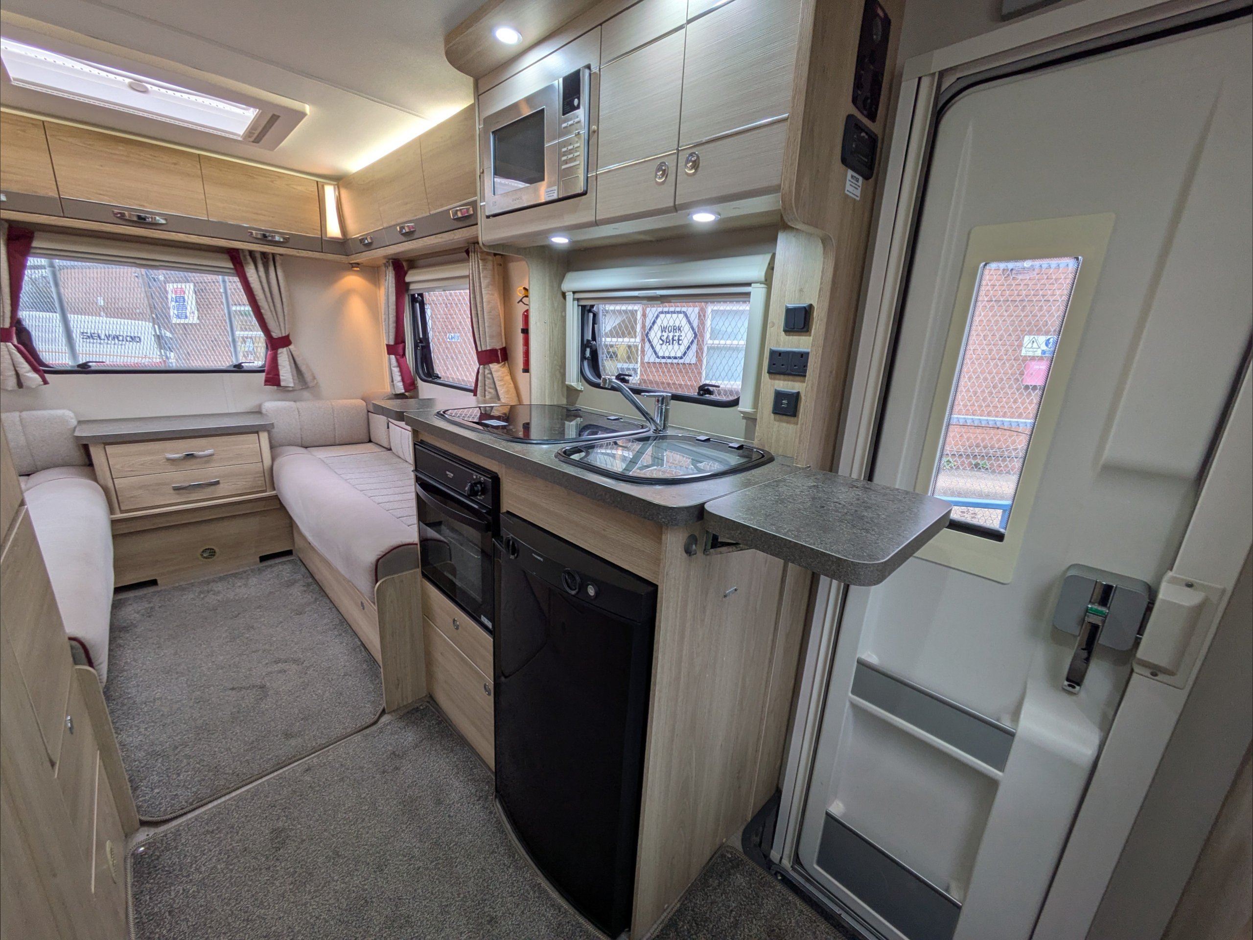 Elddis Prestige 120. 2 Berth, 2 Seatbelts. Standard Driving License Applicable. ULEZ Compliant. Situated at the rear, the versatile lounge can convert benches to U shaped, and converts to either twin single beds or a large double. The kitchen comes with extending counter tops, hob, sink, 3 way fridge, intergrill, and microwave. The washroom comes with shower, wash basin, and cassette toilet. Available at the Southern Motorhome Centre now.
