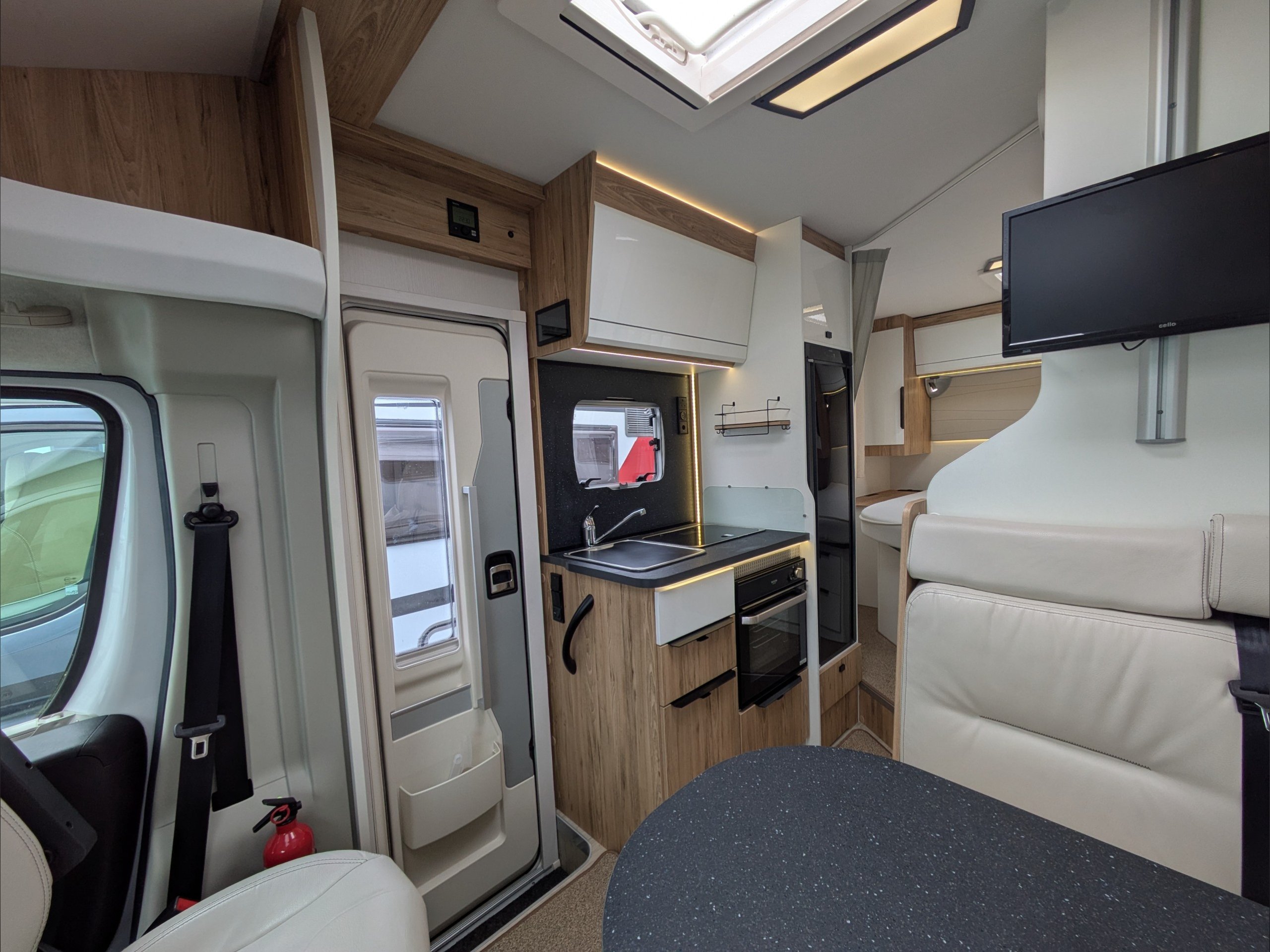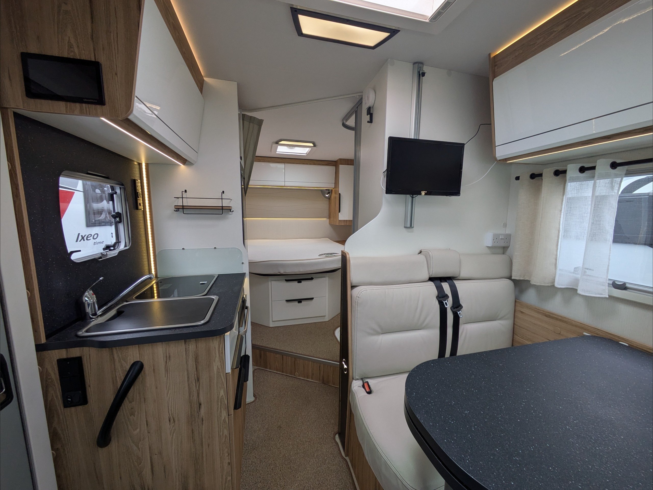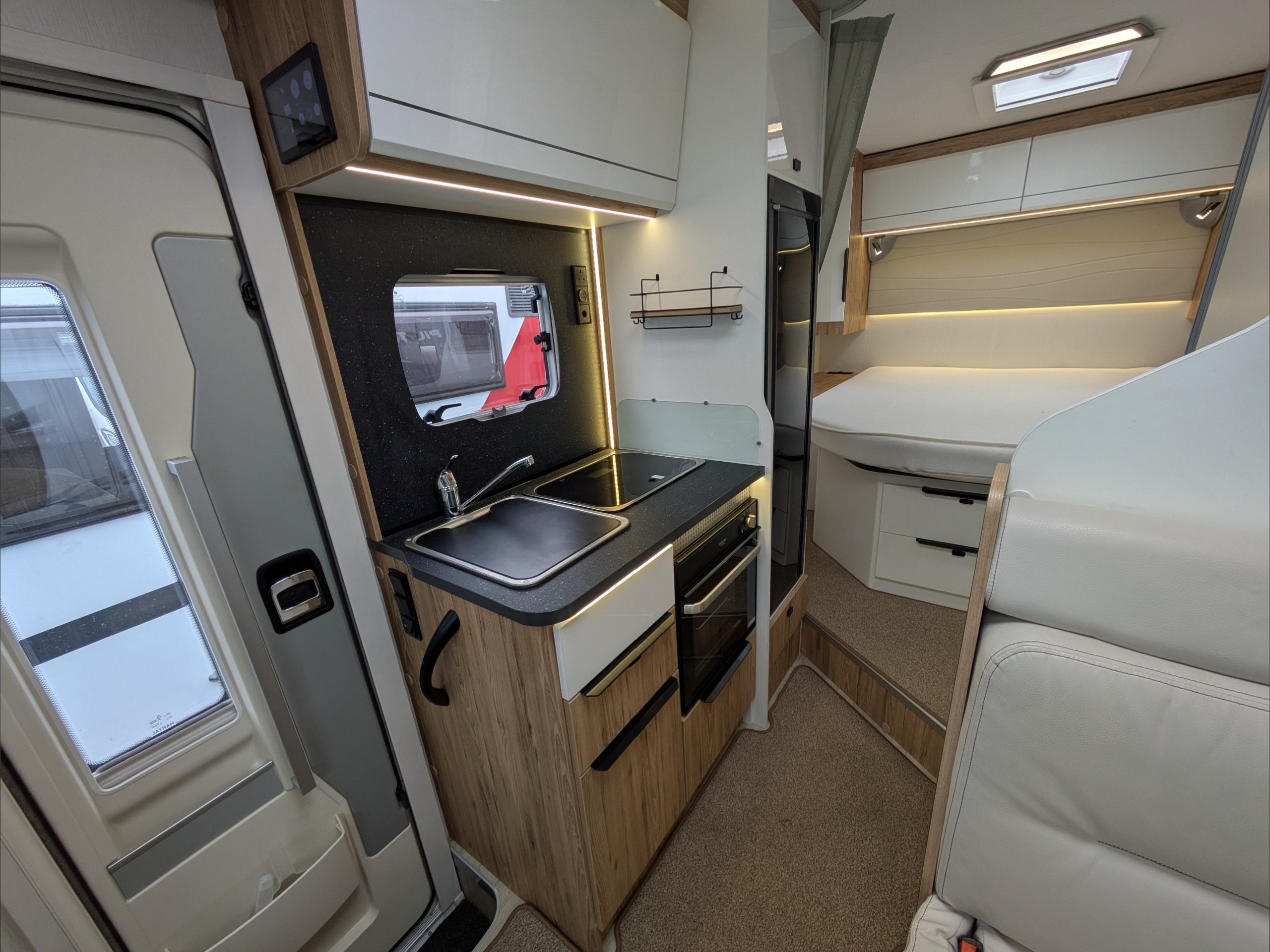 Pilote P650C Evidence. 3 Berth, 4 Seatbelts. ULEZ Compliant. Situated at the front, the dinette lounge can seat 4 people with the cab seats swiveled and converts to a single bed. Situated at the rear is a fixed island bed with storage underneath. The kitchen comes with a large 3 way fridge, hob, sink, and intergrill. The washroom comes with hand basin, cassette toilet, and separate shower. Available at the Southern Motorhome Centre now.