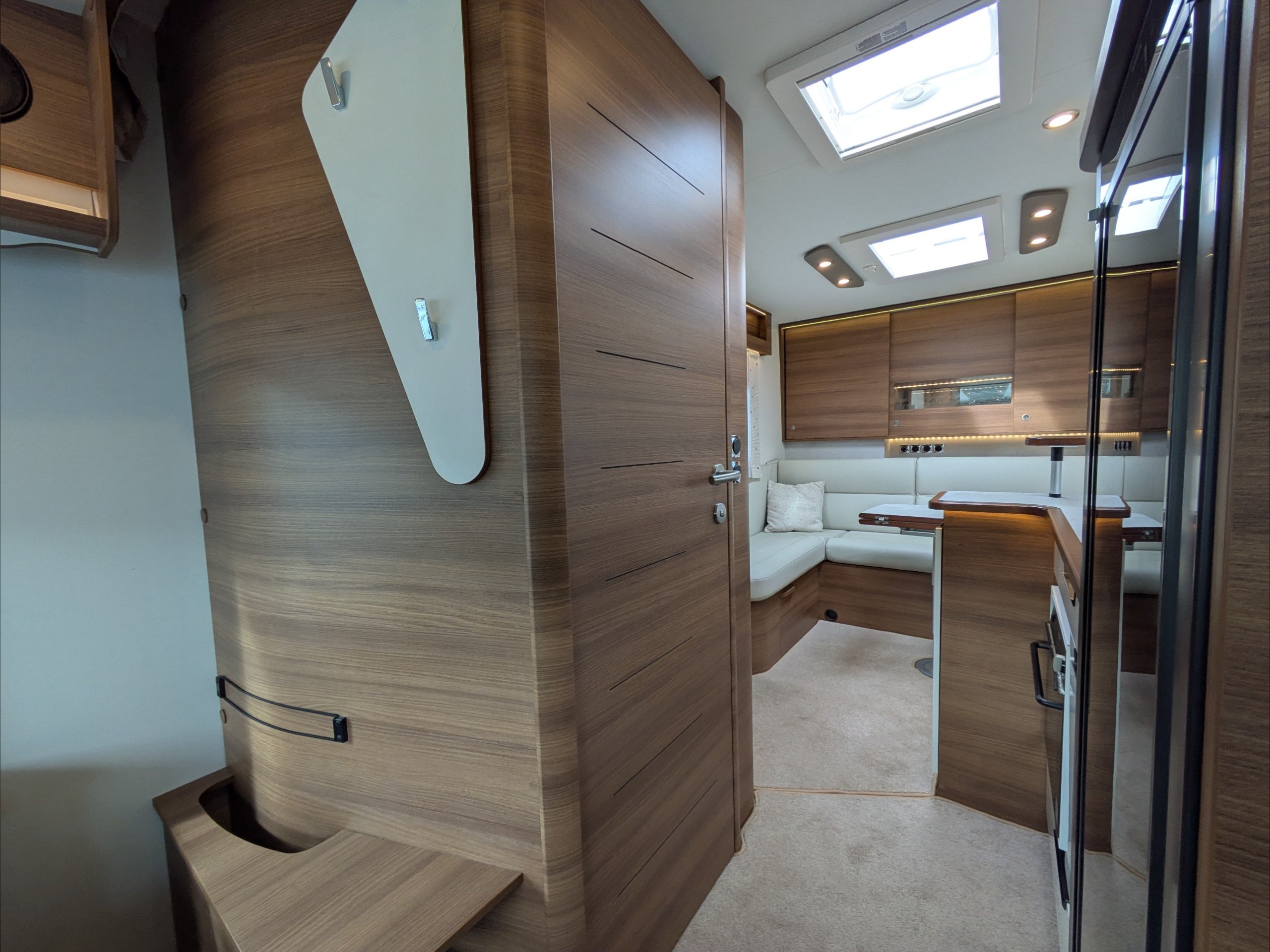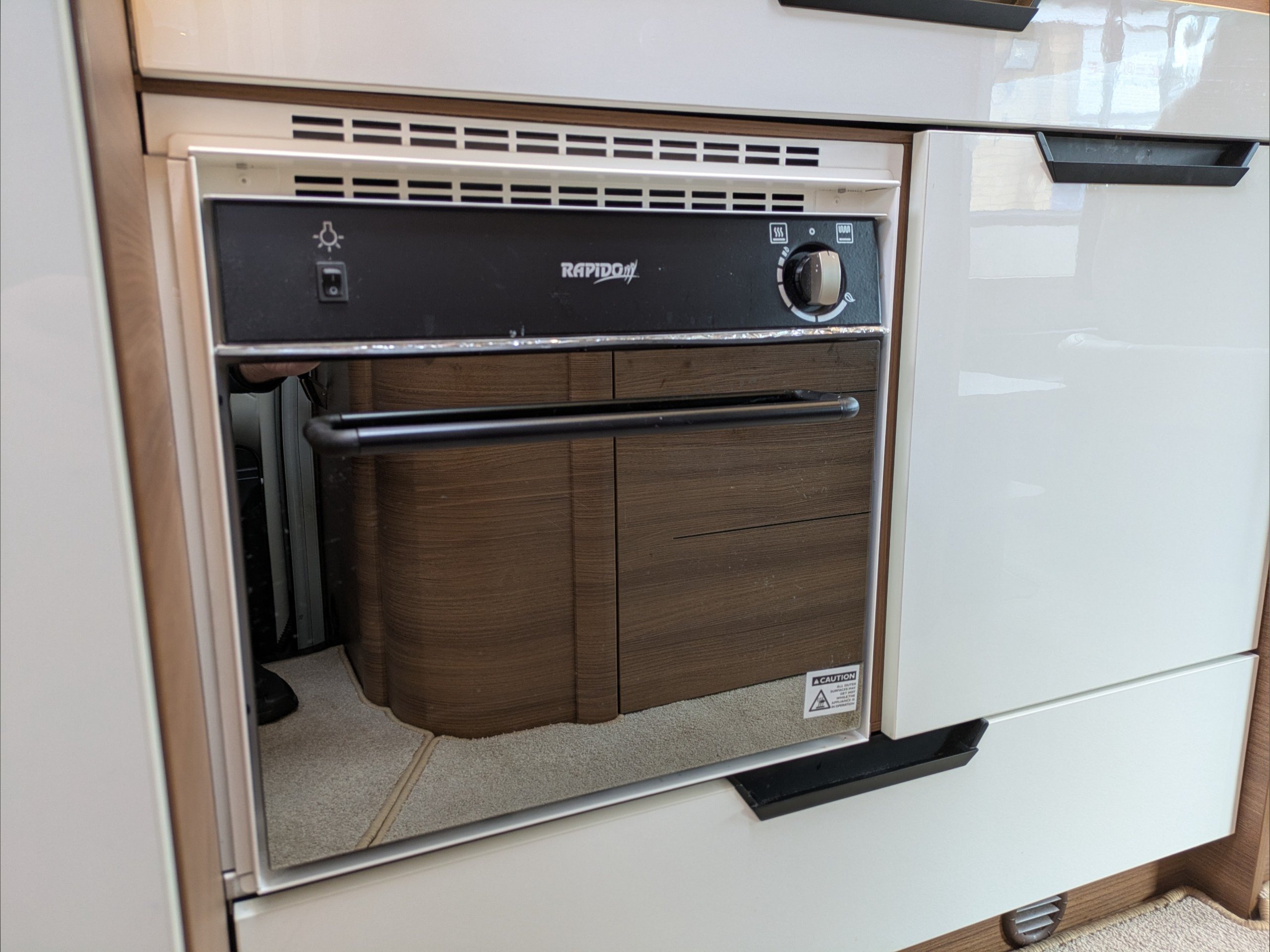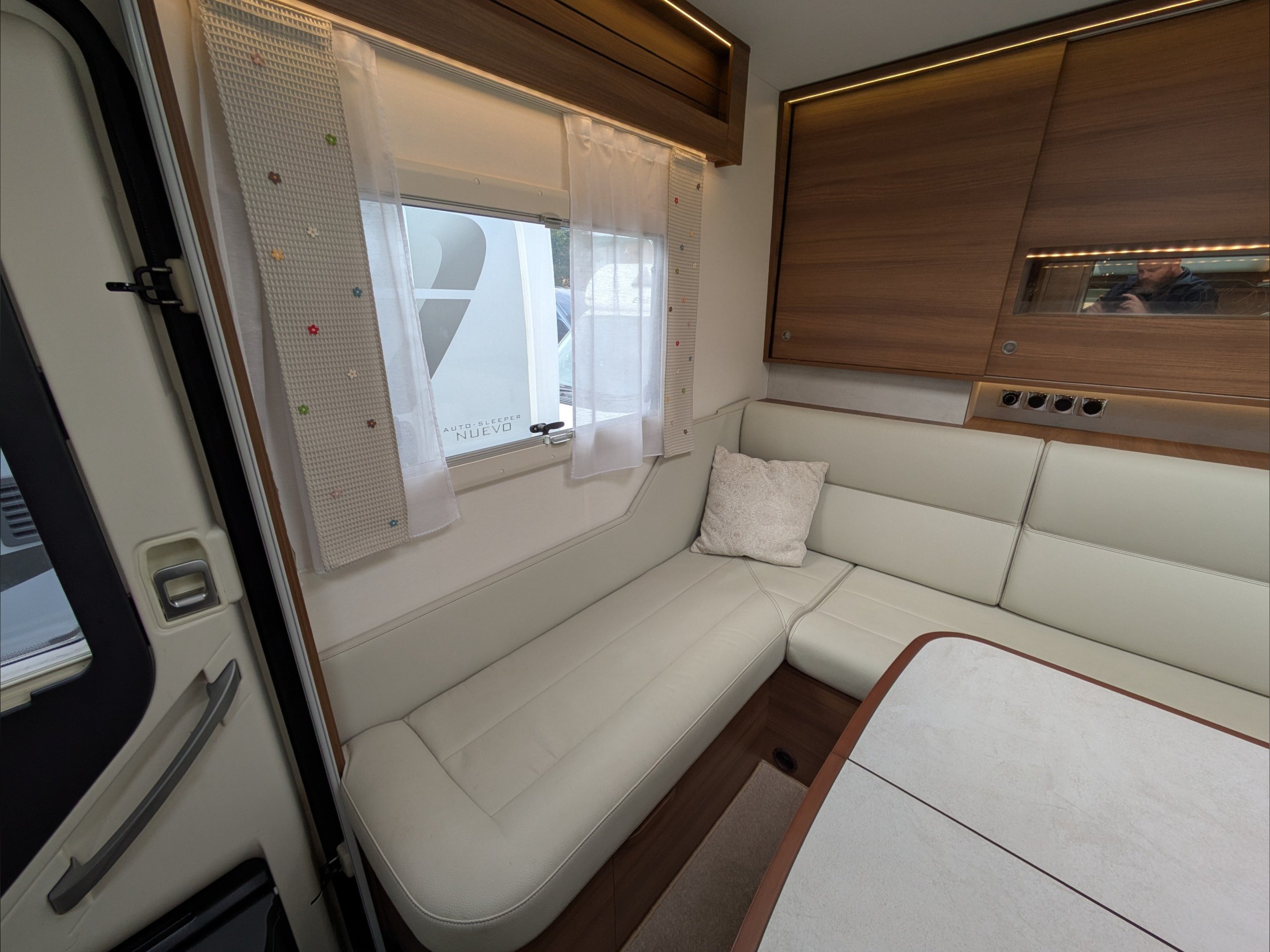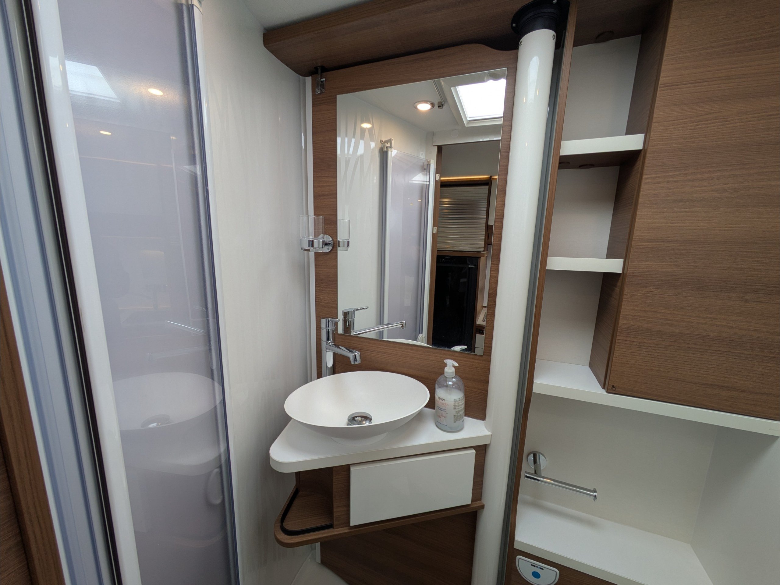 Rapido 854F. 4 Berth, 4 Seatbelts. C1 License Required. ULEZ Compliant. Situated at the rear, the U Shaped lounge can seat 6 people and converts to a double bed. Over the cab is a drop down double bed. The kitchen comes with intergrill, hob, sink, 3 way fridge, and extractor fan. The washroom comes with cassette toilet, wash basin, and swing wall separate shower. Available at the Southern Motorhome Centre now.
