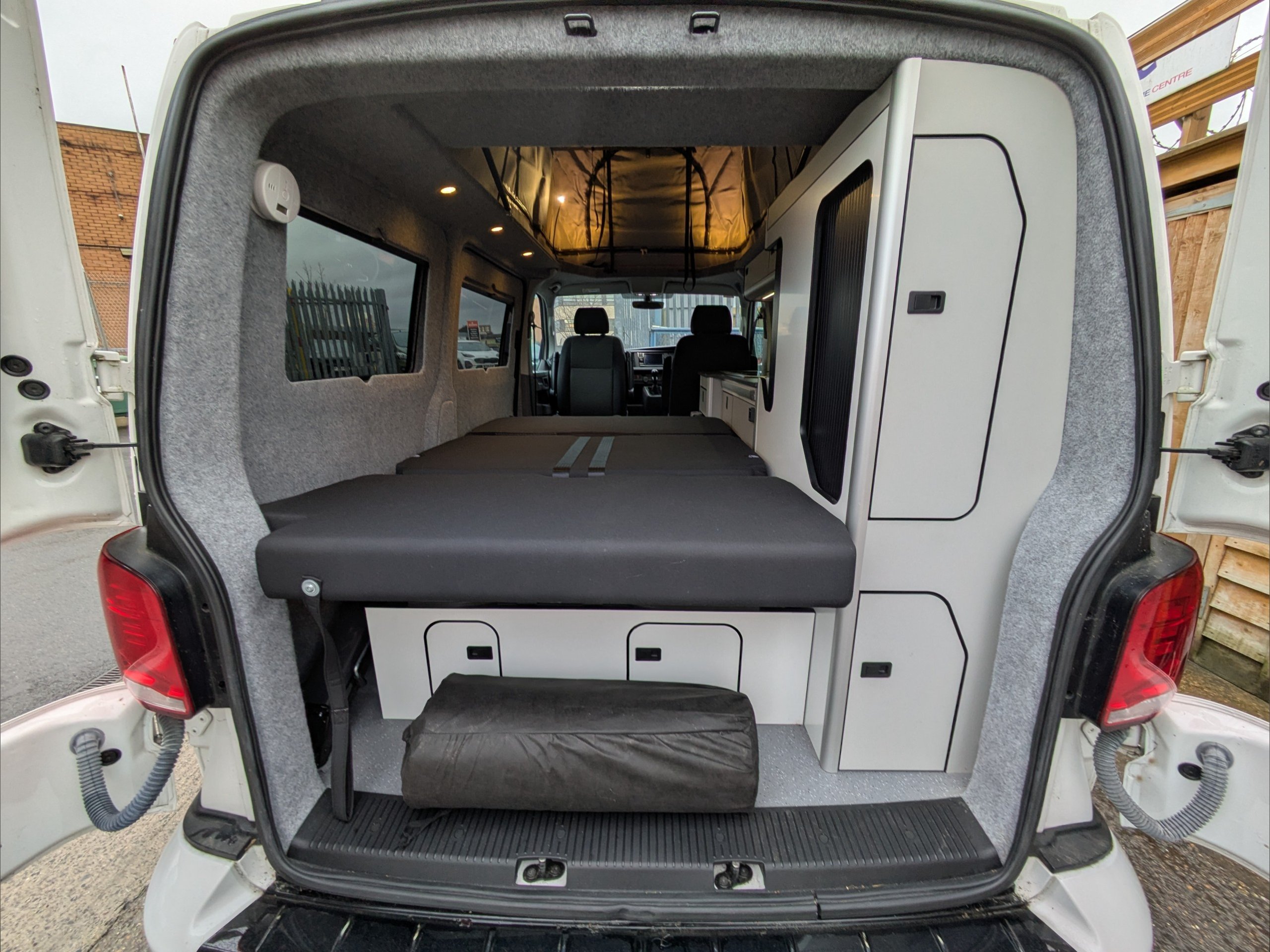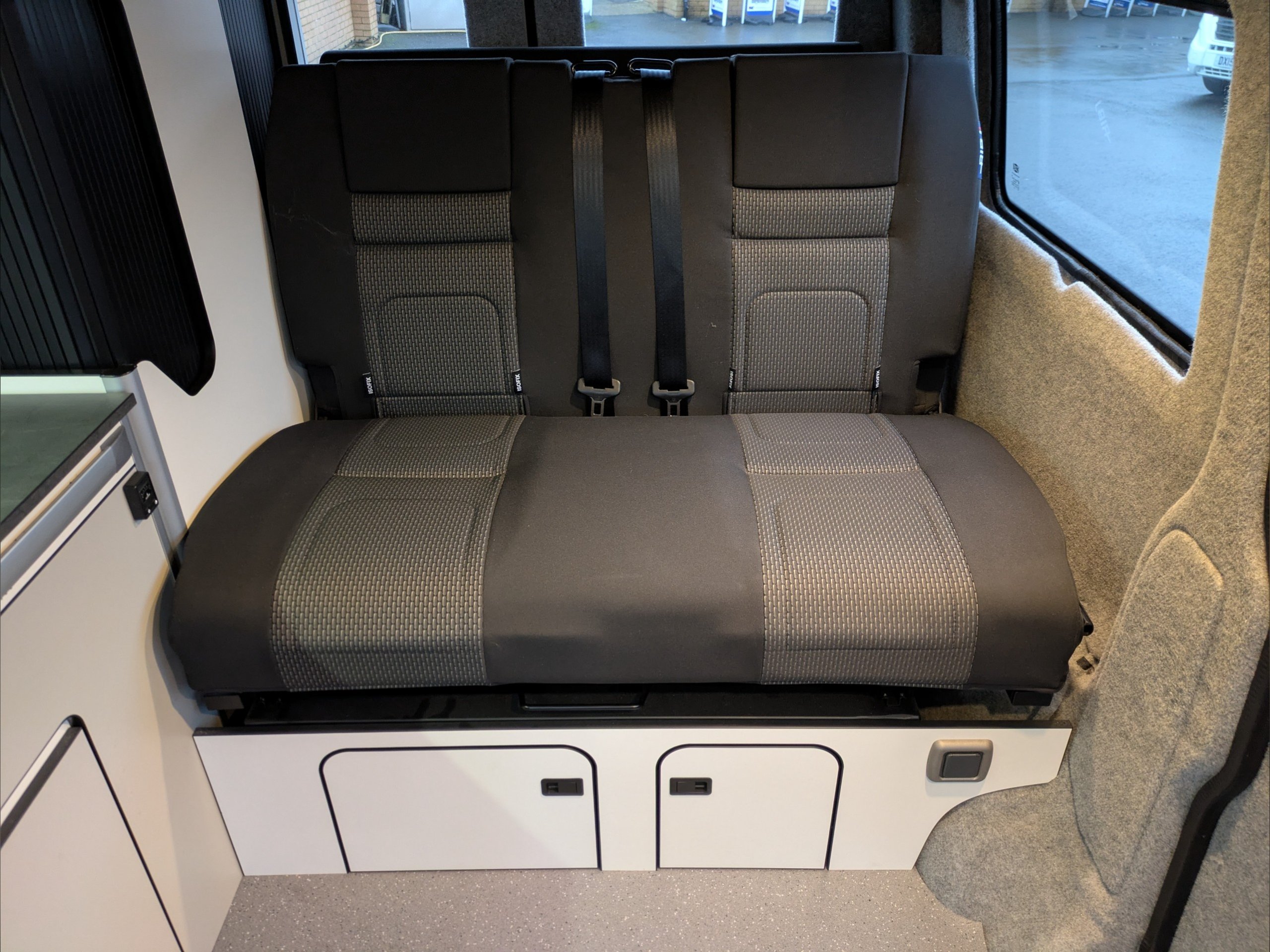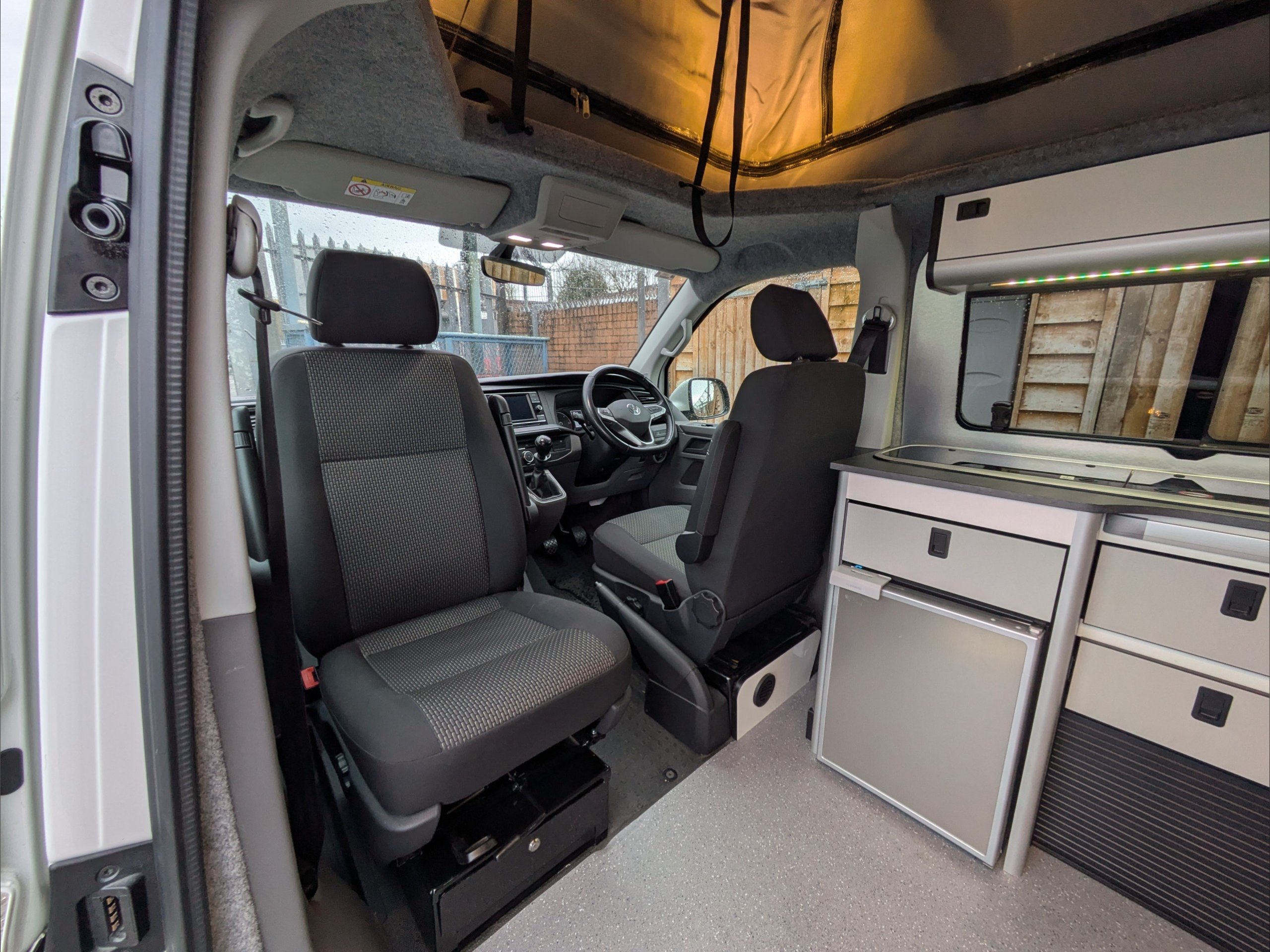 Staycation Coastline. 4 Berth, 4 Seatbelts. Standard Driving License Applicable. ULEZ Compliant. Situated in the bulk of the inside of the vehicle, the rear RIB seat of the lounge converts to a double bed. Above the lounge in the pop top is a second double bed which can fold up out of the way. The kitchen comes with fridge, sink, and hob. Available at the Southern Motorhome Centre now.