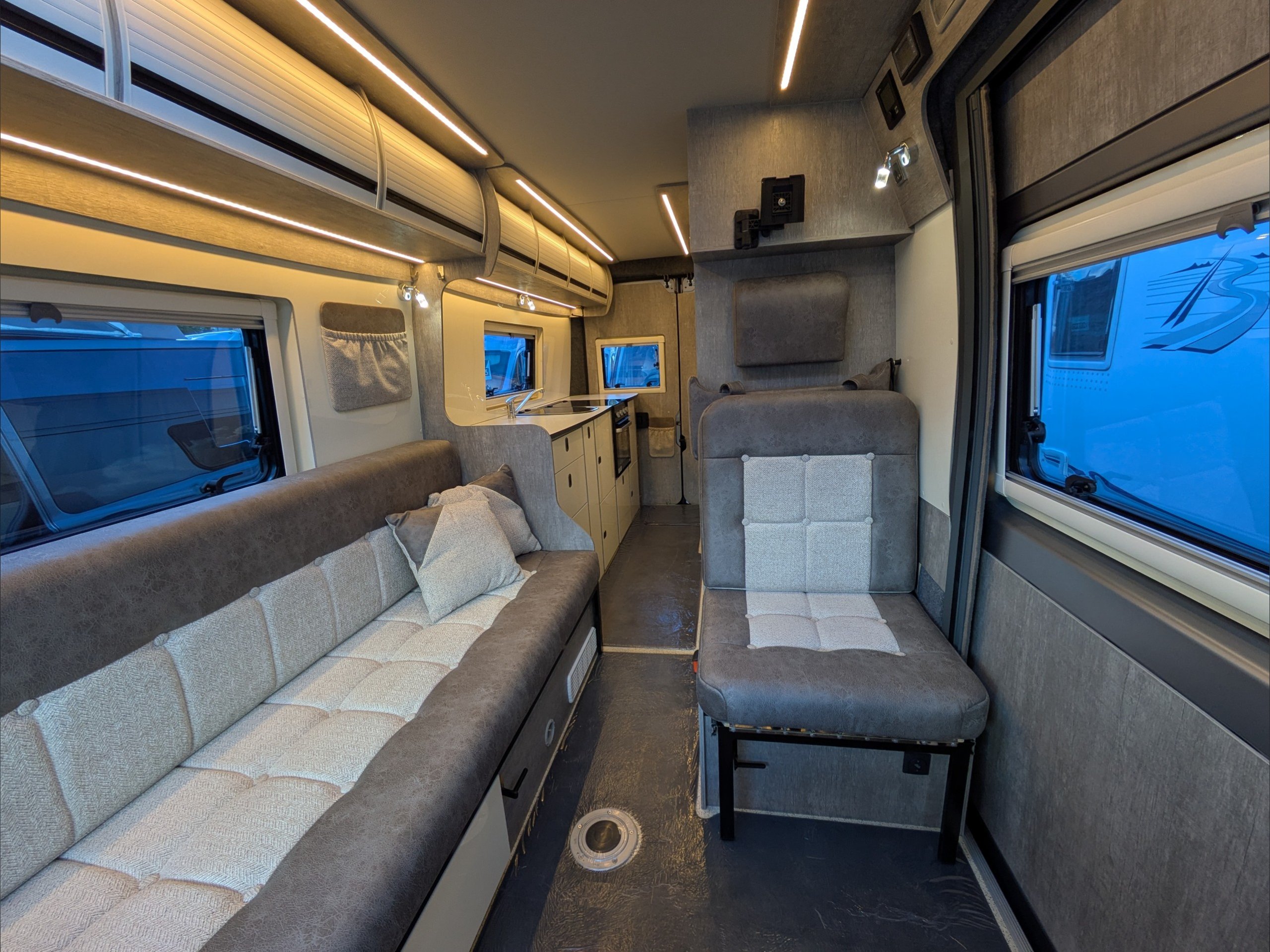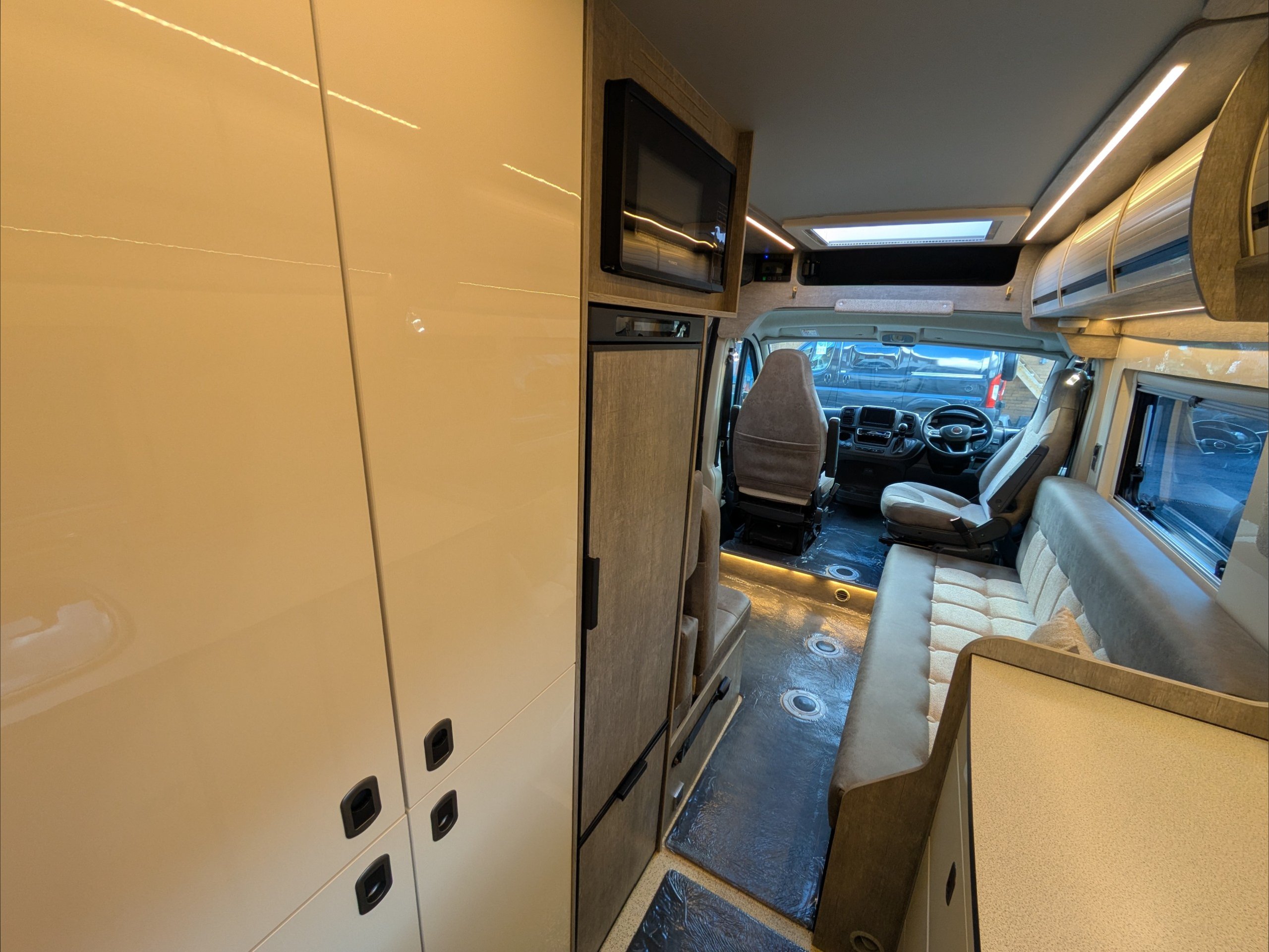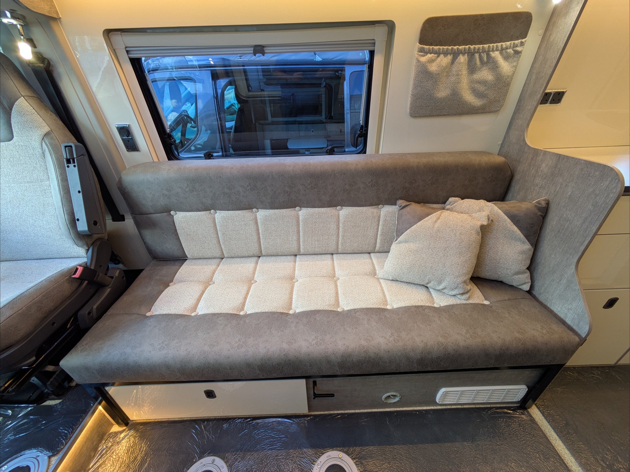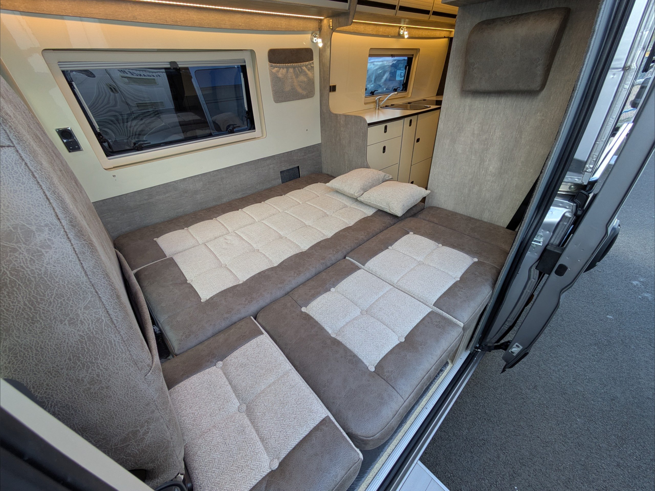 WildAx Constellation 3. 2 Berth, 3 Seatbelt. Standard Driving License Applicable. ULEZ Compiant. Situated at the front, the lounge can seat 4 people and converts to either a large double bed or twin singles. The kitchen comes with 3 way fridge, sink, hob, microwave, and intergrill. The washroom comes with shower, cassette toilet, and wash basin. Available at the Southern Motorhome Centre now.