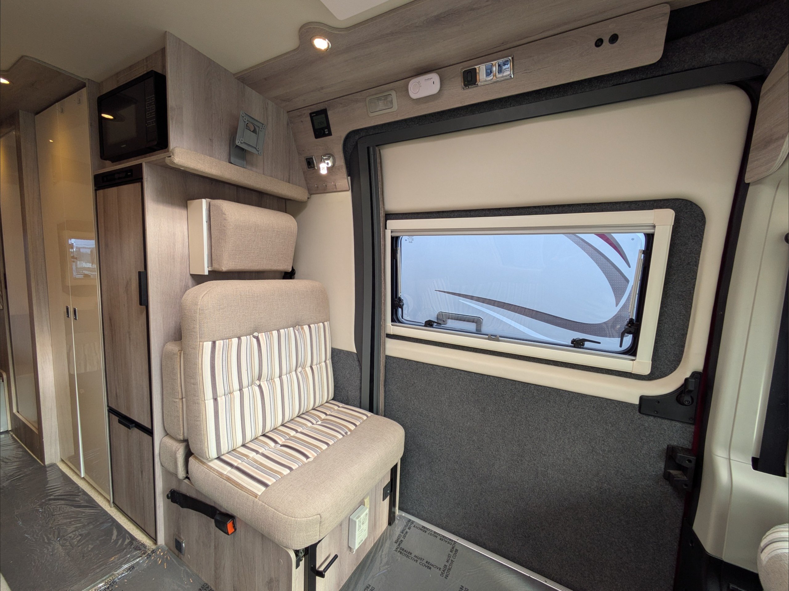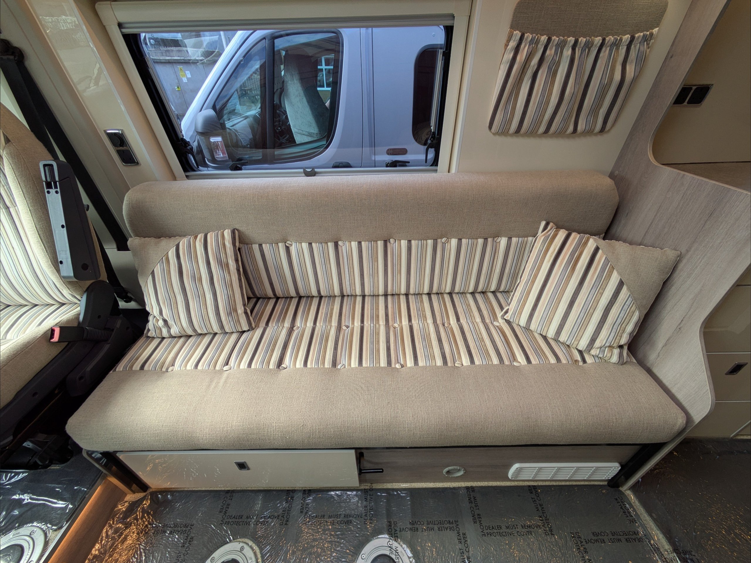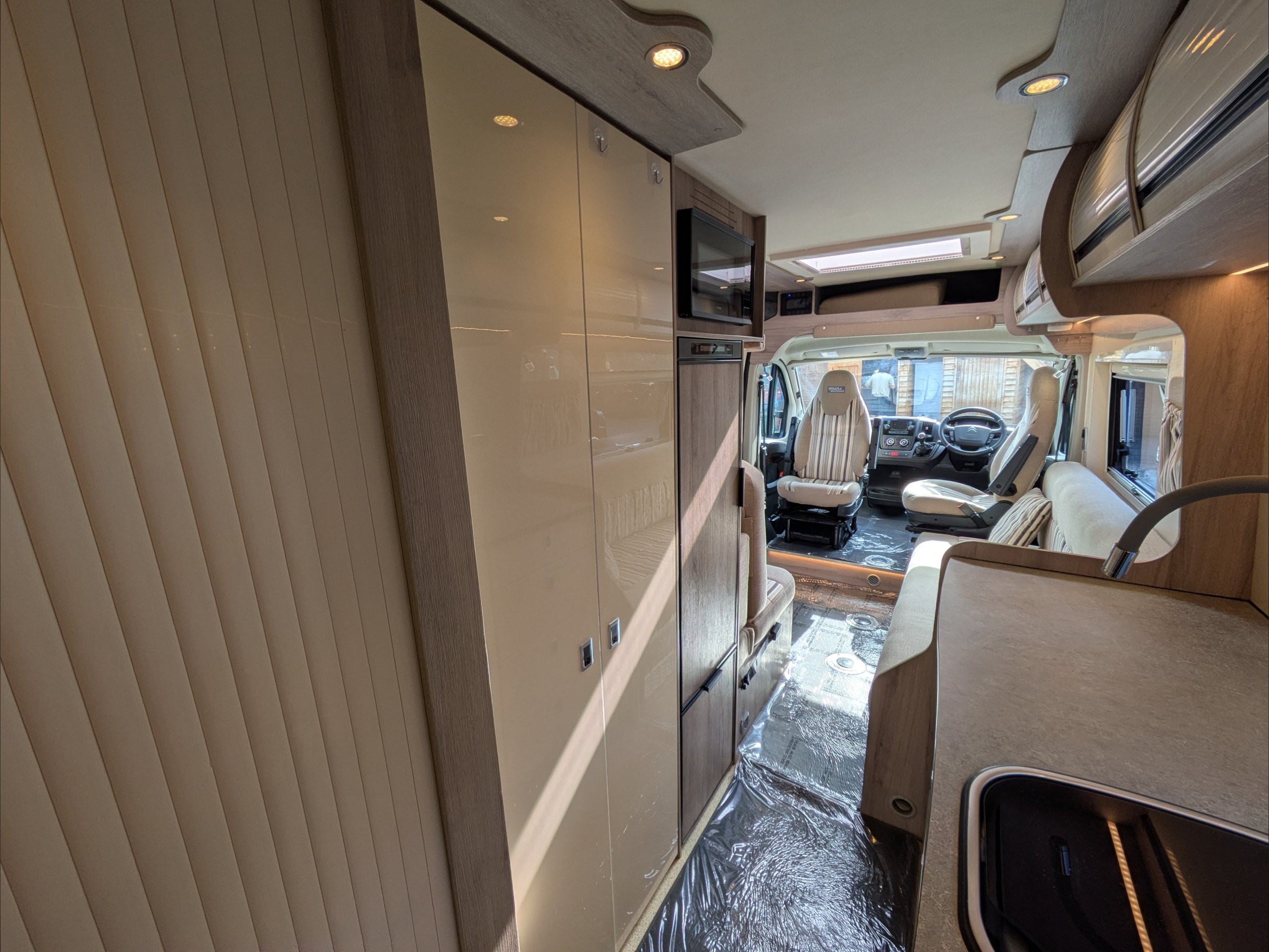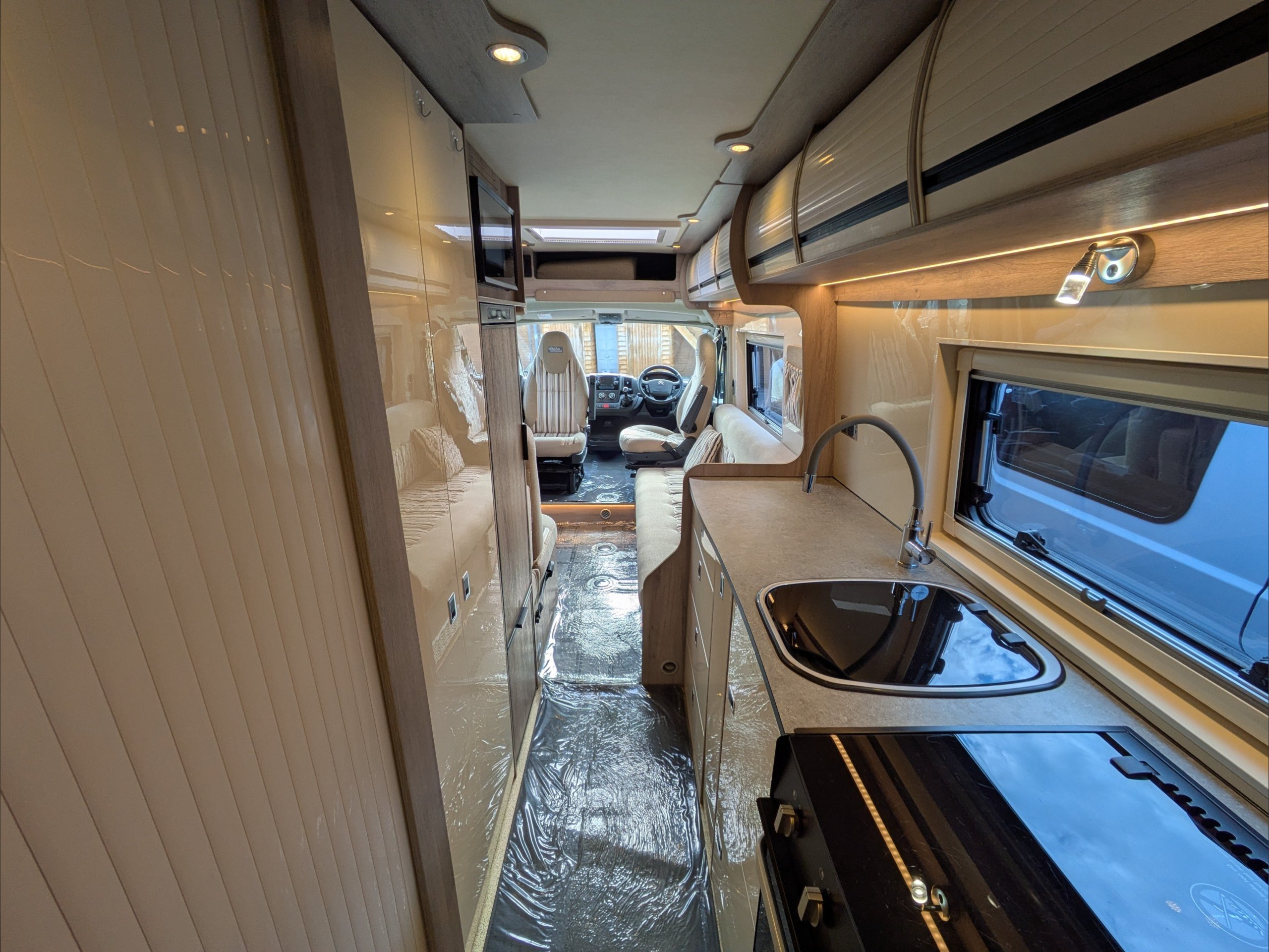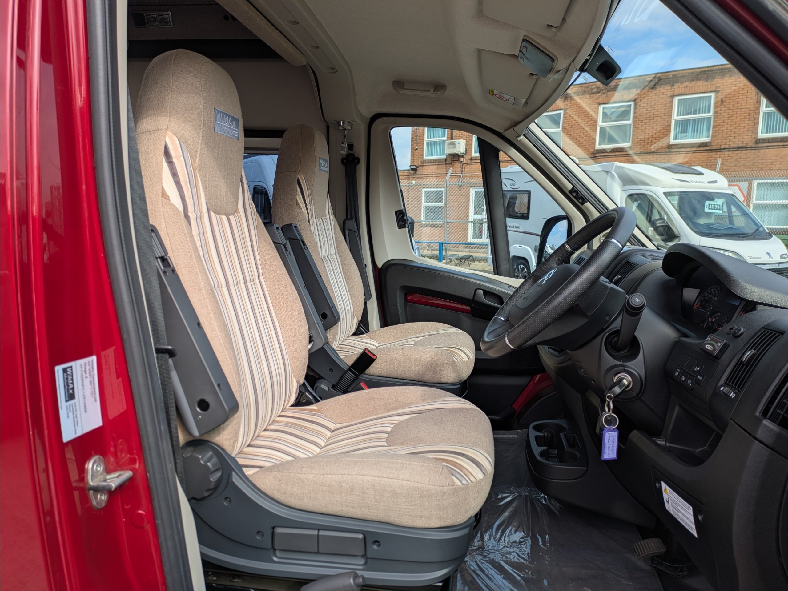 WildAx Constellation 3 XL. 2 Berth, 3 Seatbelt. Standard Driving License Applicable. ULEZ Compliant. Situated at the front, the lounge can seat 5 people with the cab seats swiveled, and can either be a large double bed or twin singles. The kitchen comes with sink, 3 way fridge, intergrill, hob, and microwave. The washroom comes with cassette toilet, wash basin, and shower. Available at the Southern Motorhome Centre now.