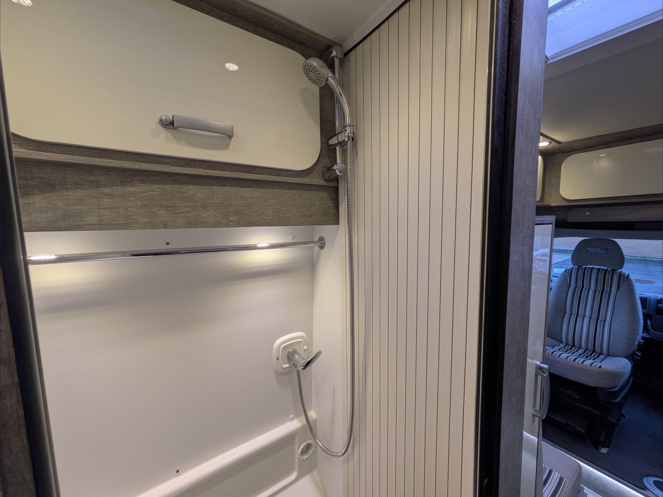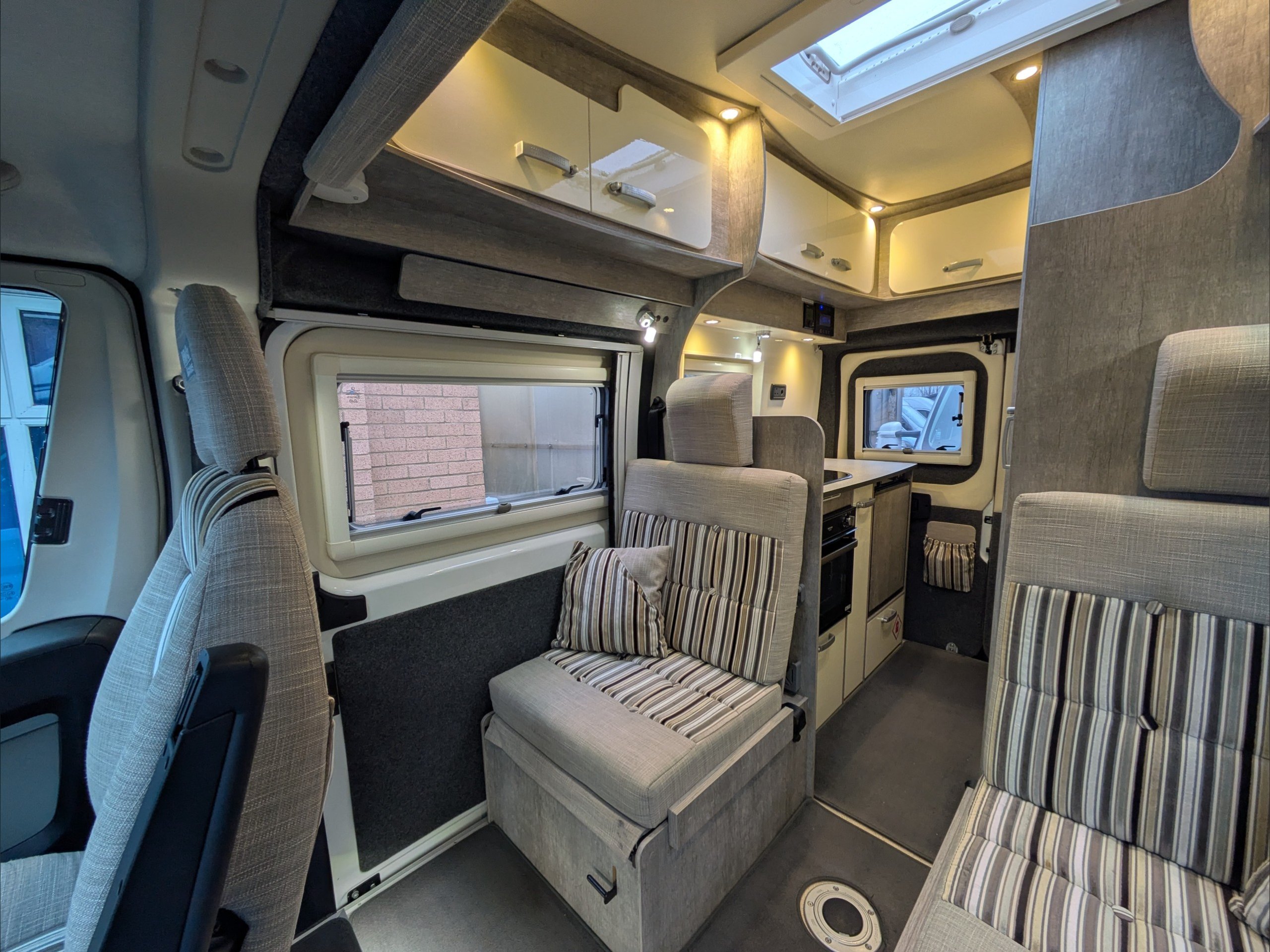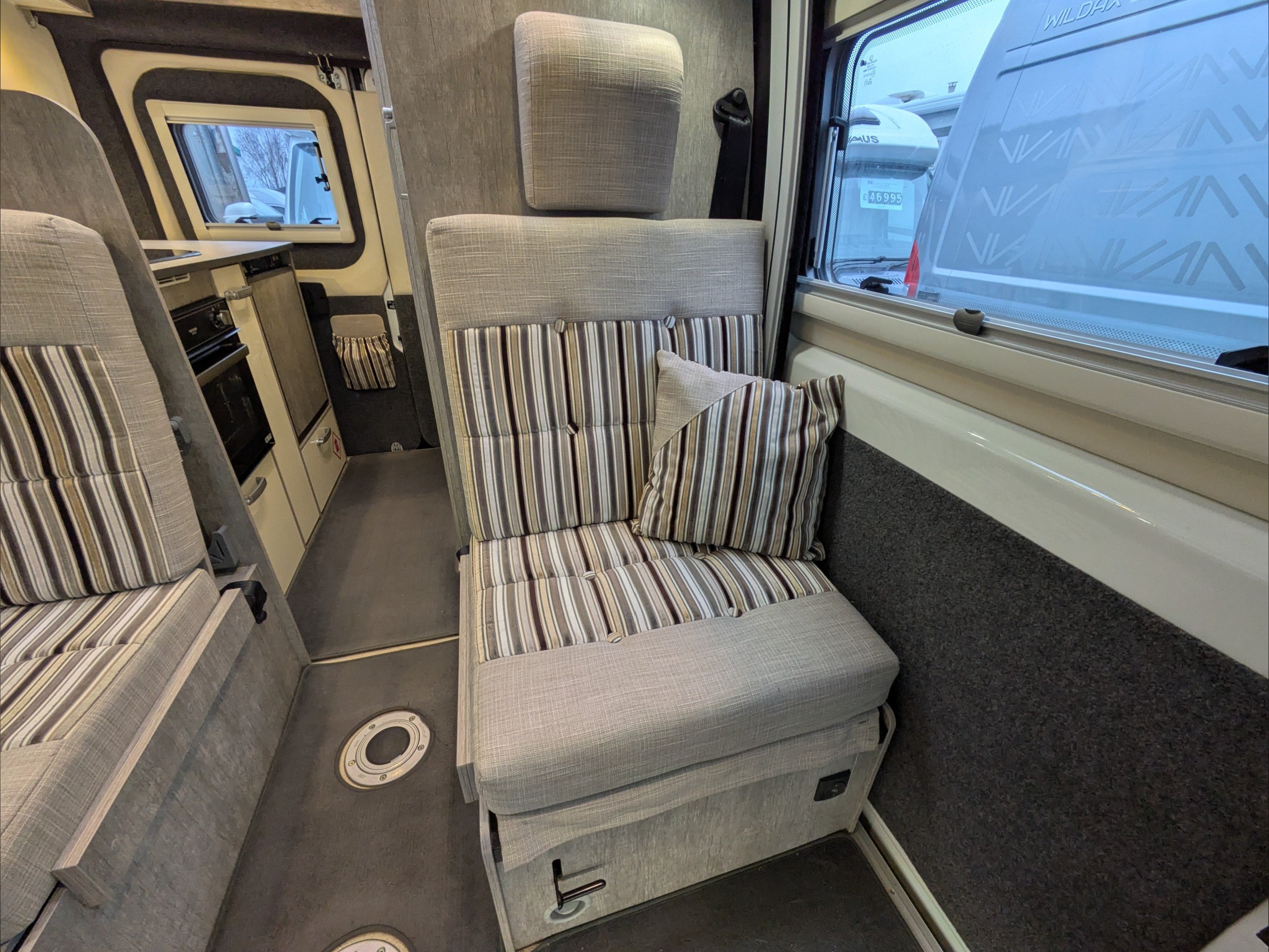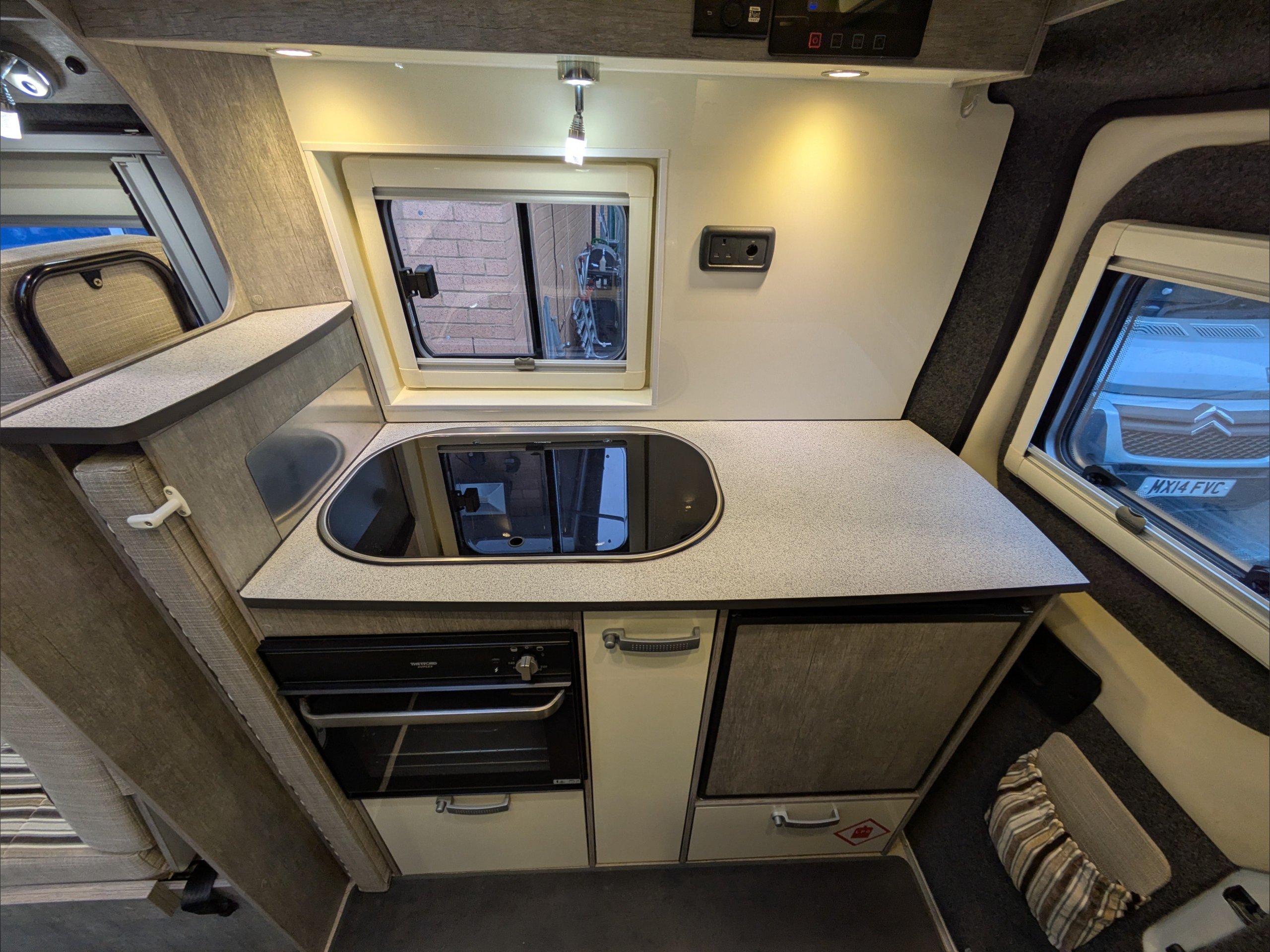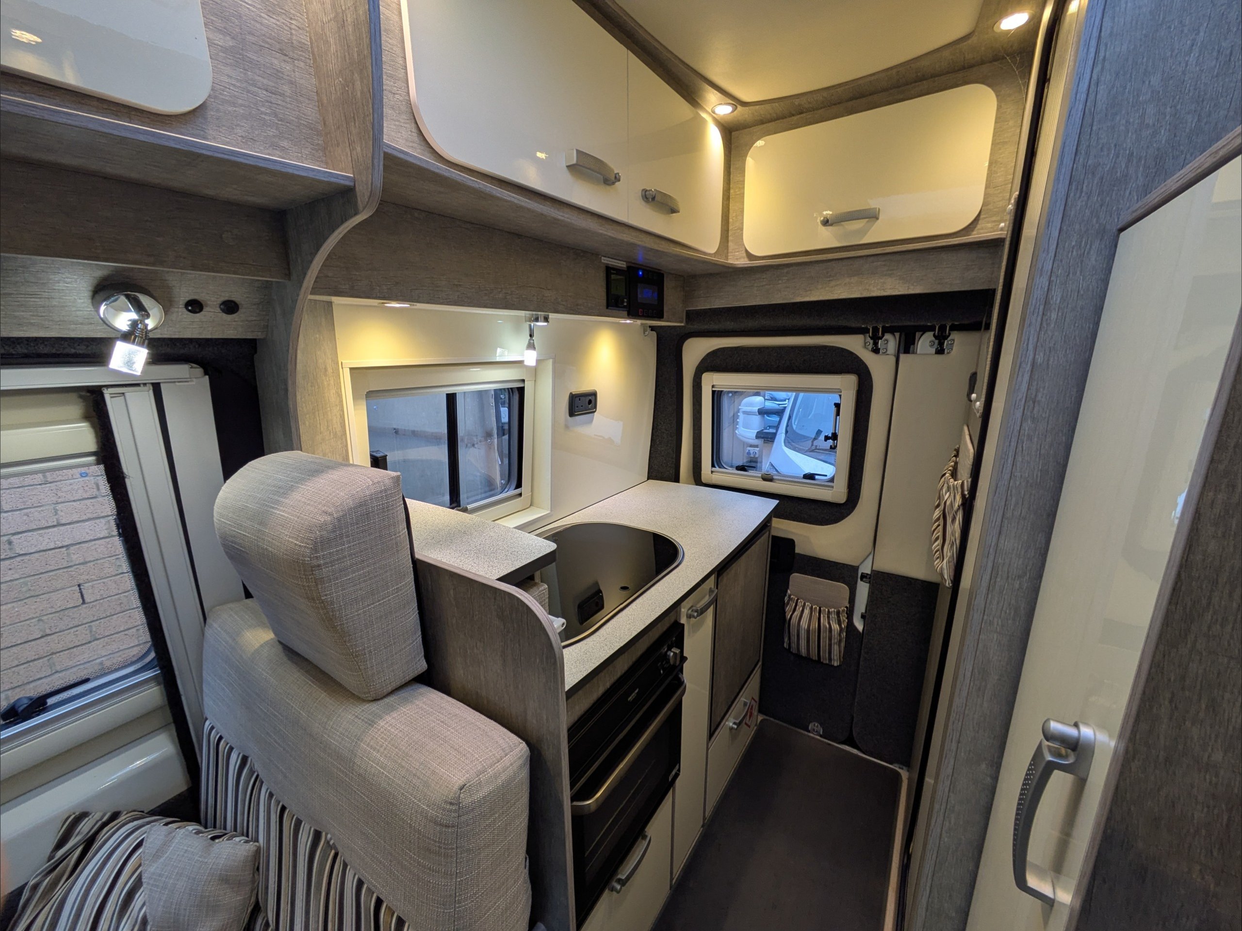 WildAx Pulsar. 2 Berth, 4 Seatbelts. Standard Driving License Applicable. ULEZ Compliant. Situated at the front, the lounge can seat 4 people, and converts to a double bed. The kitchen comes with intergrill, 3 way fridge, hob, and sink. The washroom comes with shower, cassette toilet, and wash basin. Available at the Southern Motorhome Centre now.