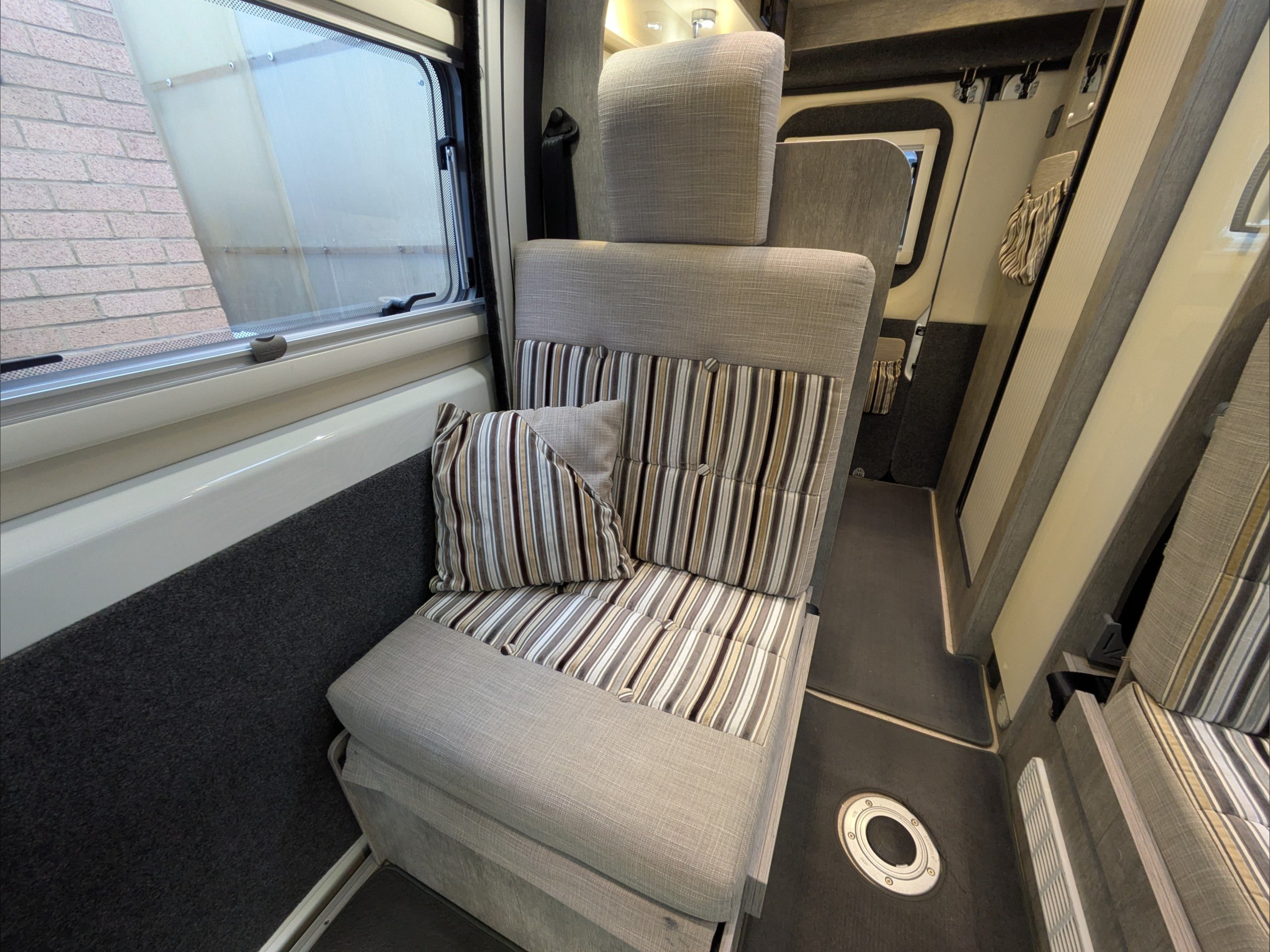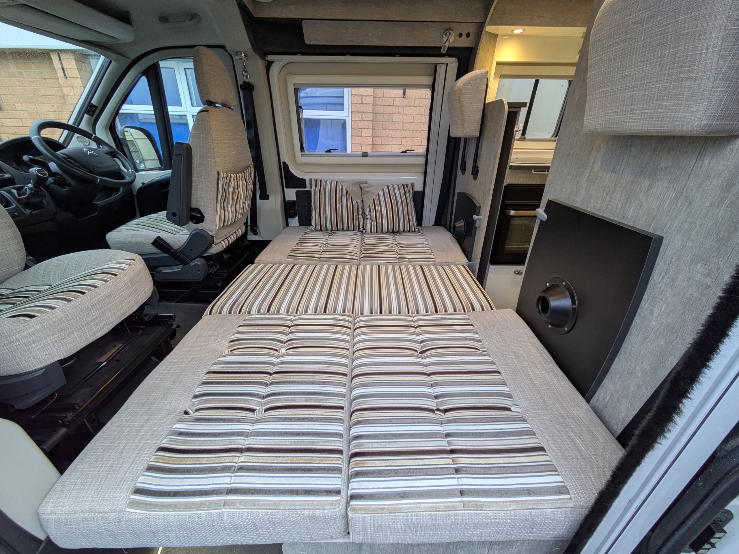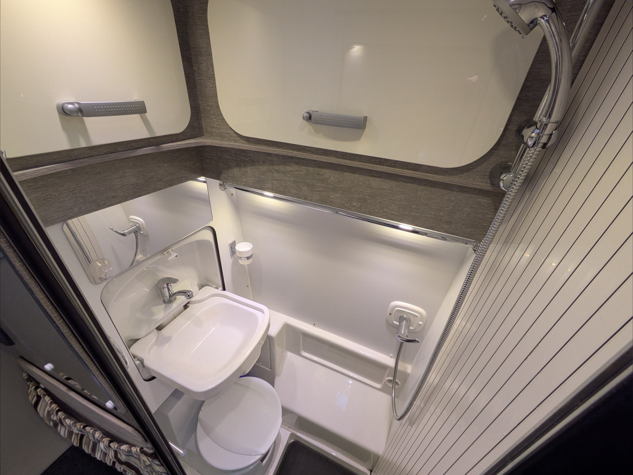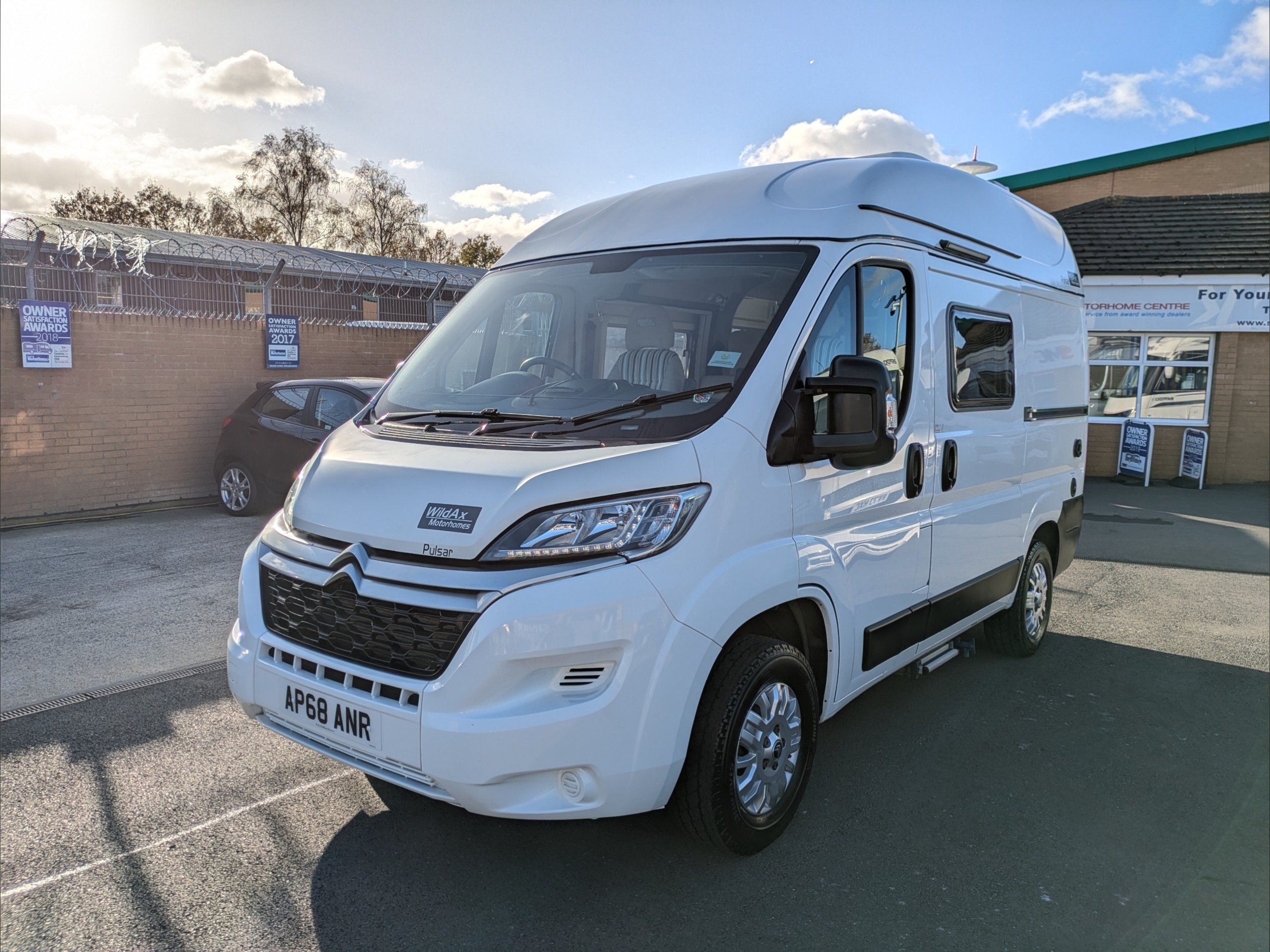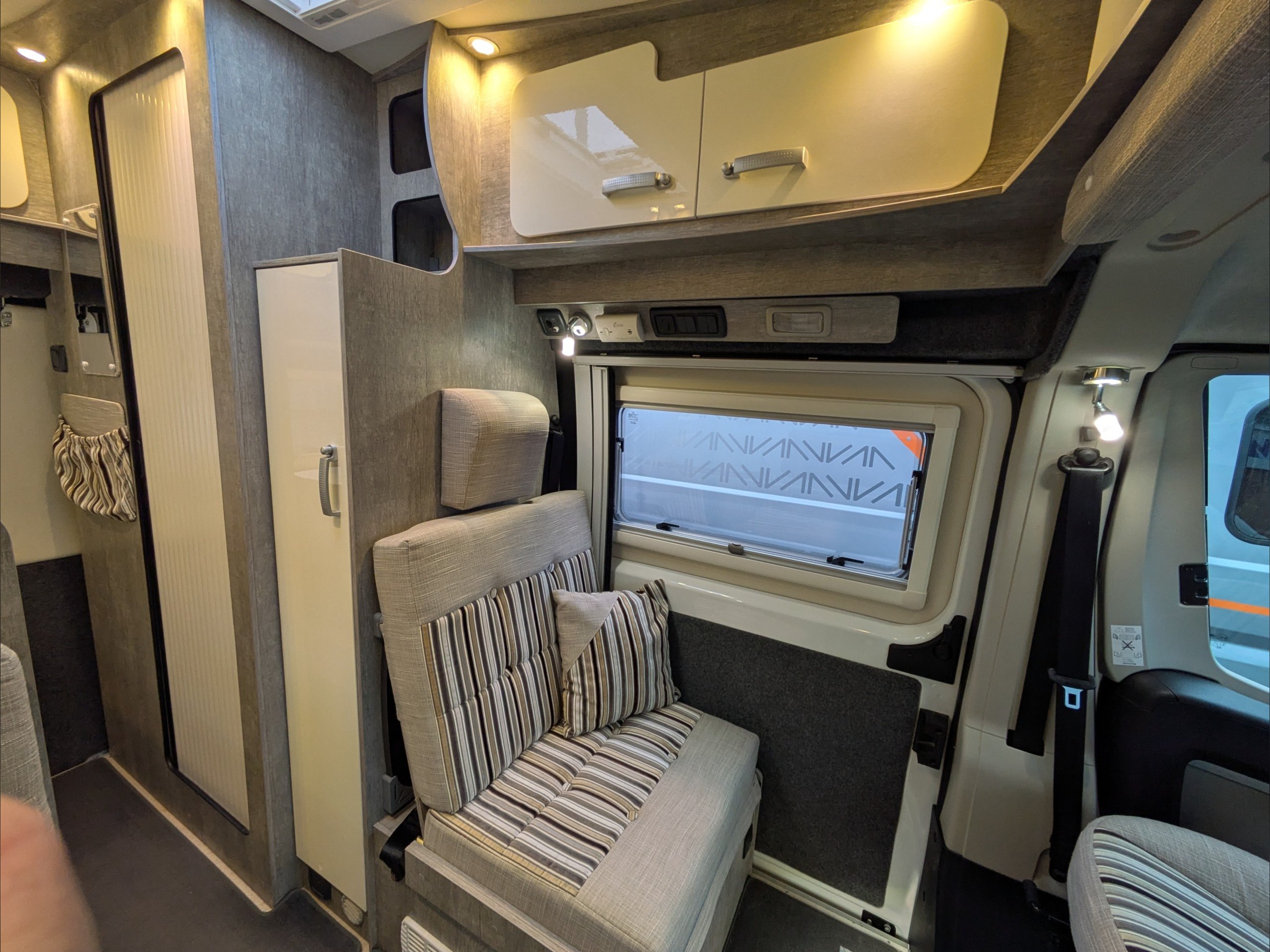 WildAx Pulsar. 2 Berth, 4 Seatbelts. Standard Driving License Applicable. ULEZ Compliant. Situated at the front, the lounge can seat 4 people, and converts to a double bed. The kitchen comes with intergrill, 3 way fridge, hob, and sink. The washroom comes with shower, cassette toilet, and wash basin. Available at the Southern Motorhome Centre now.